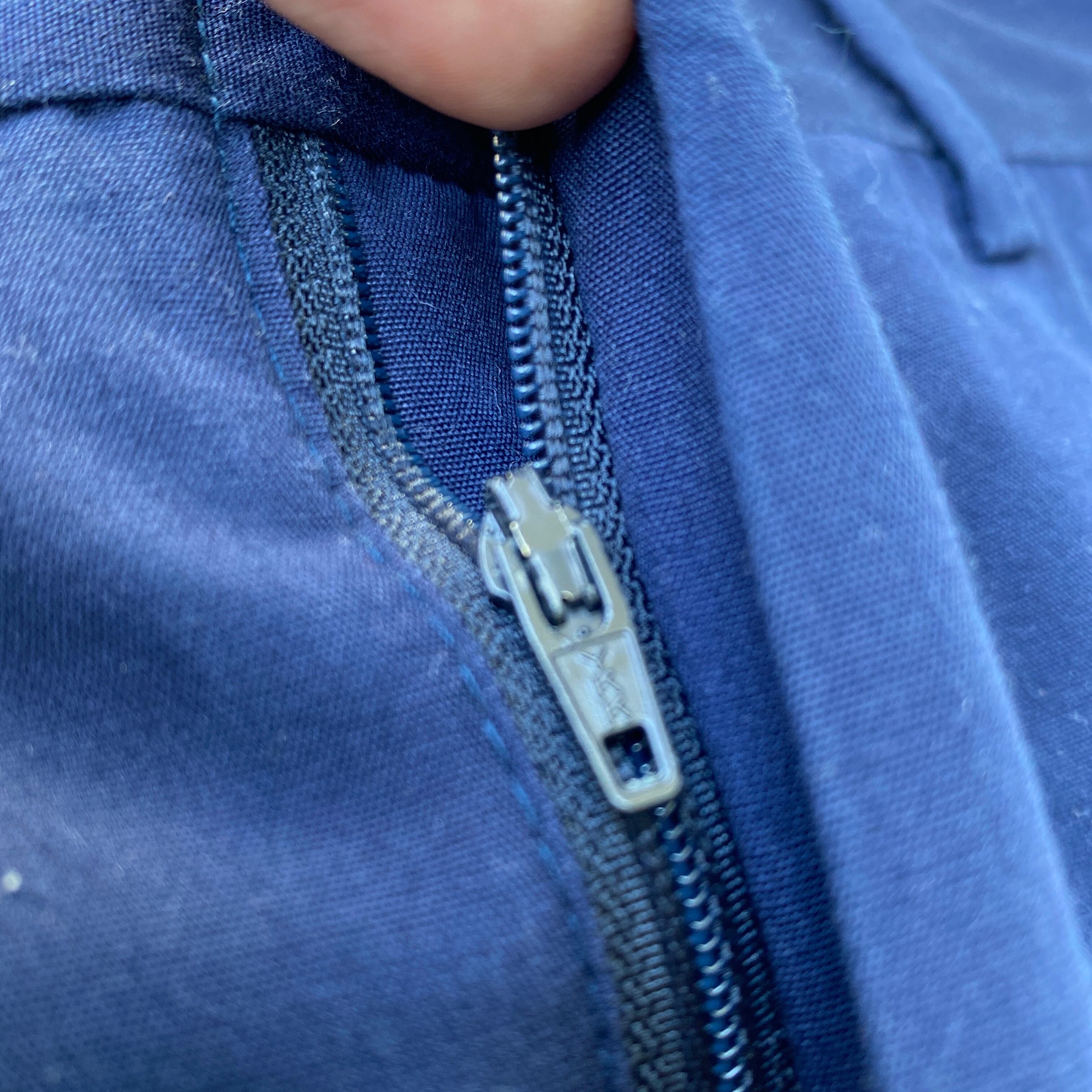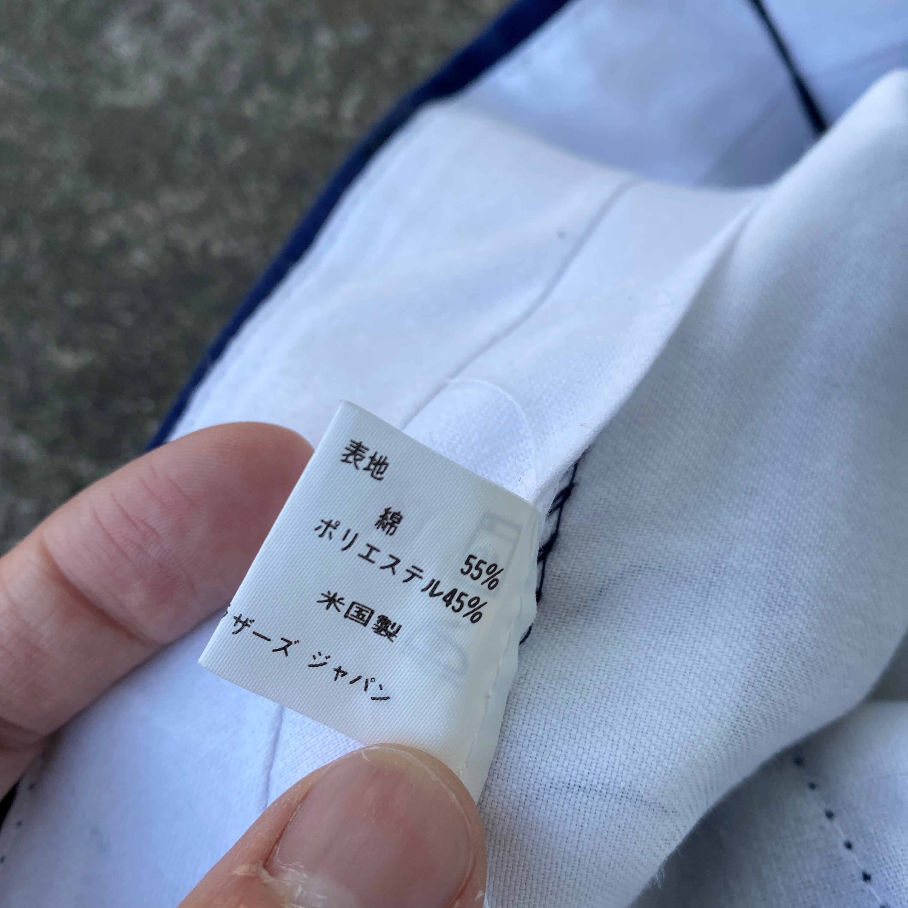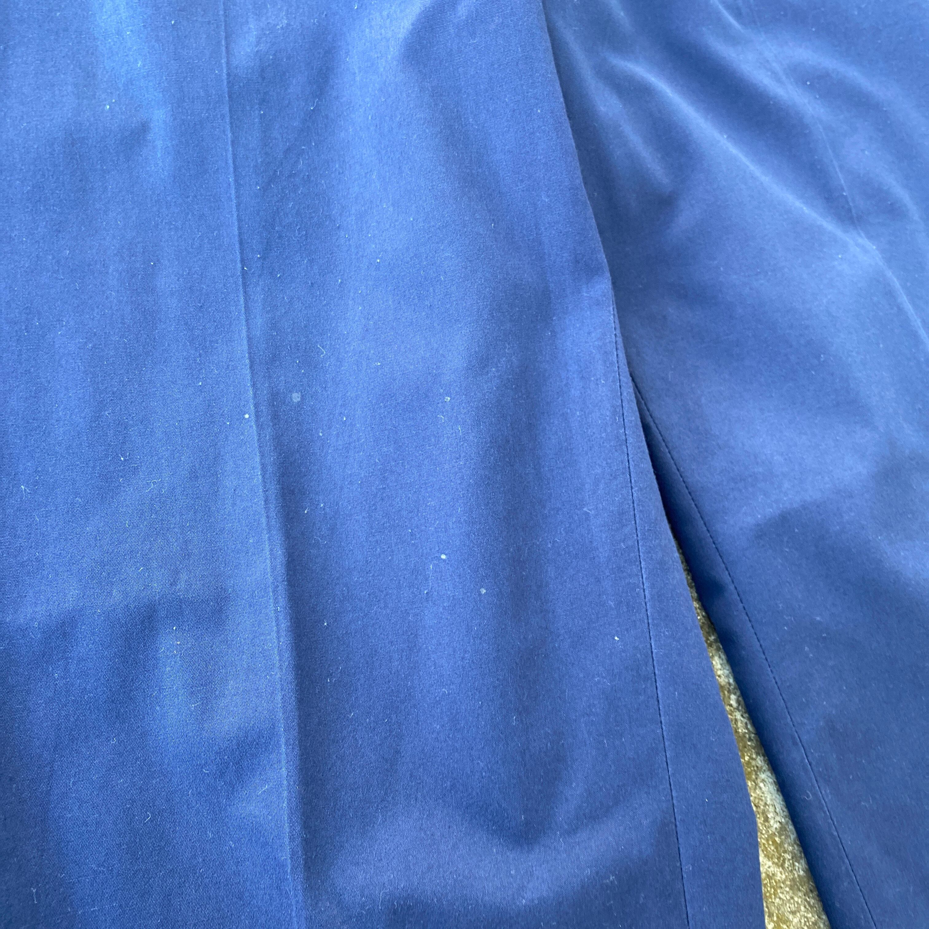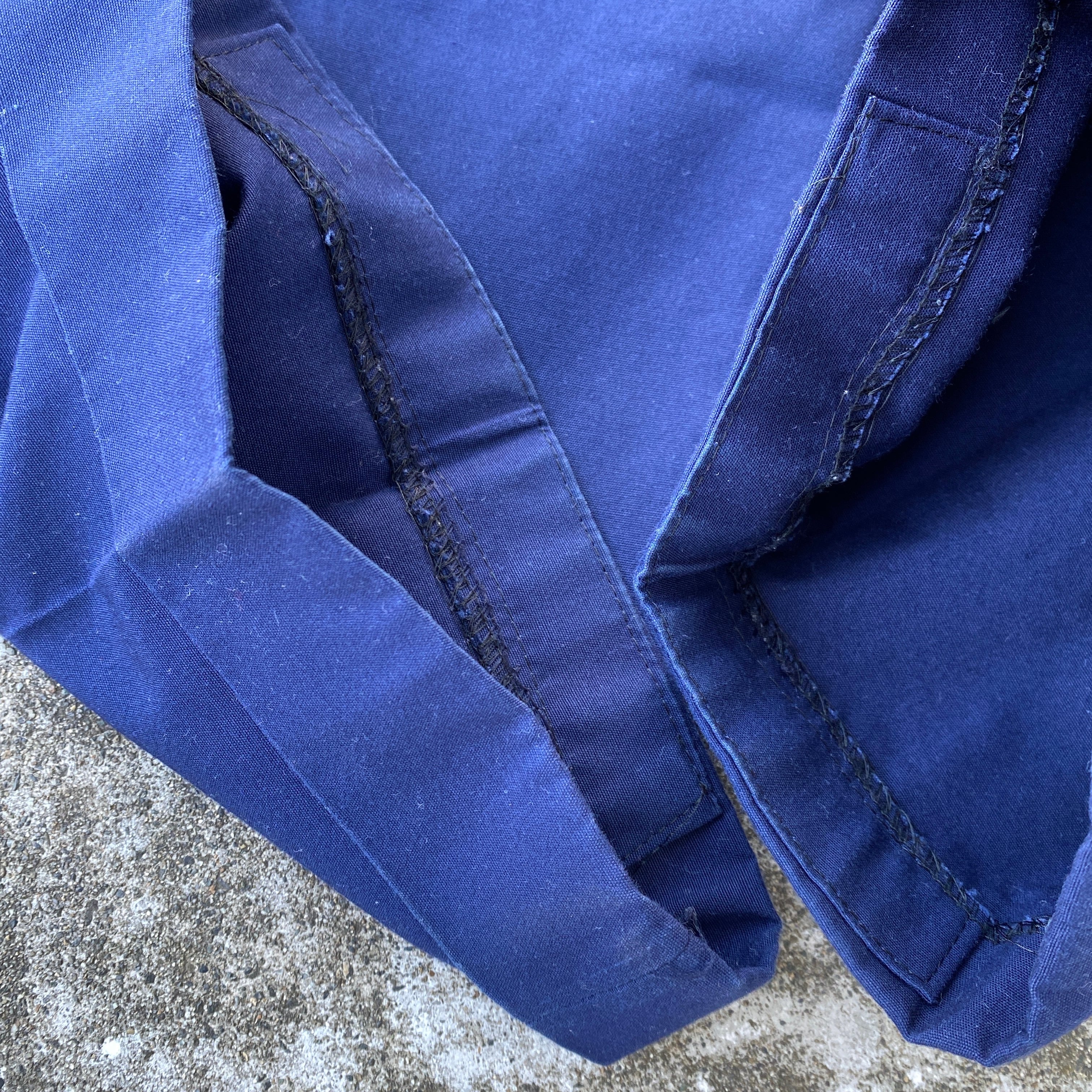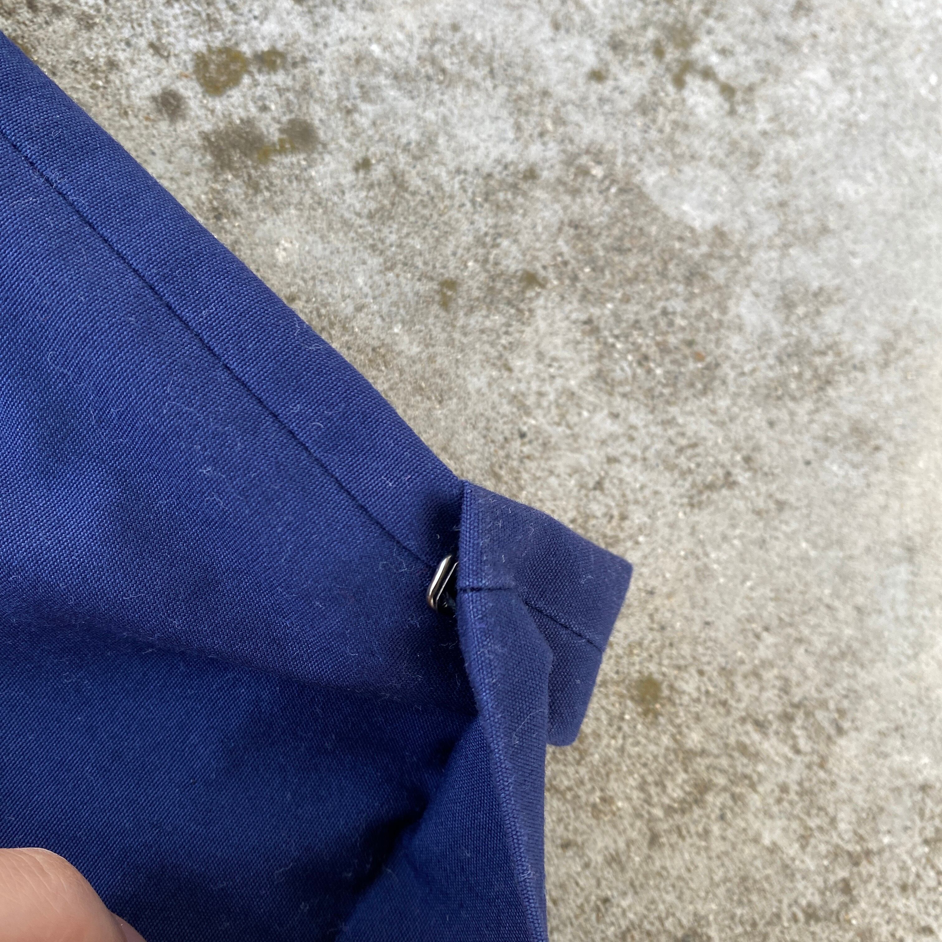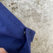 明るめネイビーカラーに、ポリ混でハリ感のあるサラッとした生地、ストンと落ちるワイドシルエットが非常に格好良い一着。
