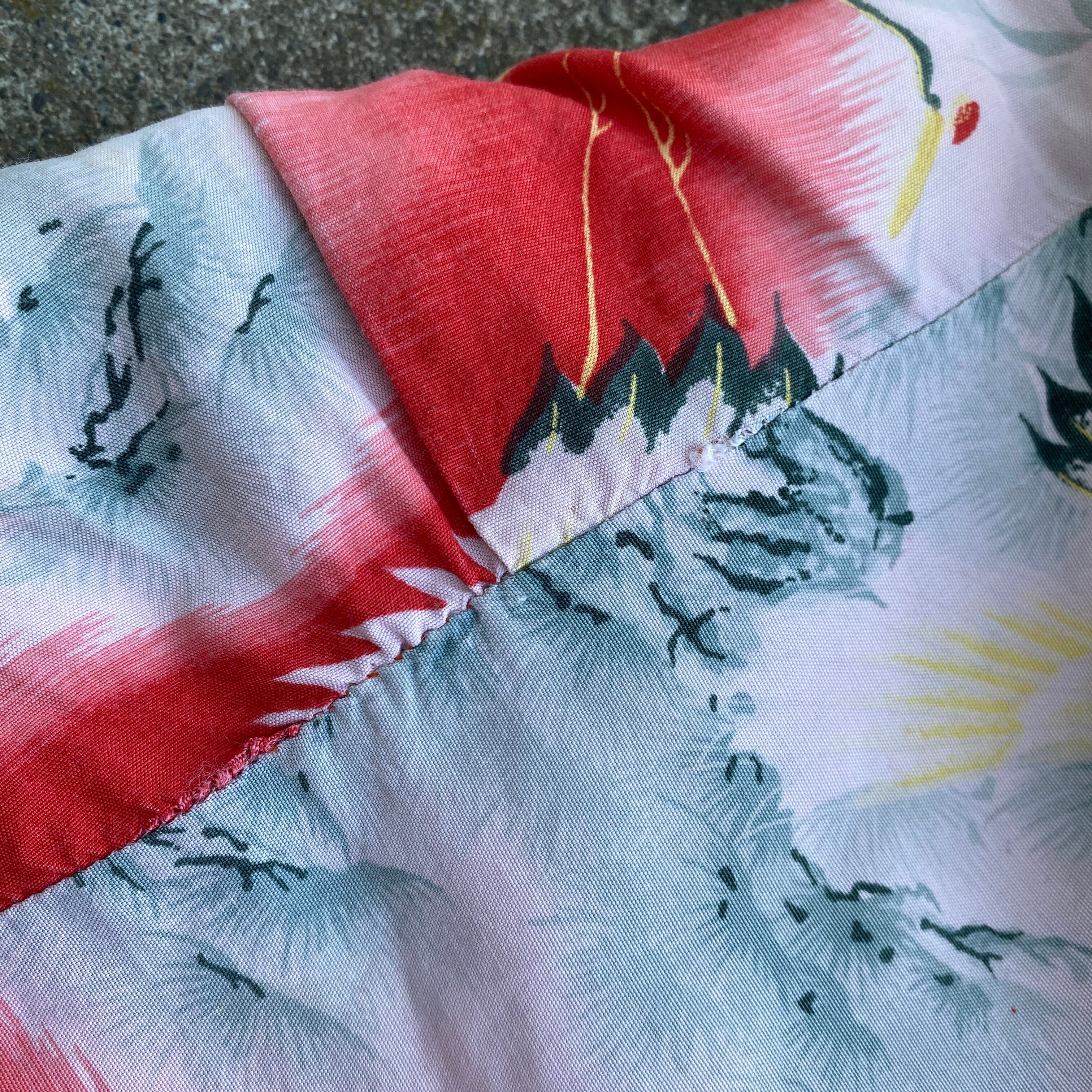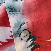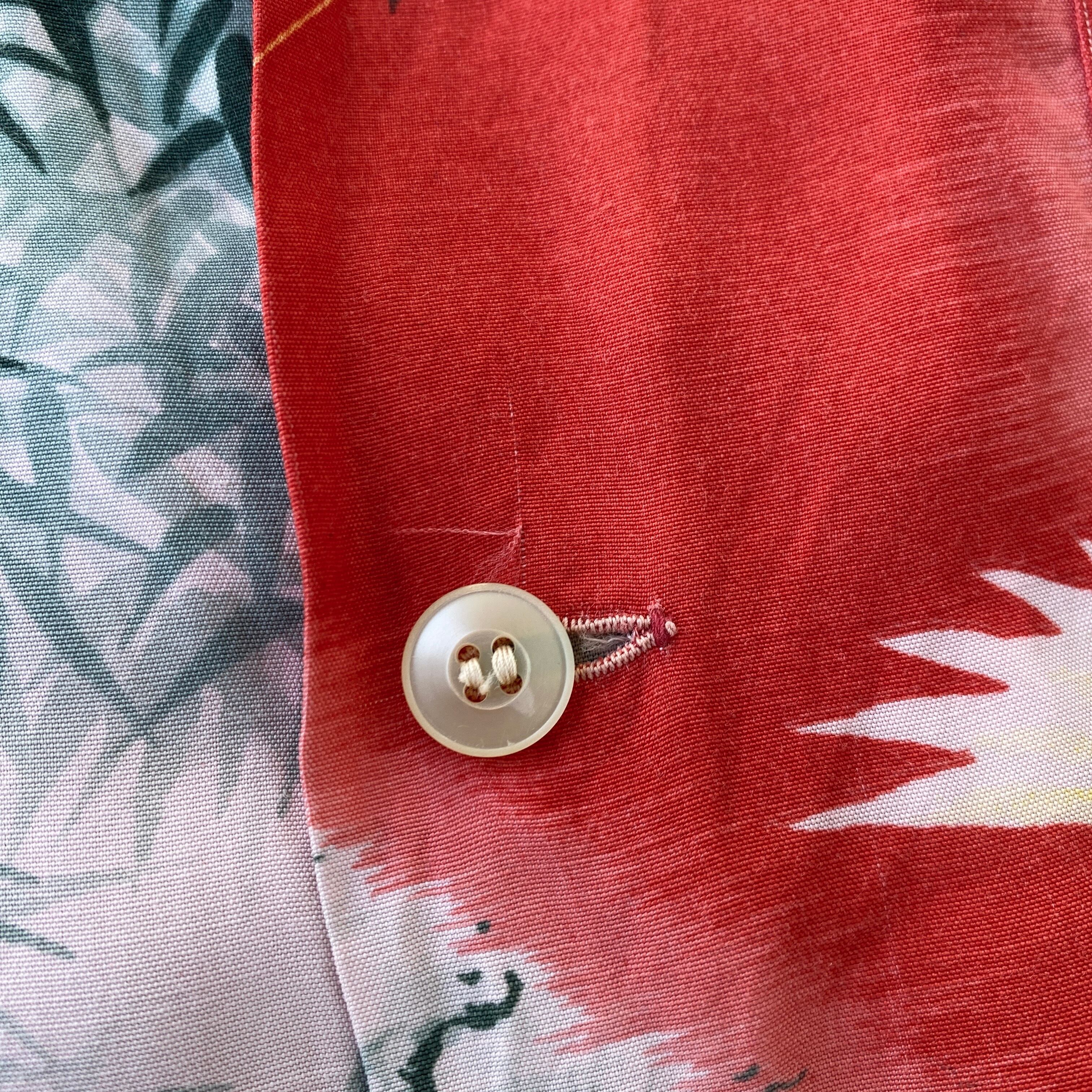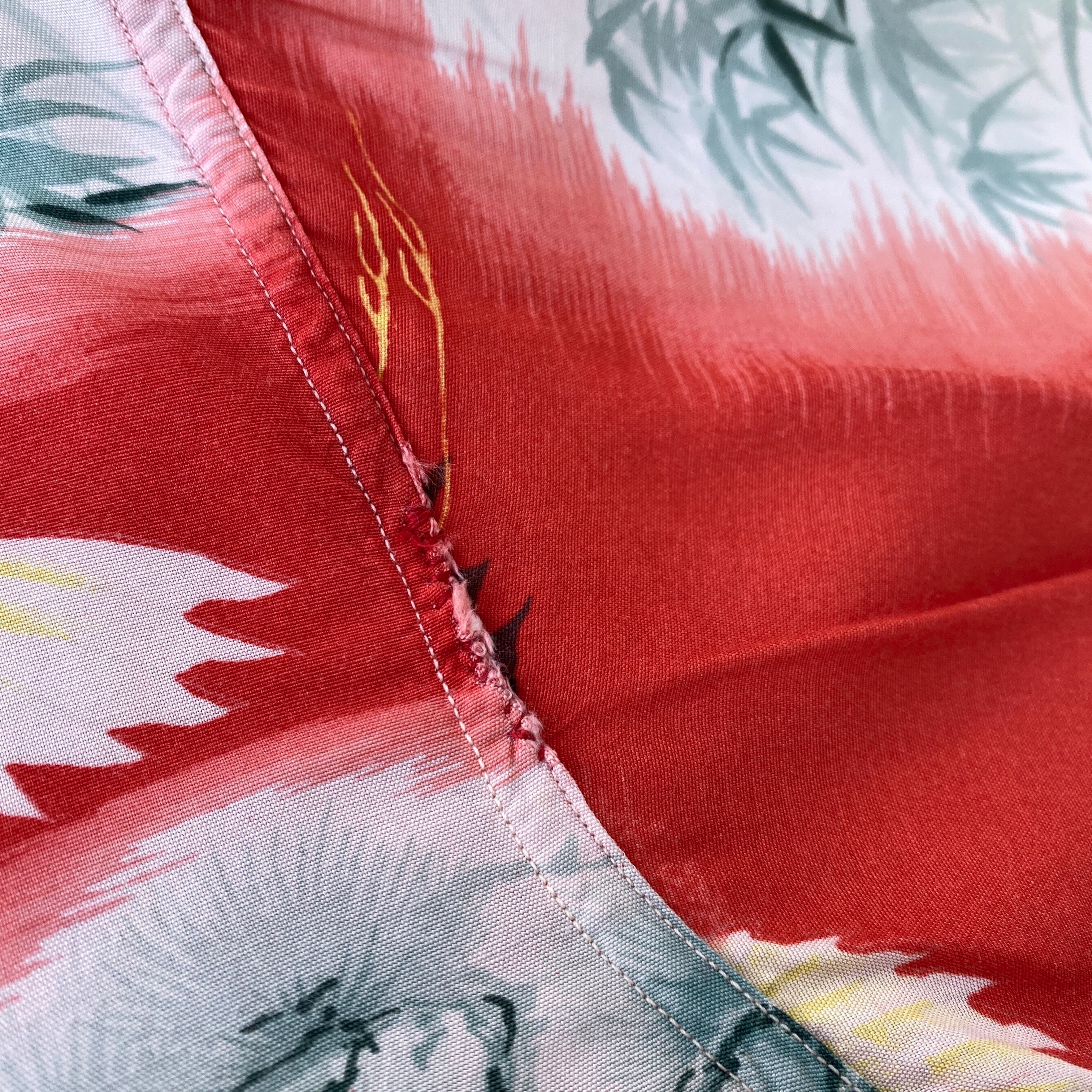 この年代らしいドライな質感のレーヨン生地に、ホワイト×掠れたレッドをベースとした和柄が非常に格好良い一着。