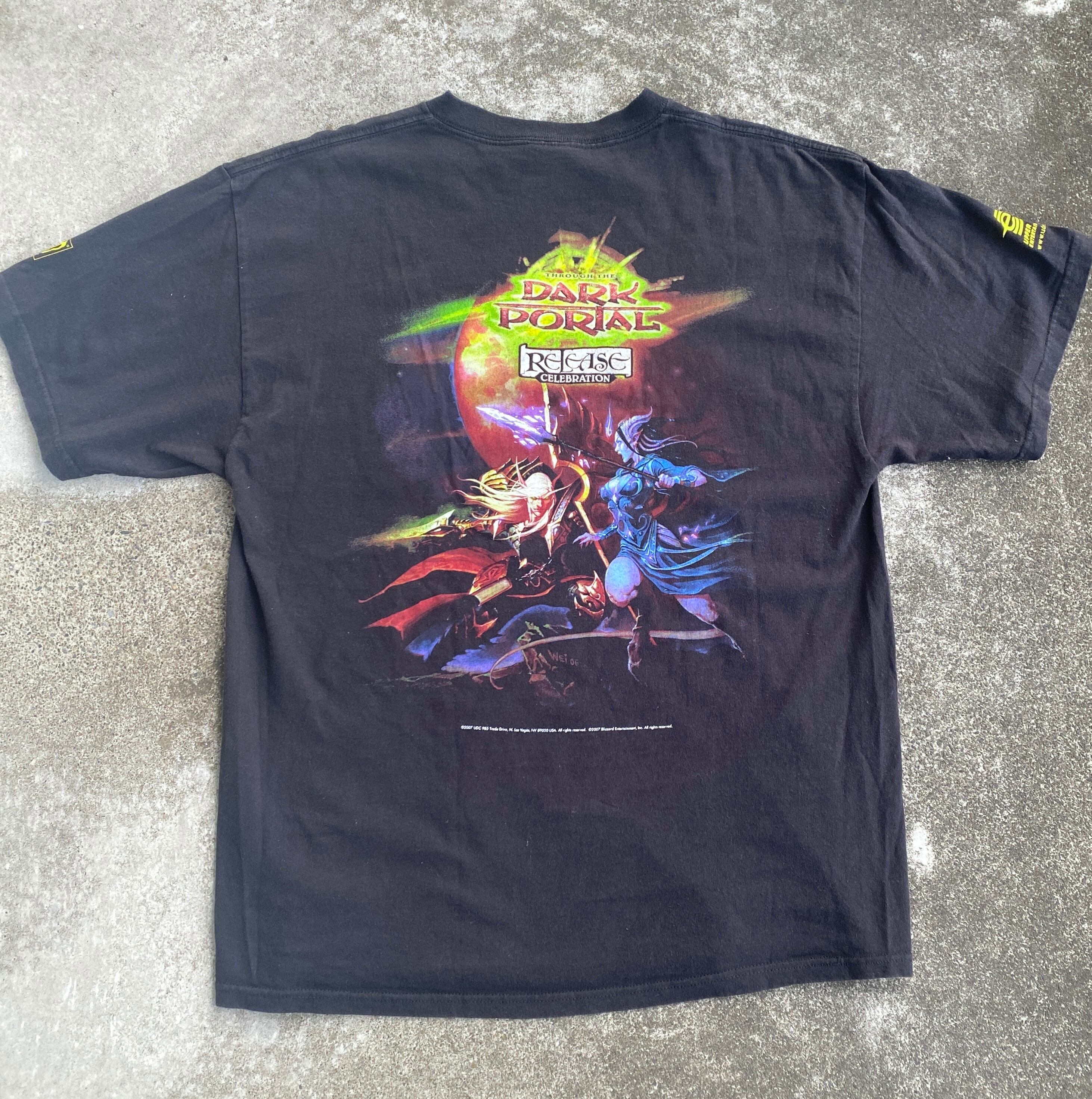 海外の人気トレーディングカードゲーム「WORLD OF WARCRAFT」のTHROUGH THE DARK PORTALという弾の表紙がプリントされた一着。