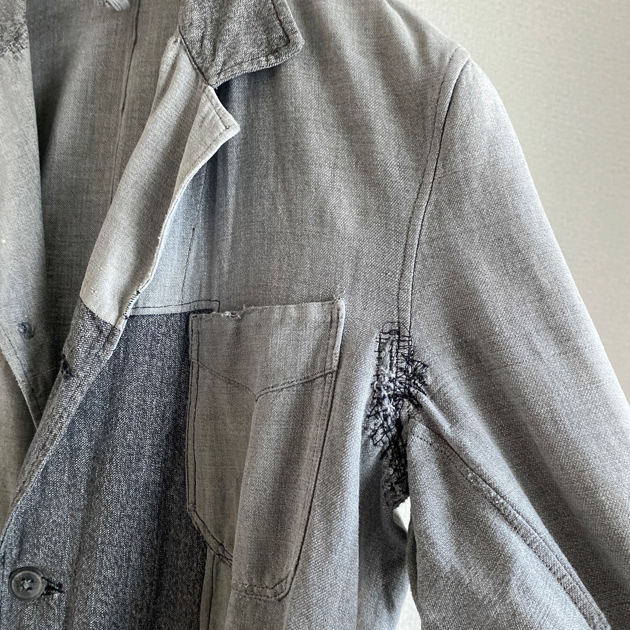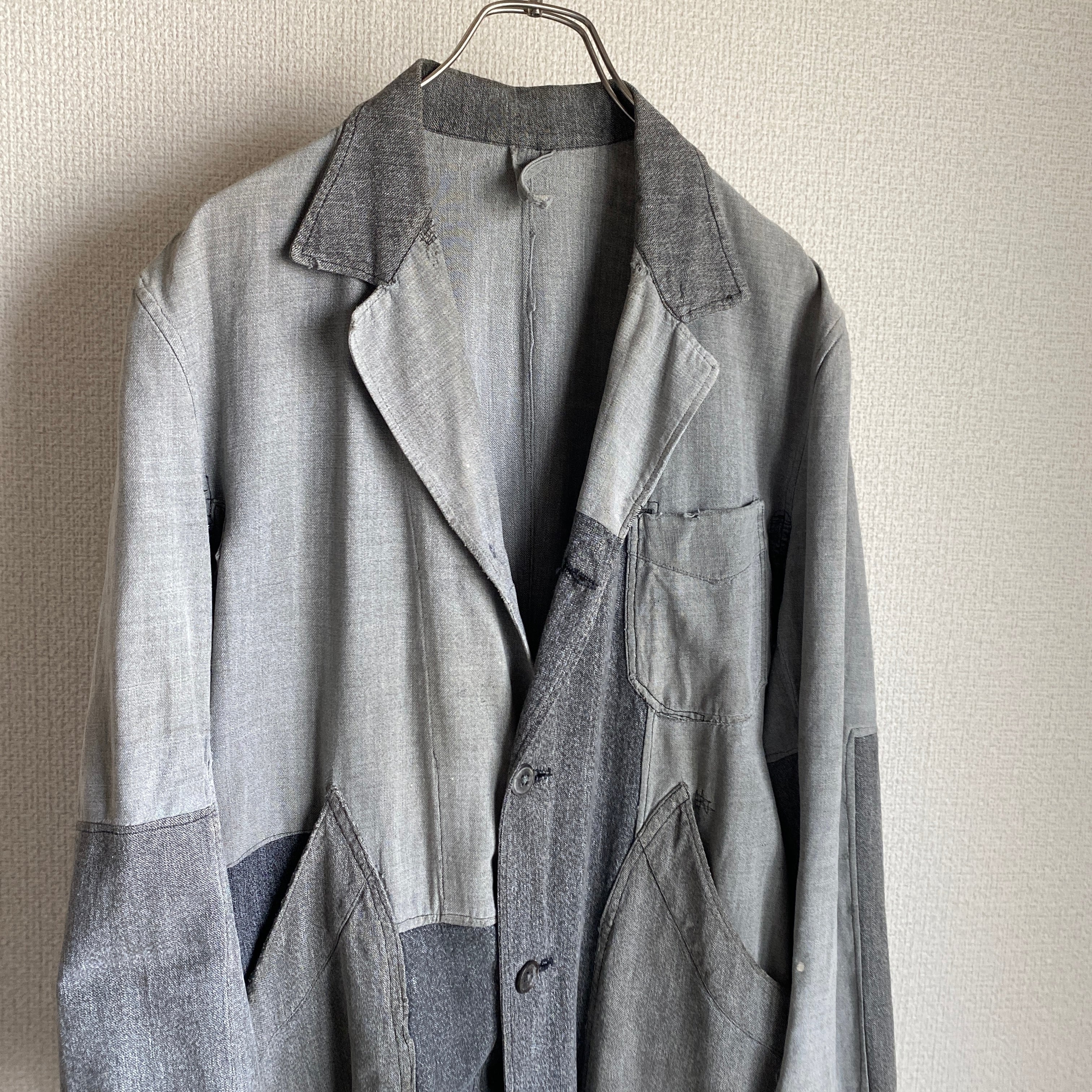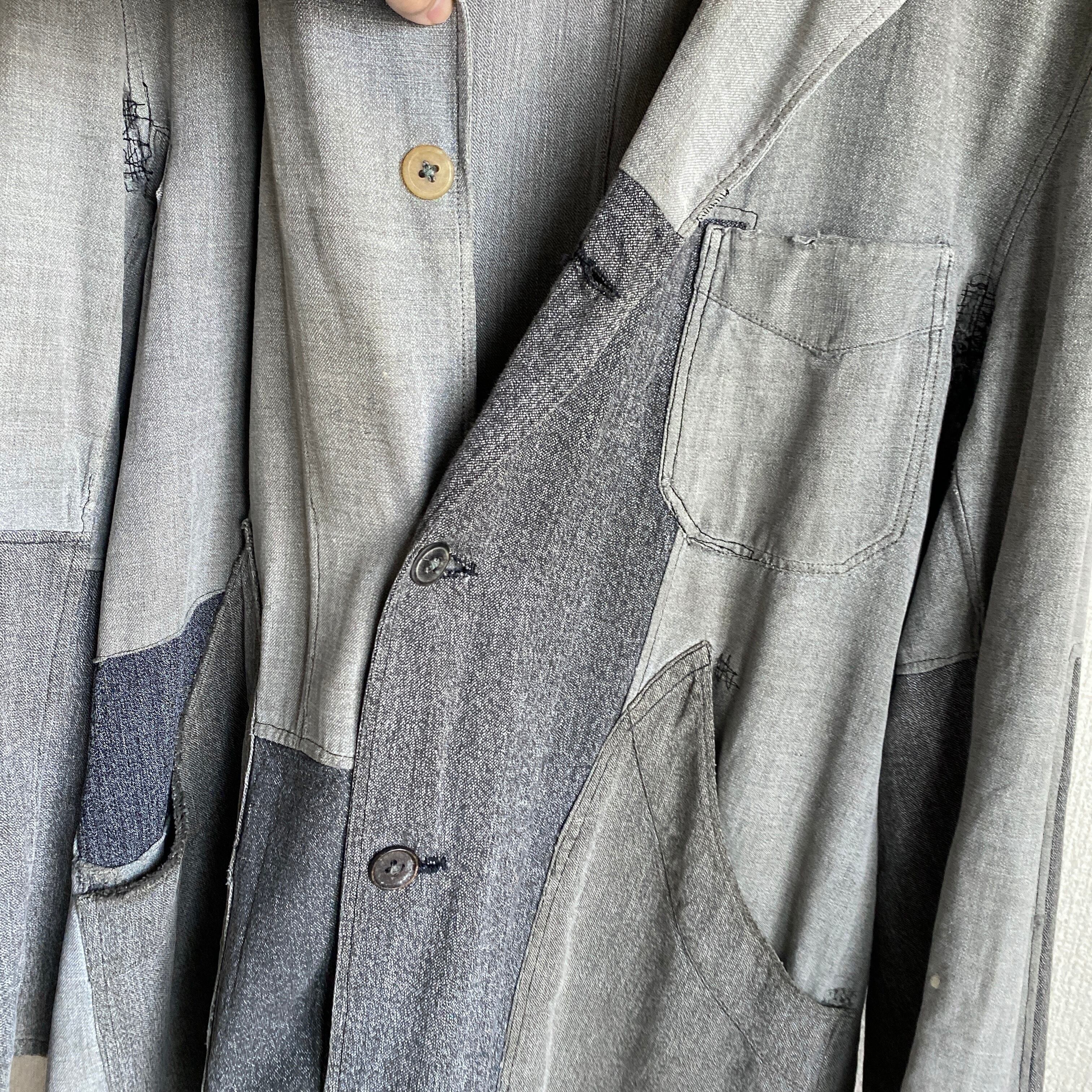 薄くフェードしたヴィンテージボディをベースに、3.4着のヴィンテージブラックシャンブレーの生地でパッチワークされたとんでもない雰囲気の一着。