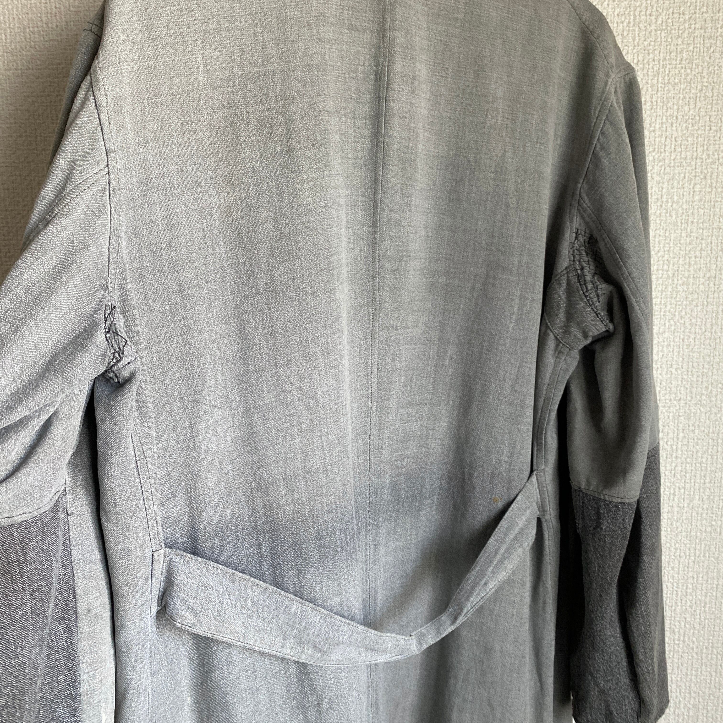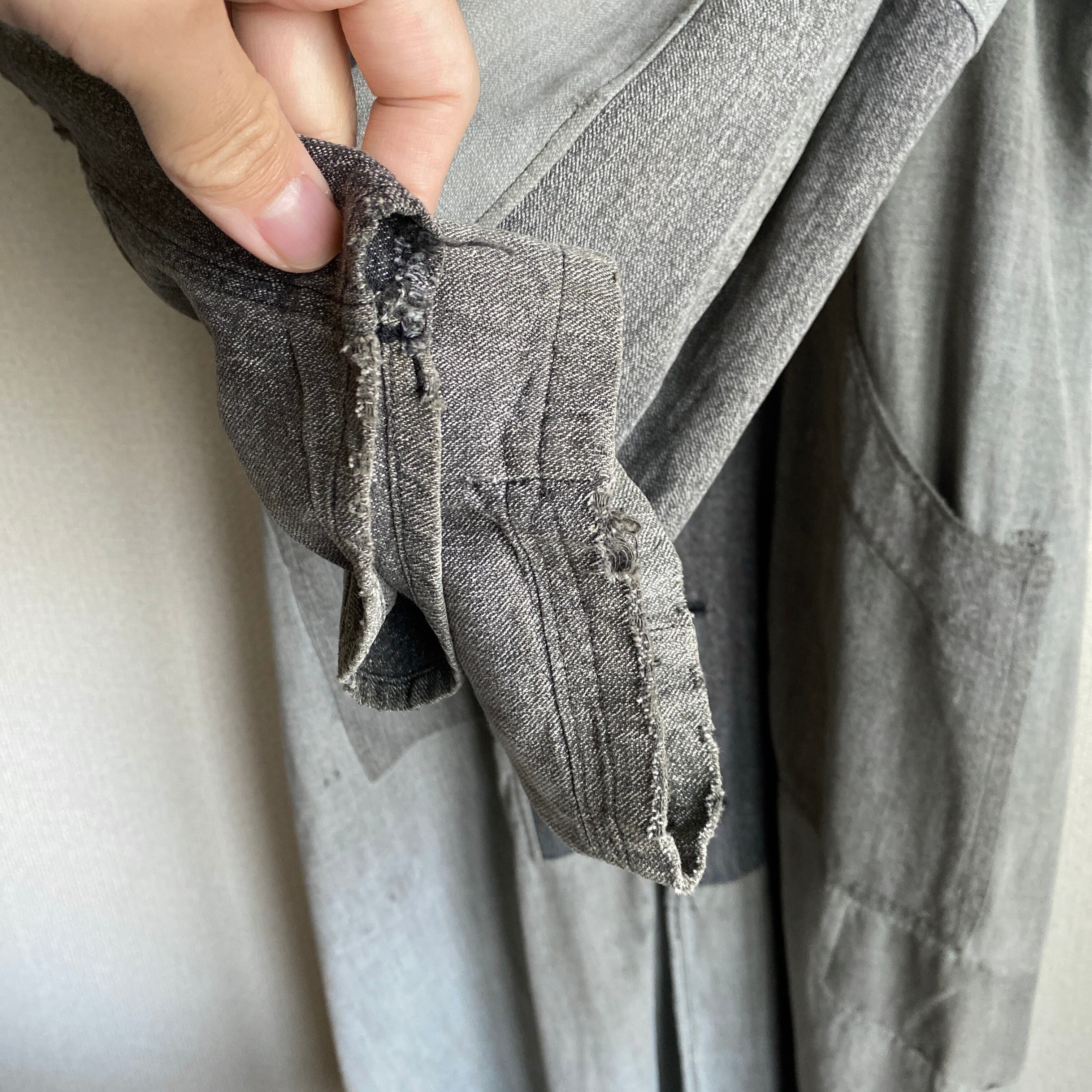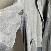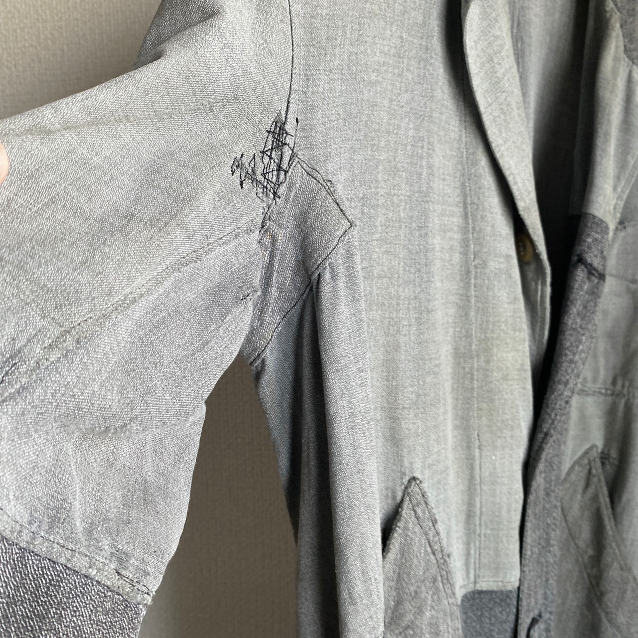 薄くフェードしたヴィンテージボディをベースに、3.4着のヴィンテージブラックシャンブレーの生地でパッチワークされたとんでもない雰囲気の一着。