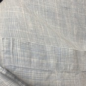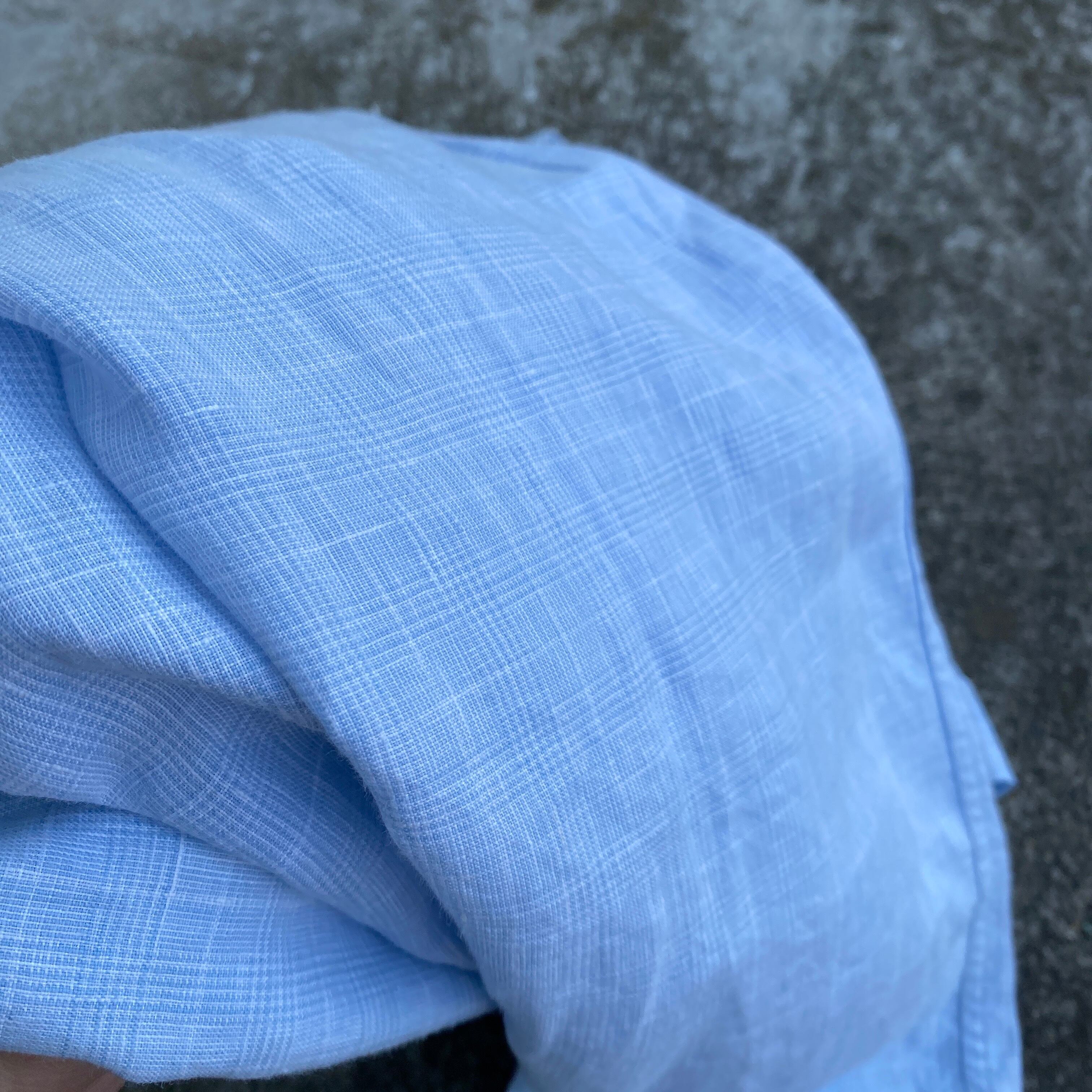 プルっとした打ち込みの強い上質なリネン生地に、淡いサックス×ホワイトの綺麗な色目がクリーンで春らしい一着。