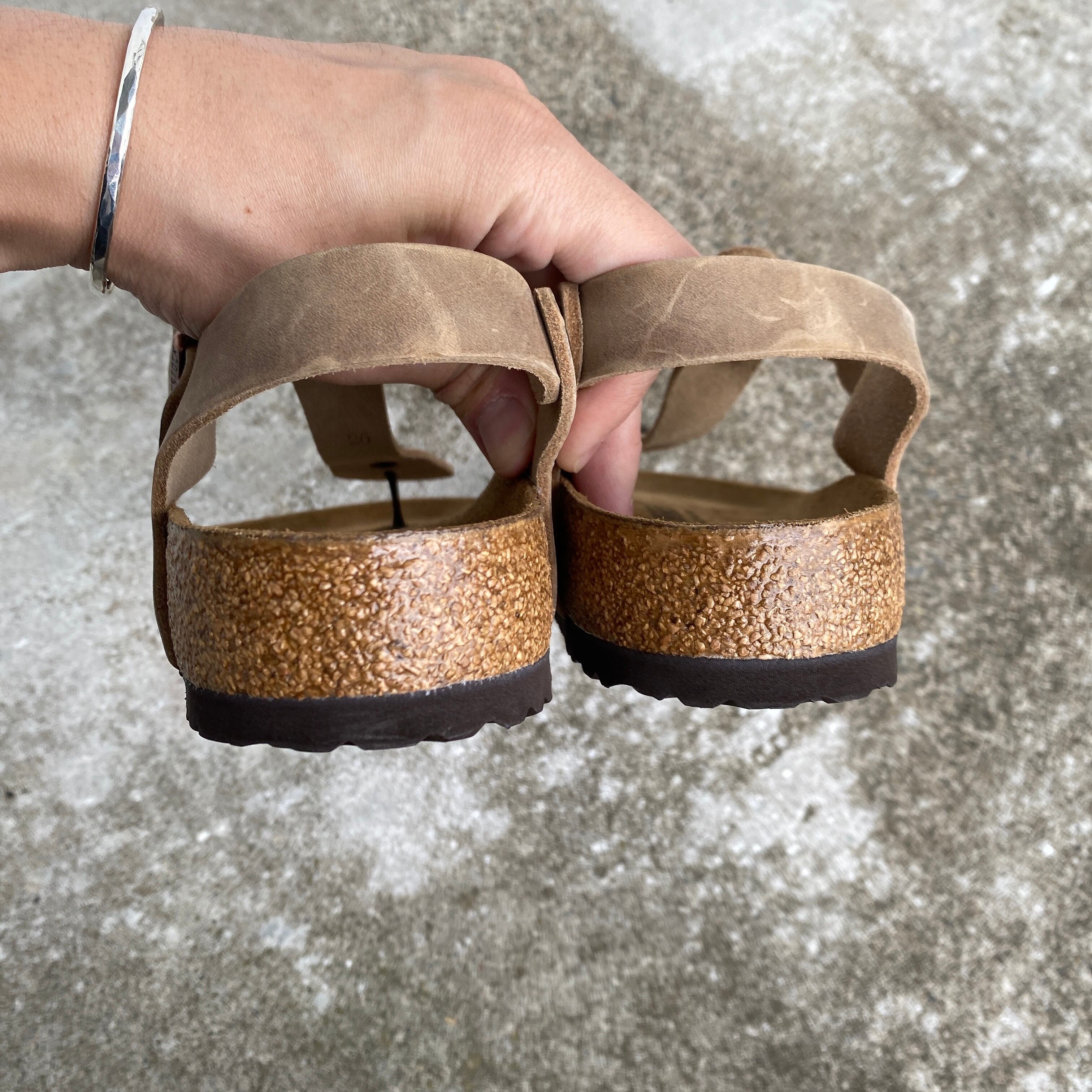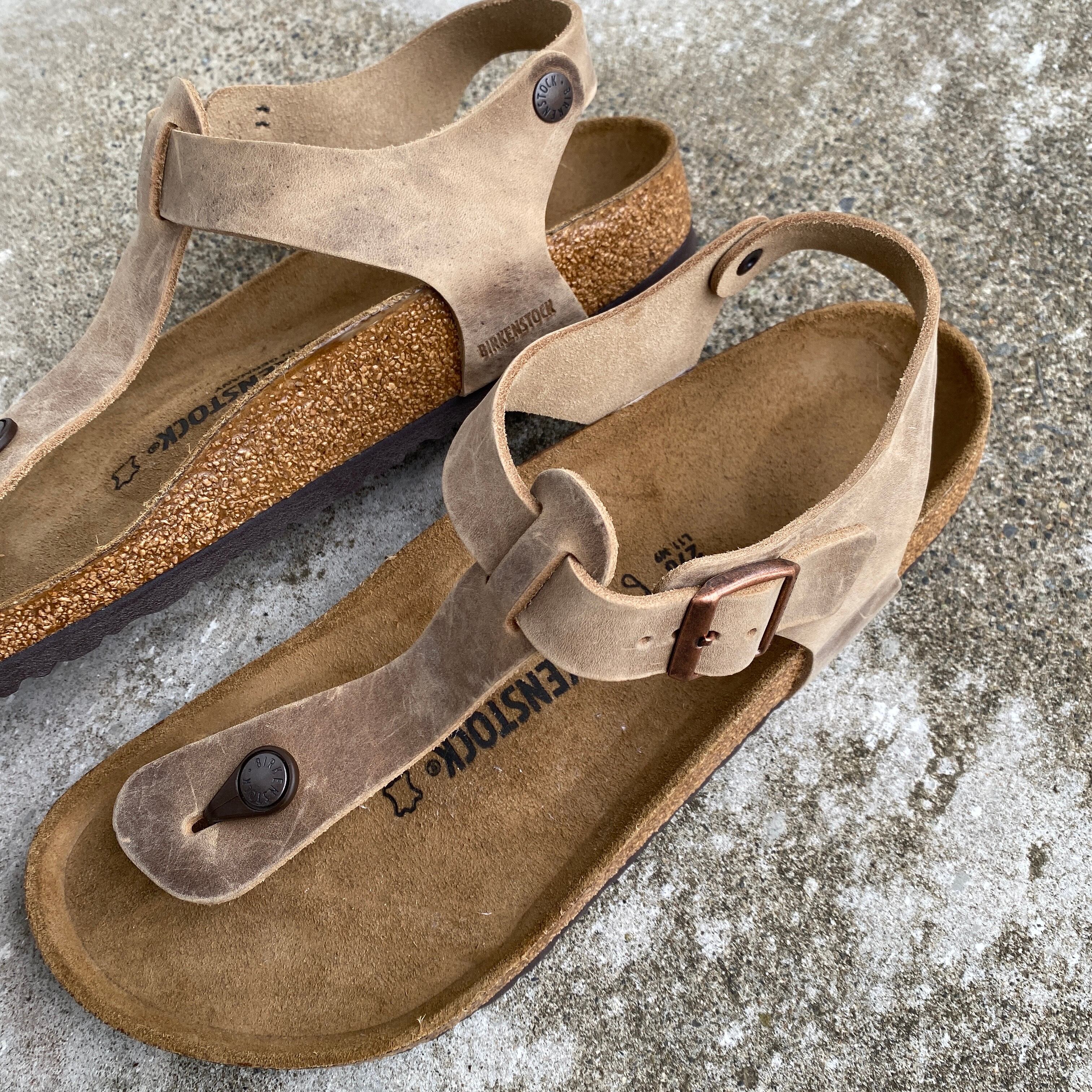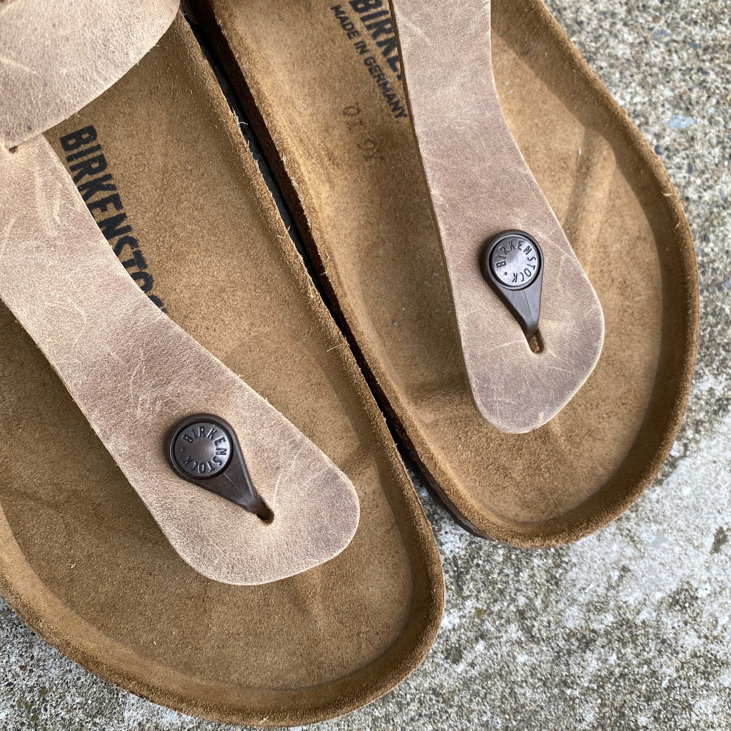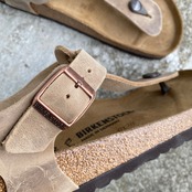 タバコブラウンのヌバックレザーに、ホールド付きのトングサンダル。