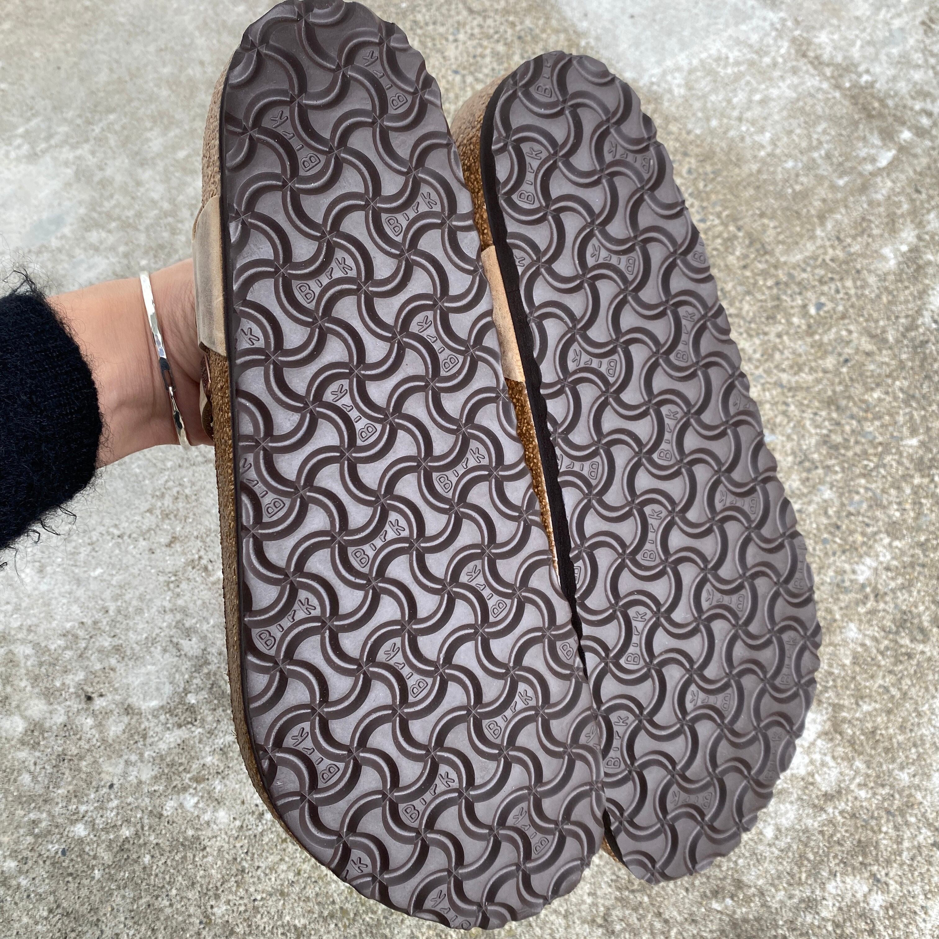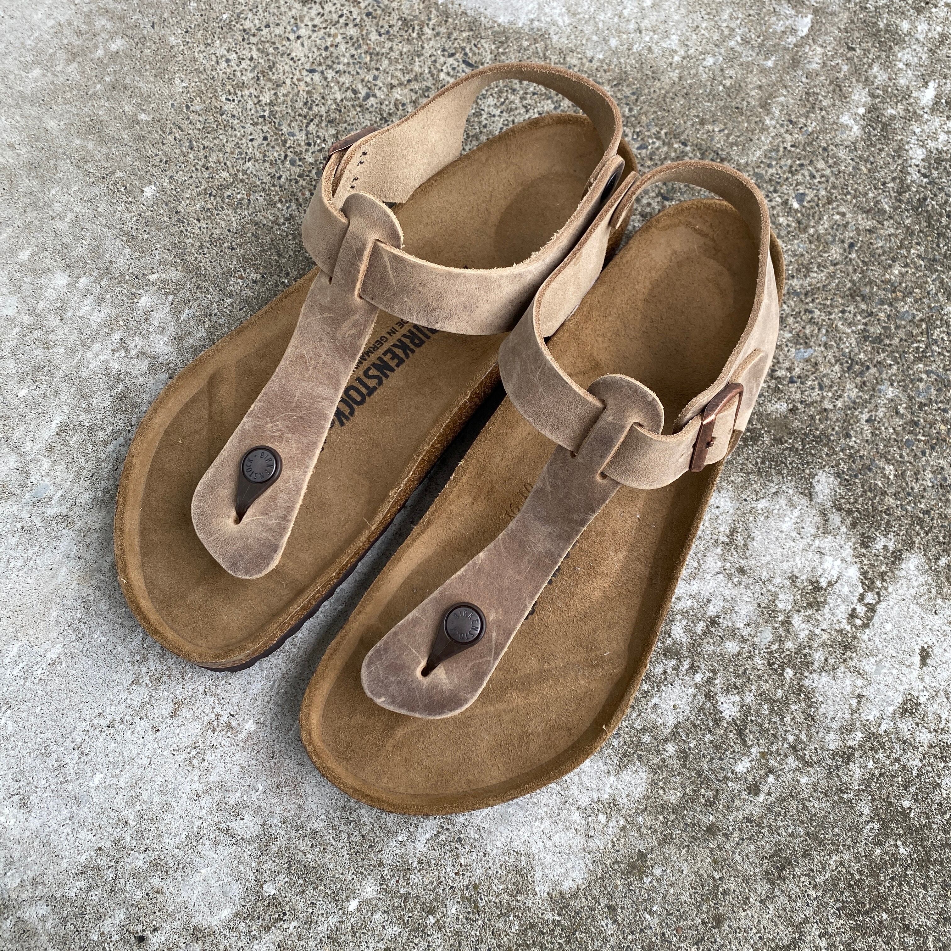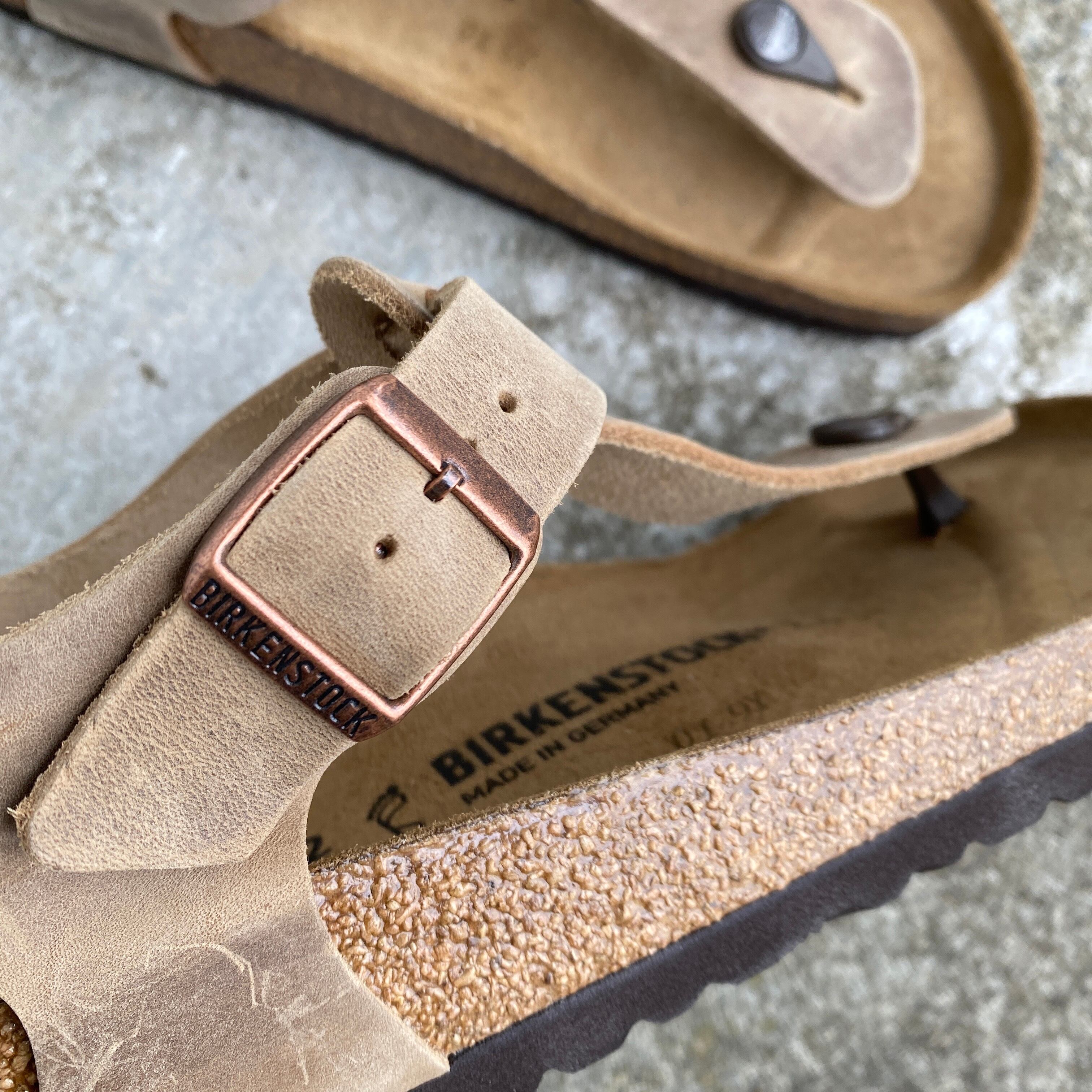 タバコブラウンのヌバックレザーに、ホールド付きのトングサンダル。