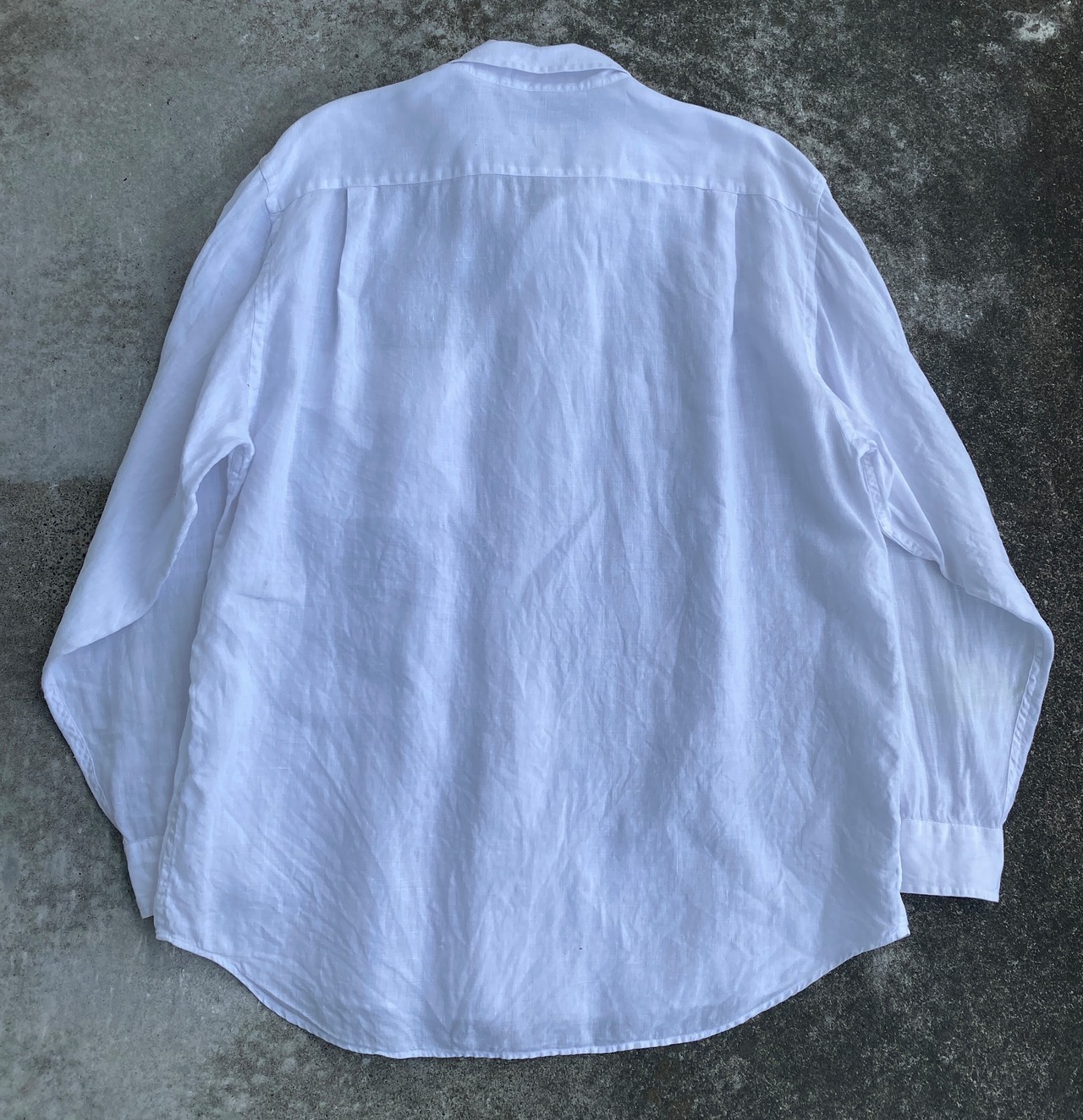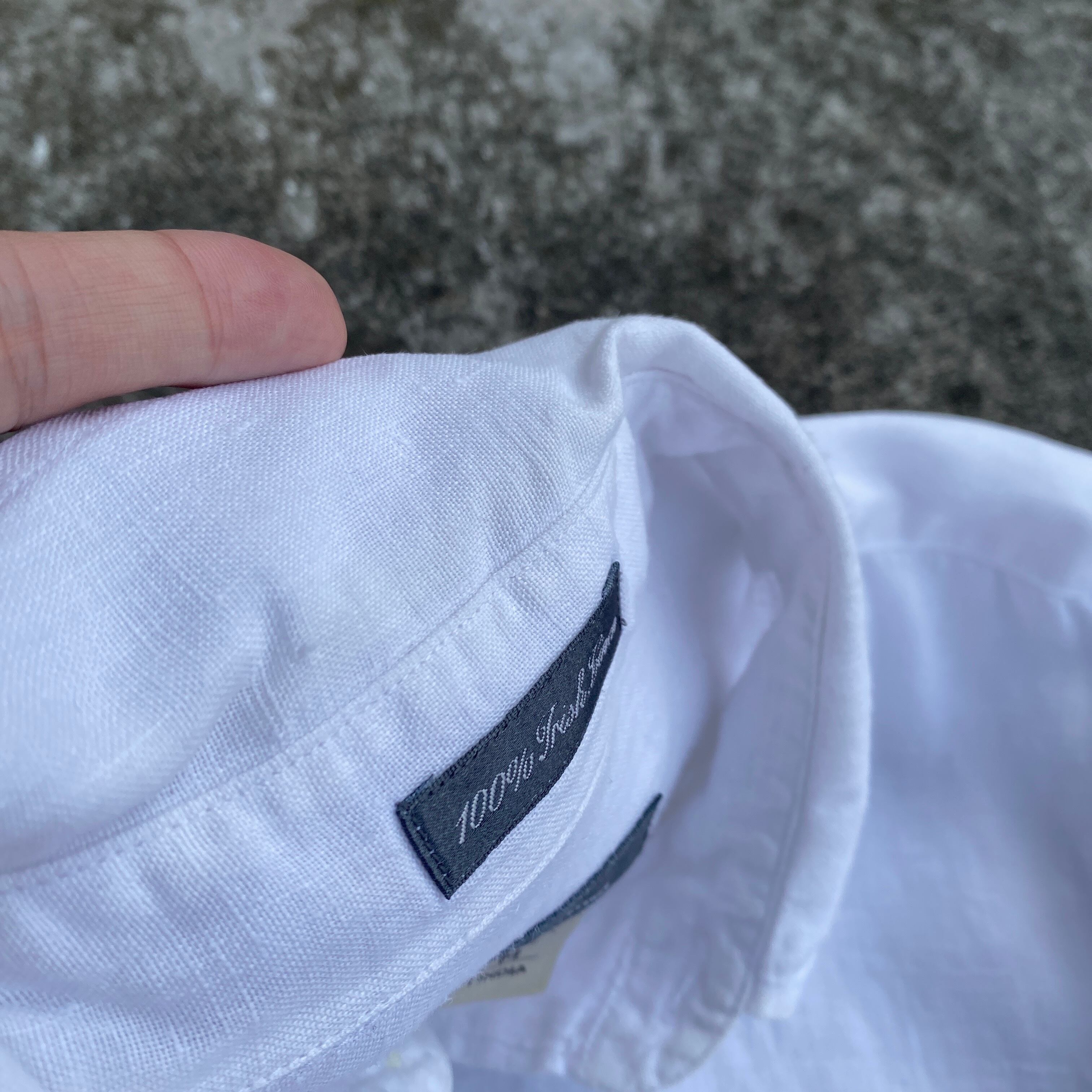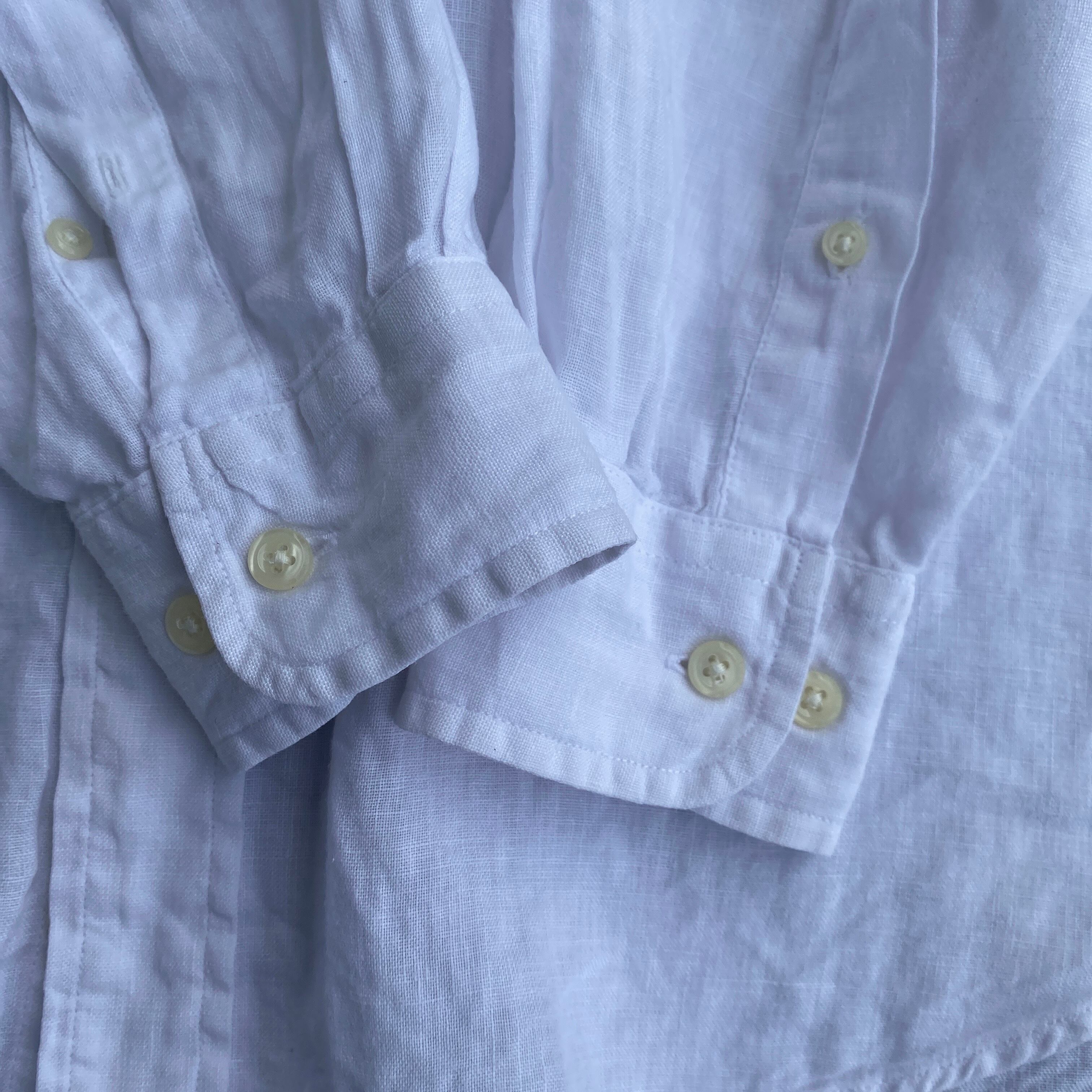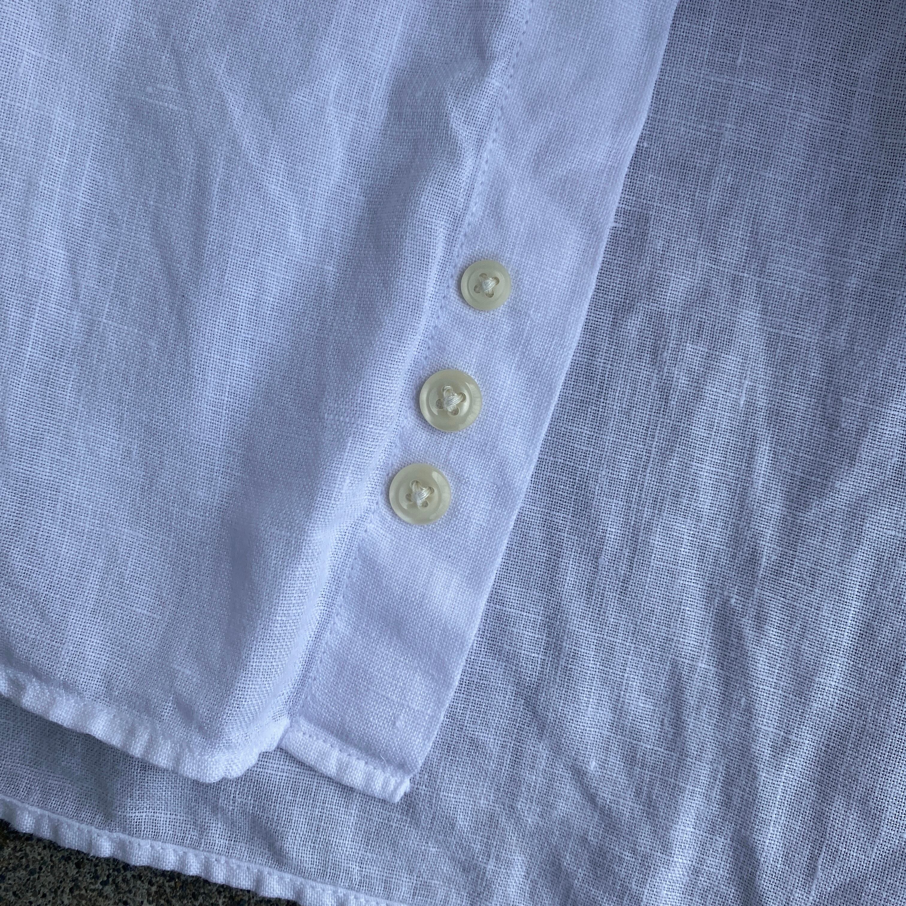 プルっとした打ち込みの強い上質なリネン生地に、身幅、アームホール共にゆったりとしたリラックス感のシルエット、清潔感のあるホワイトの色目がクリーンで春らしい一着。