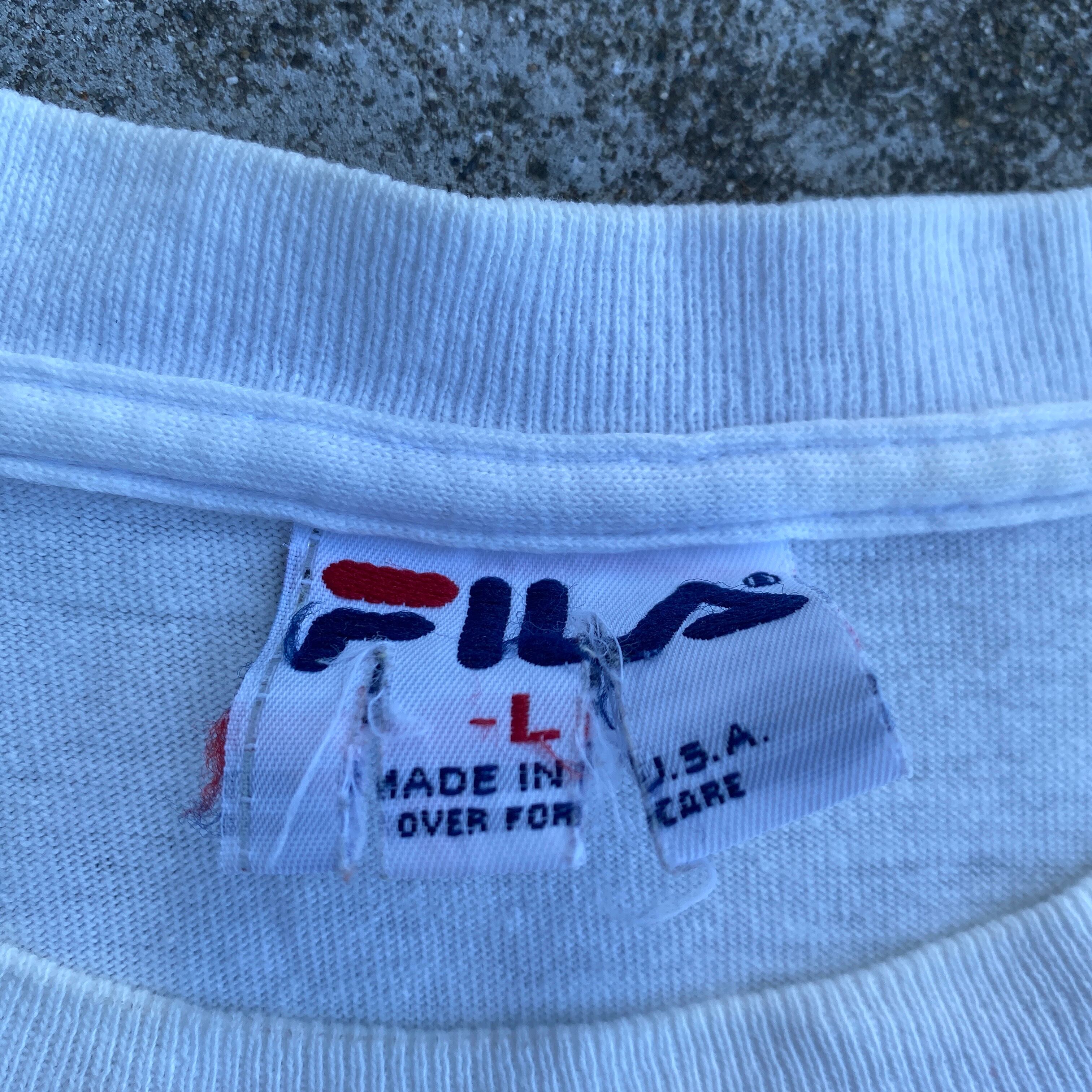 ホワイトボディに定番のデザインの普遍的な一枚ですが、FILAボディにコピーライトなしのブート?な一着。