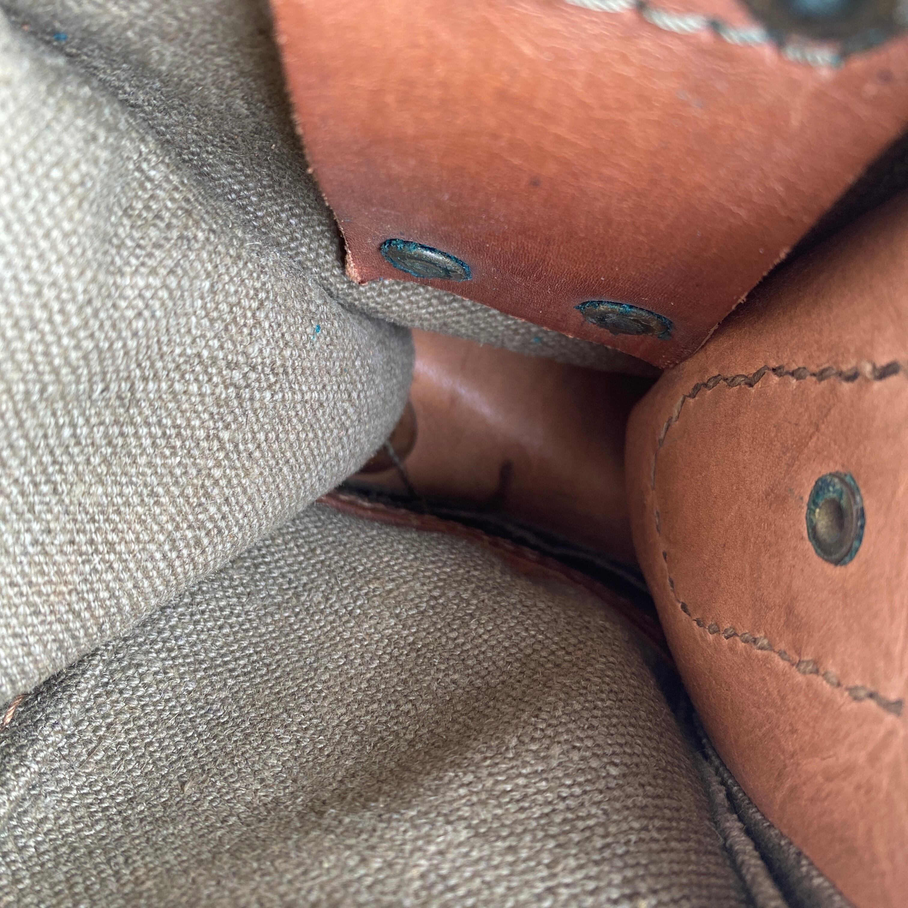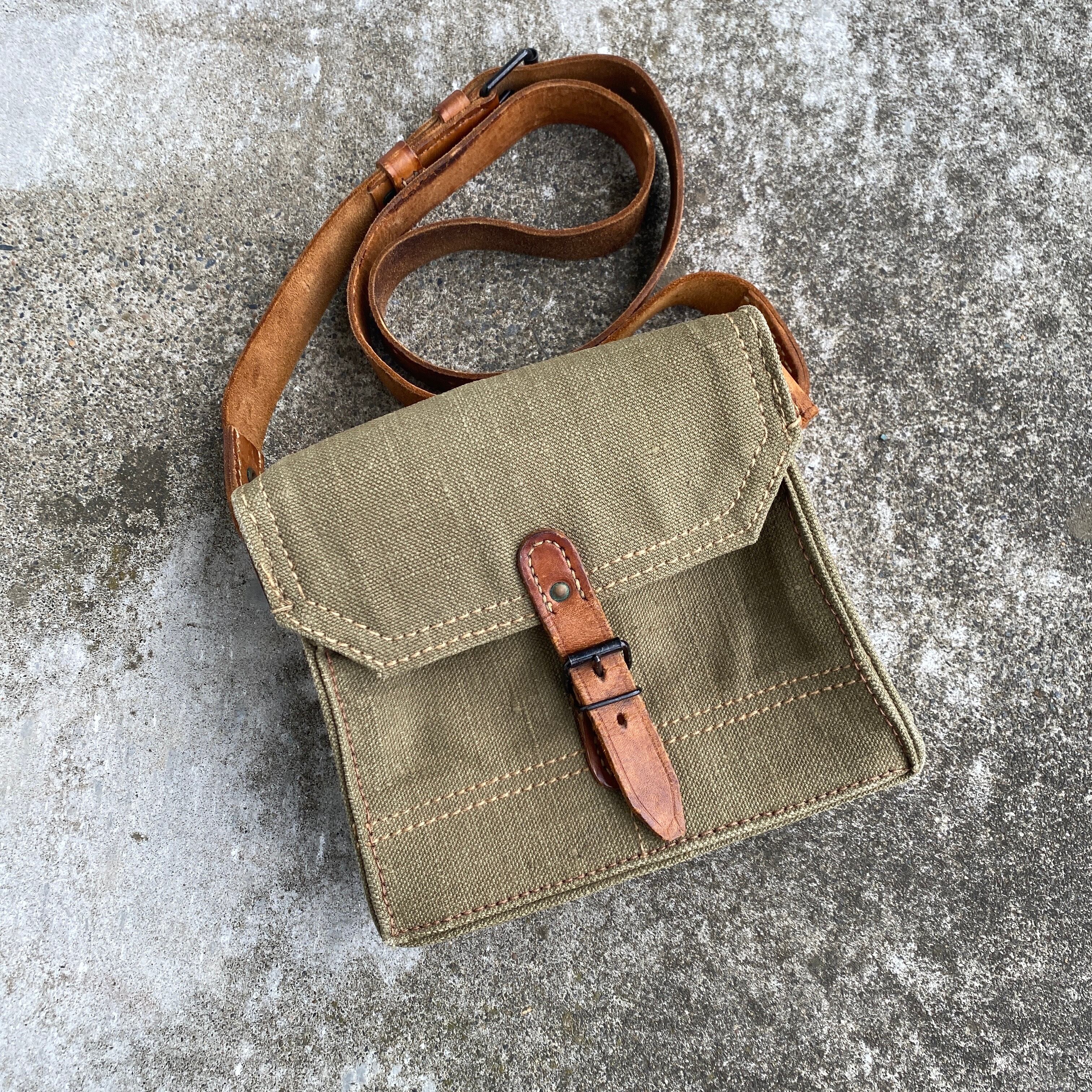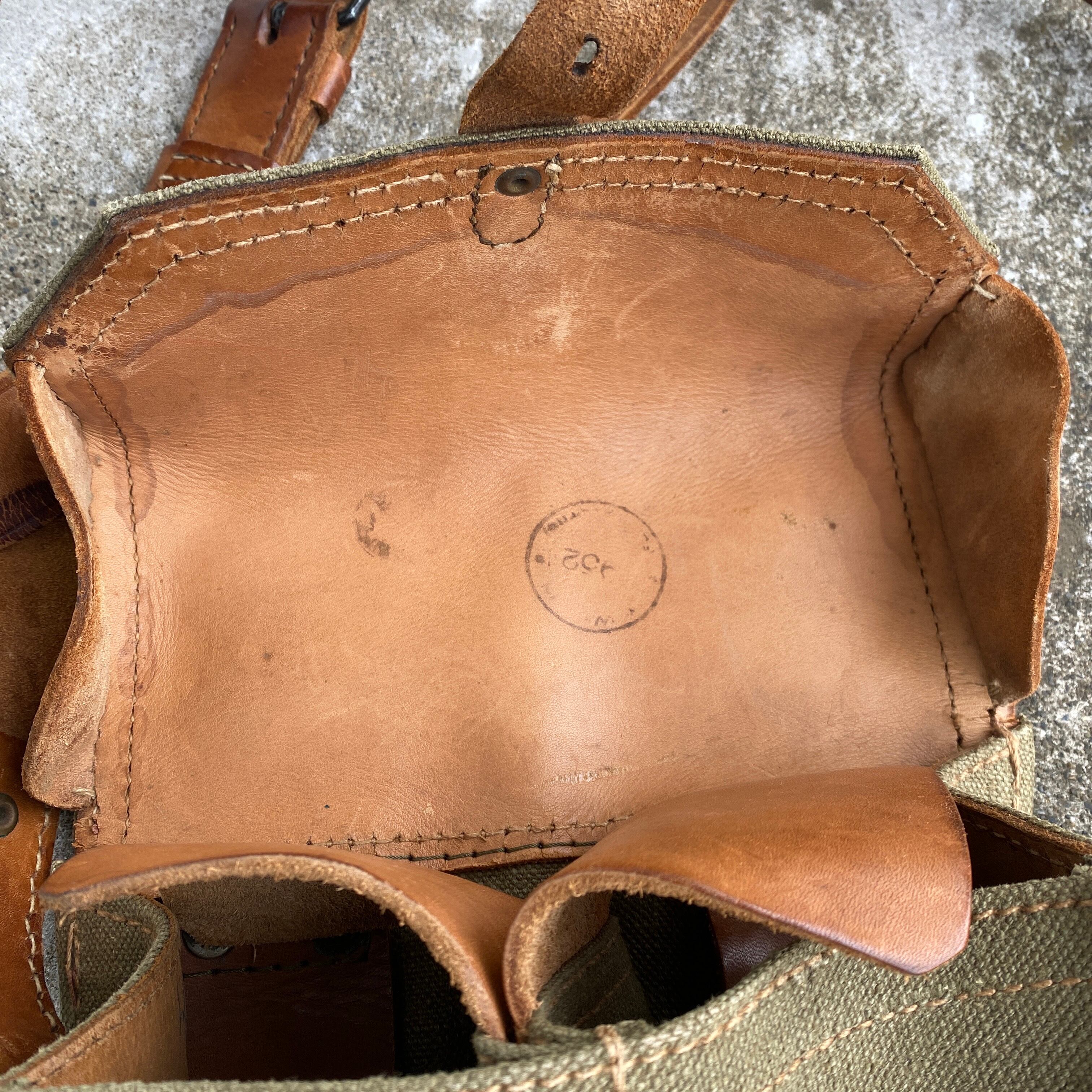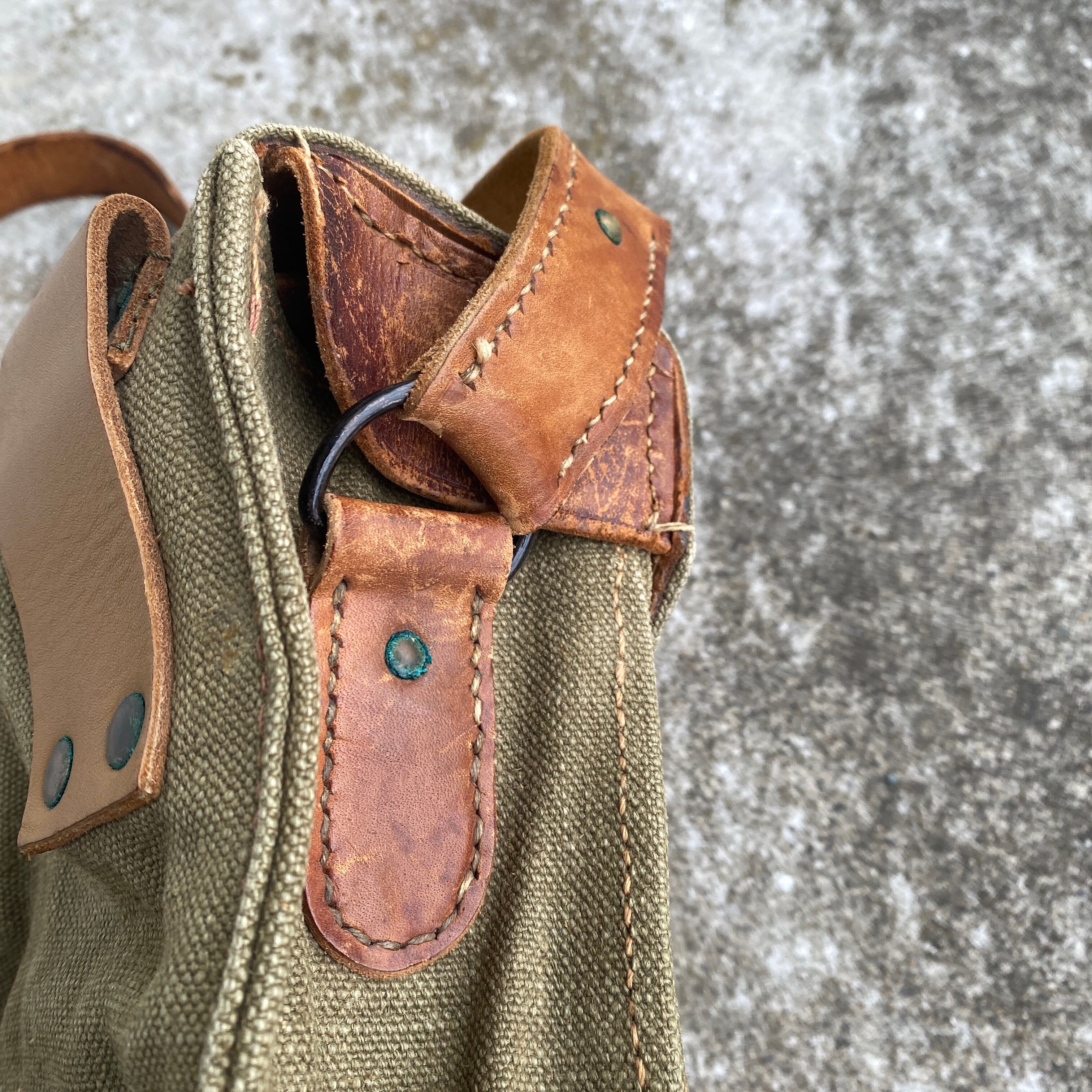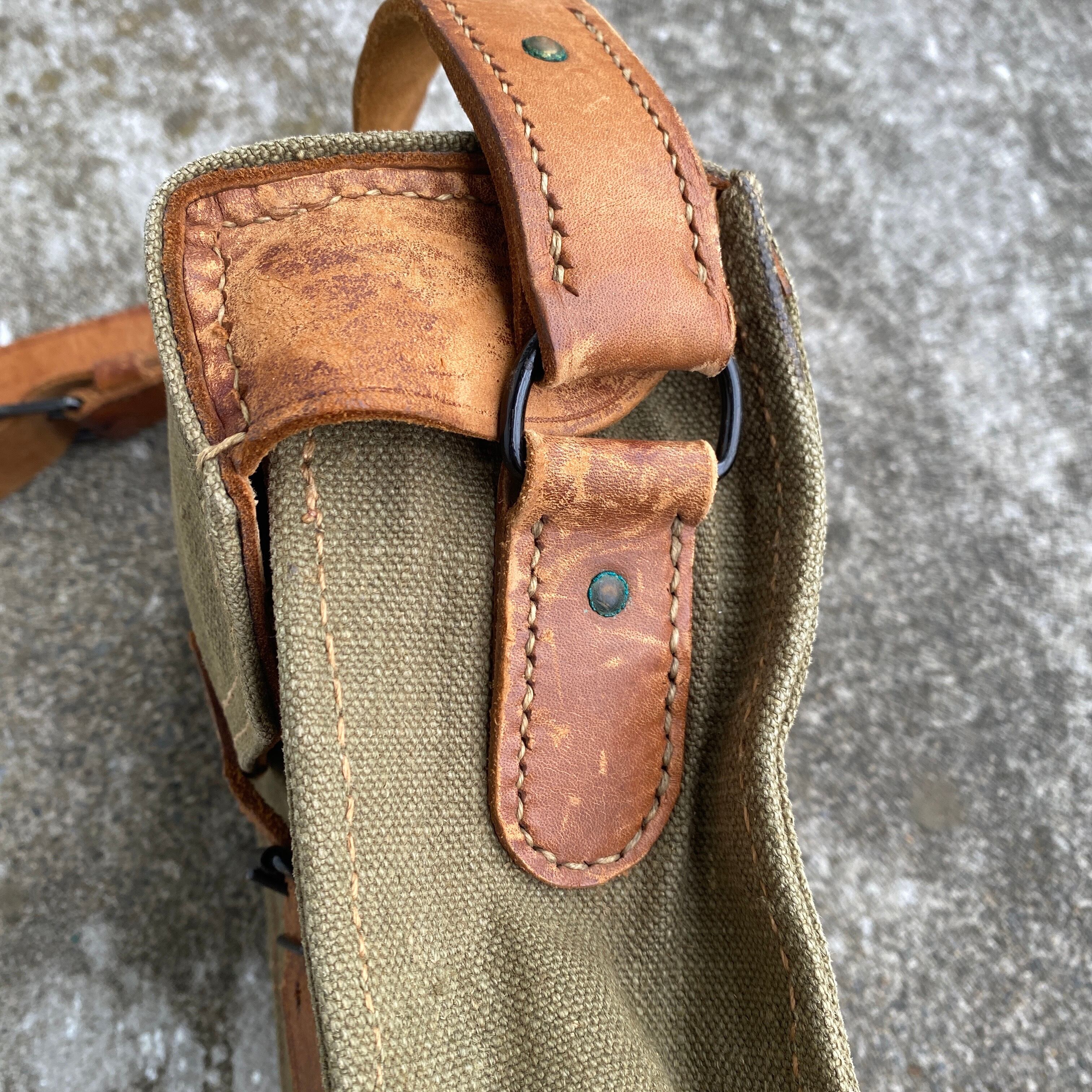 ガシッとしたキャンバスとレザーのコンビで、軍用らしい重厚な雰囲気が最高に格好良い逸品。