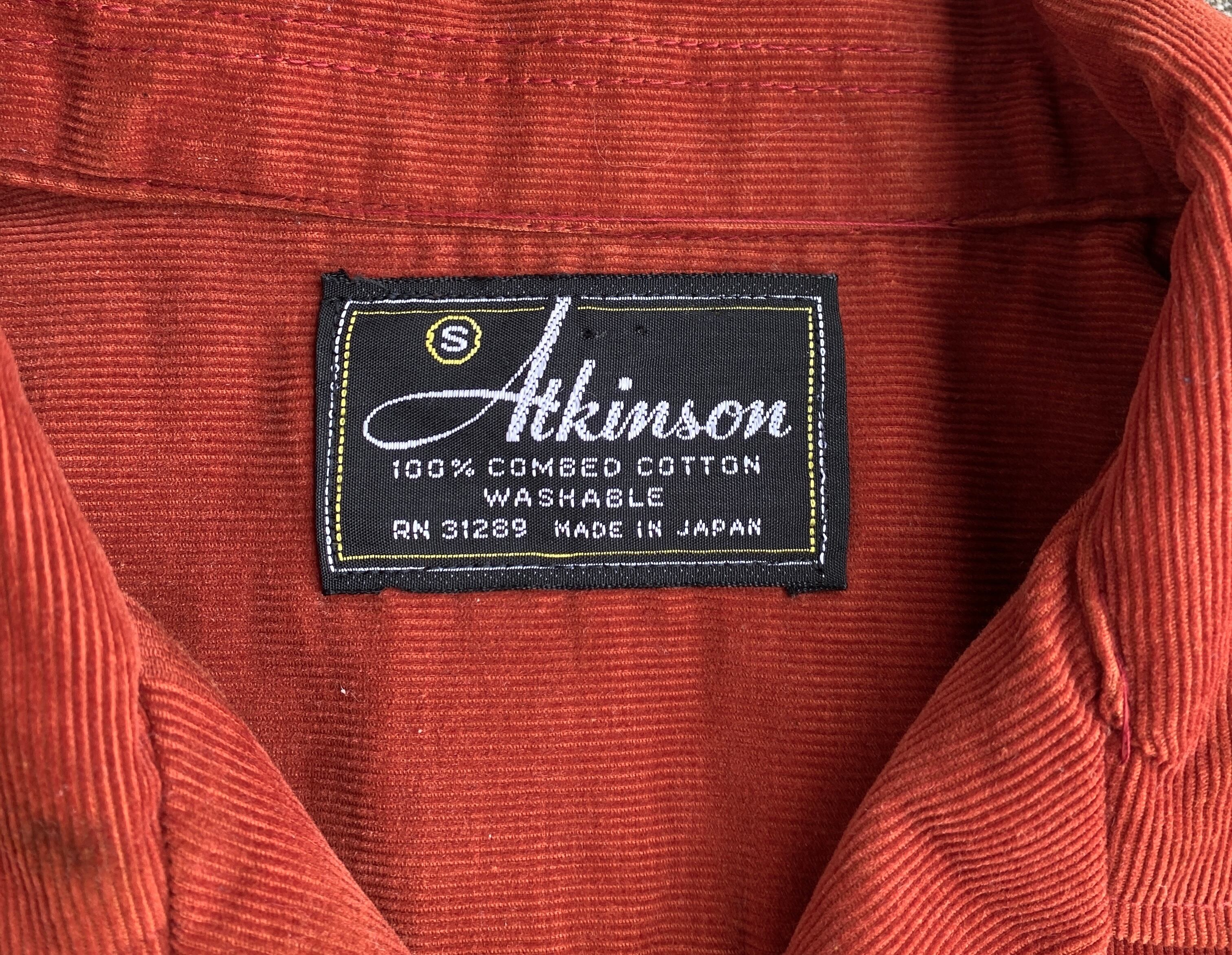 1950-60年代頃の「ATKINSON」オープンカラーコーデュロイシャツになります。