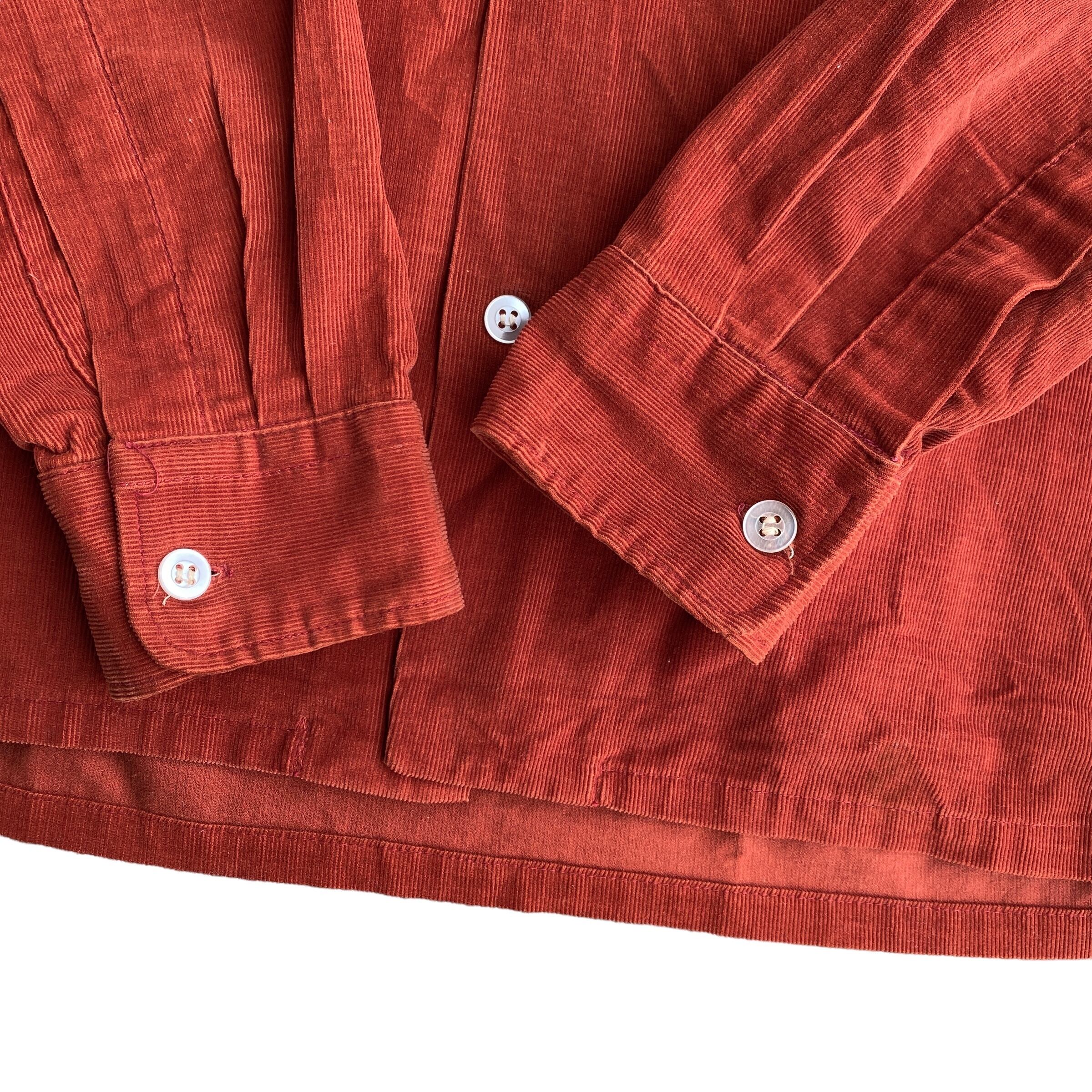 ほんのり褪色したオレンジブラウンカラーに、細畝の柔らかいコットンコーデュロイ素材が良い雰囲気の一着。