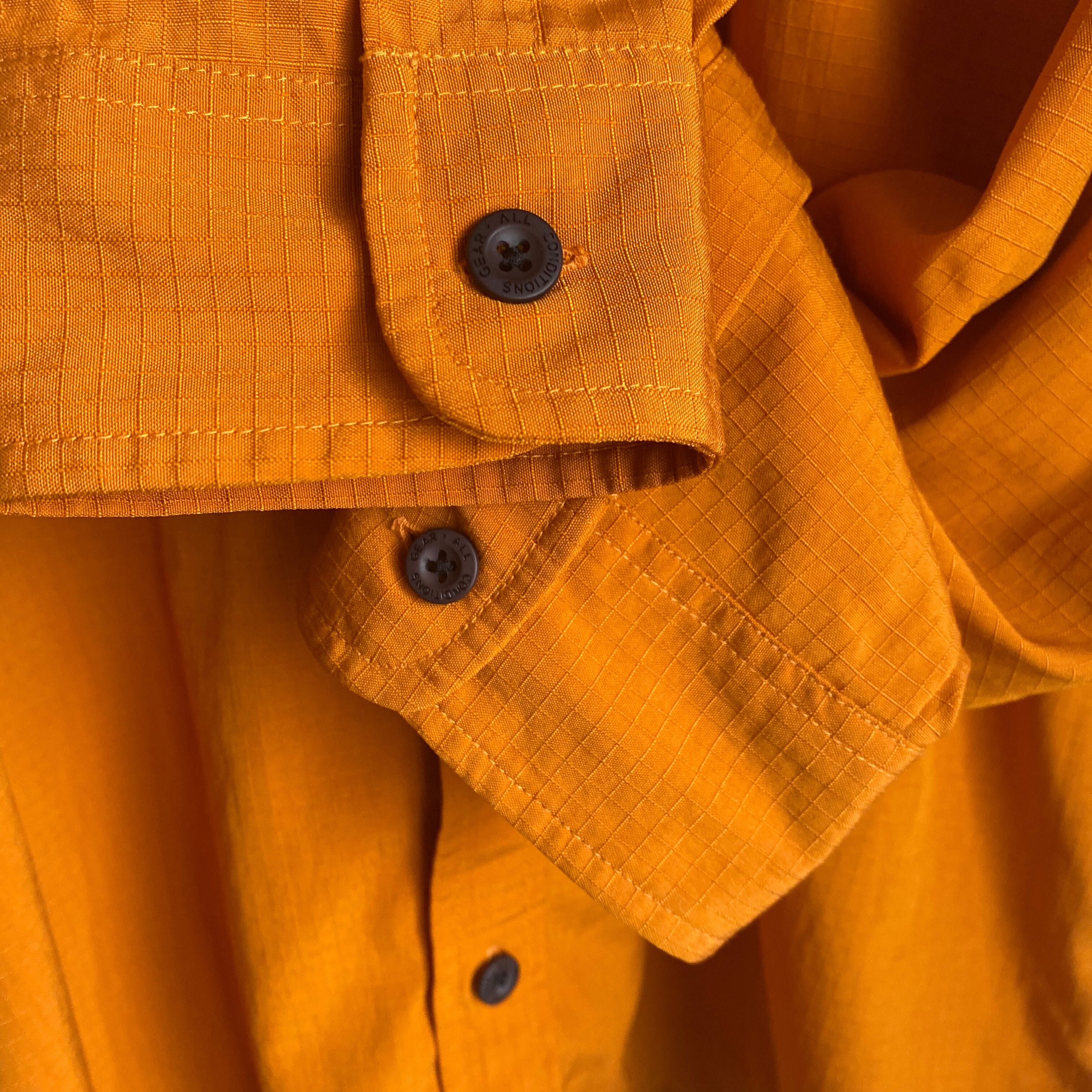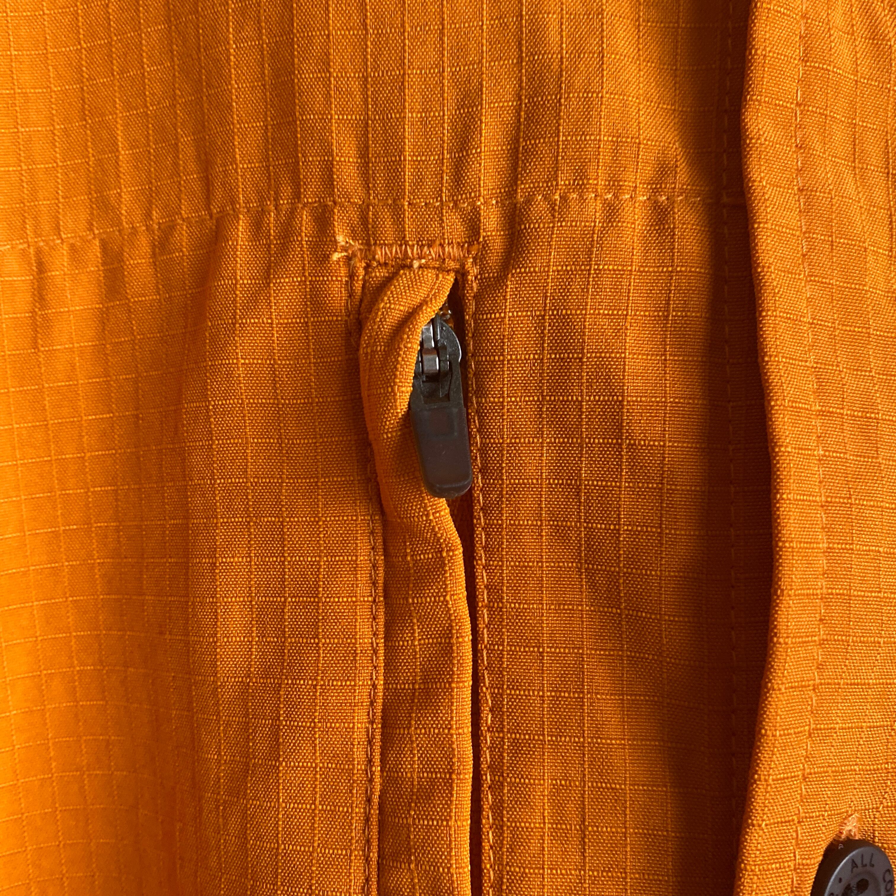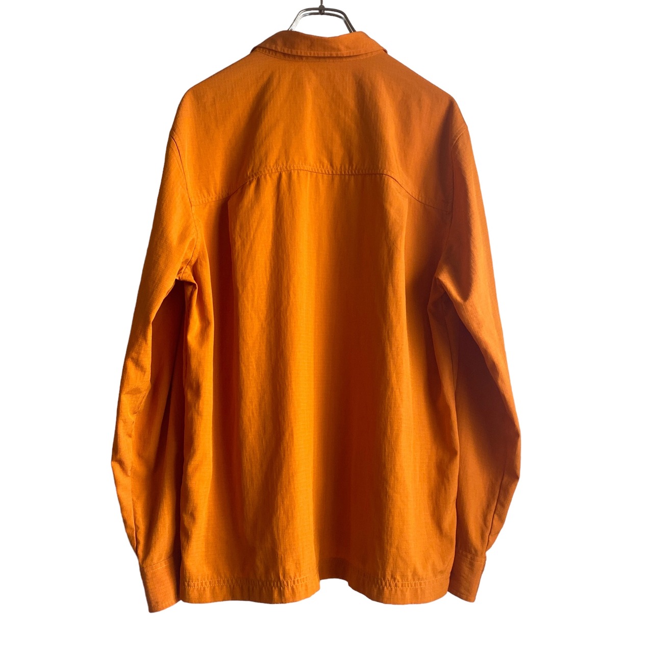 やや暗めの綺麗なオレンジカラーに、シャリ感のあるリップストップナイロンの素材感が非常に格好良い一着。
