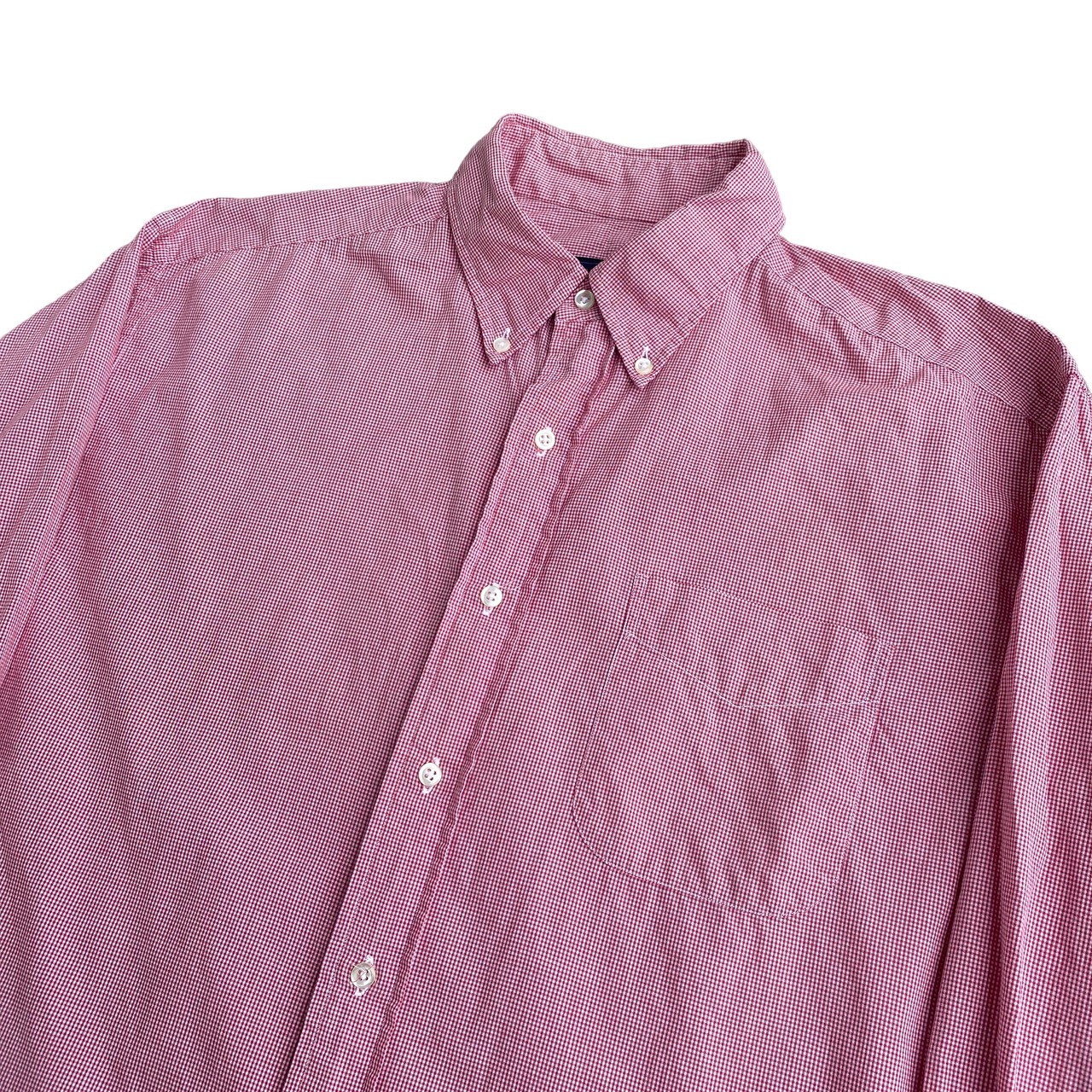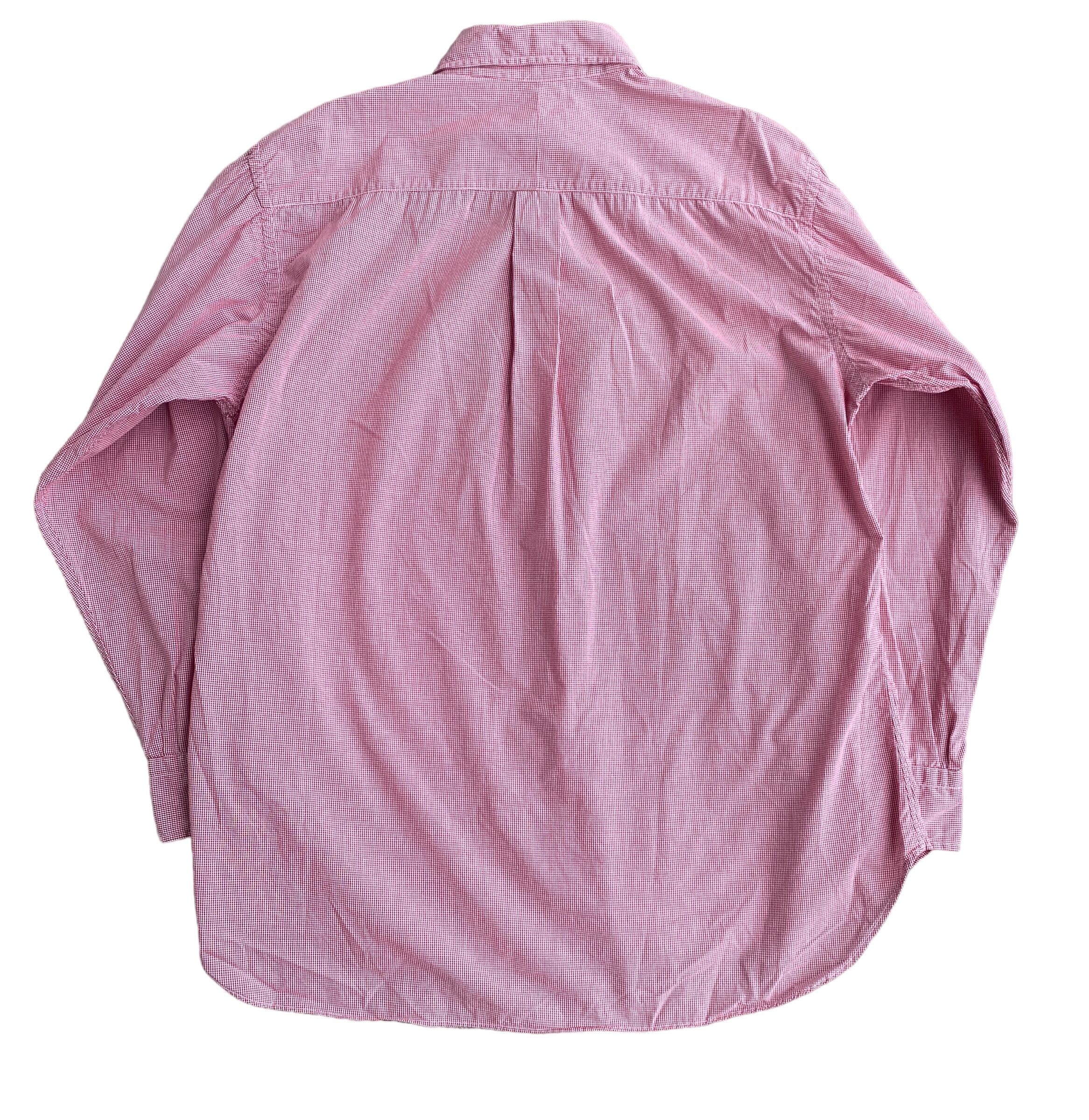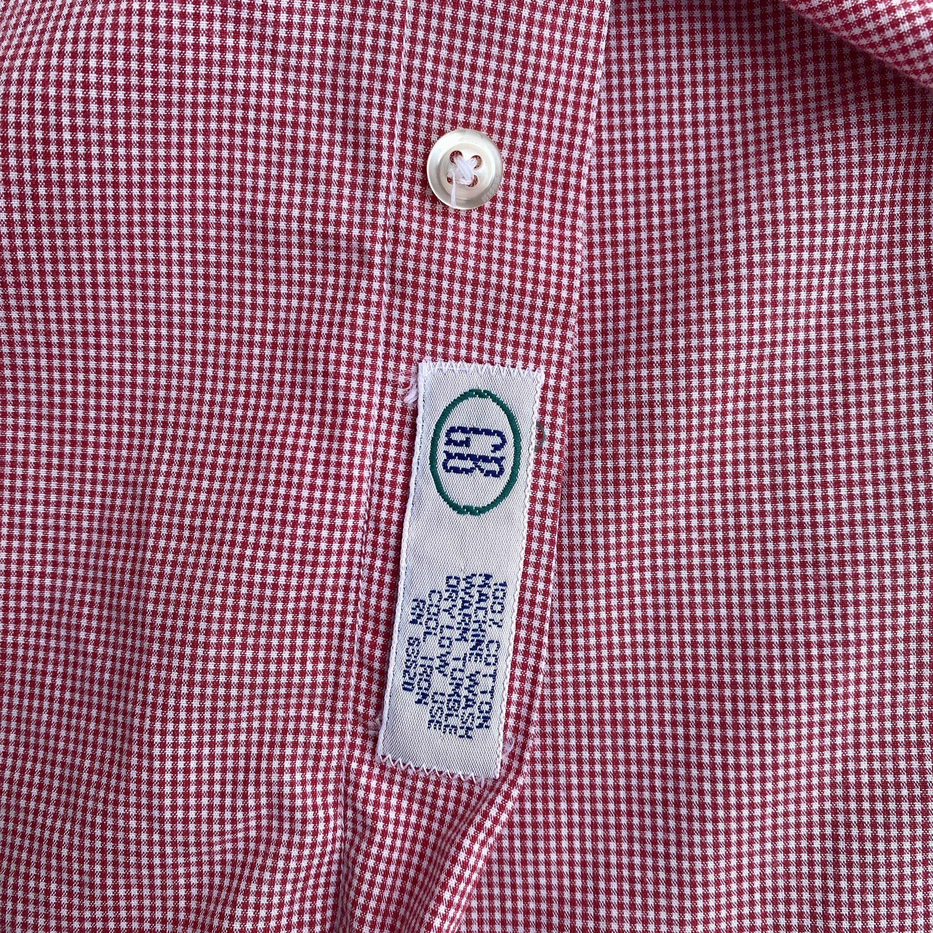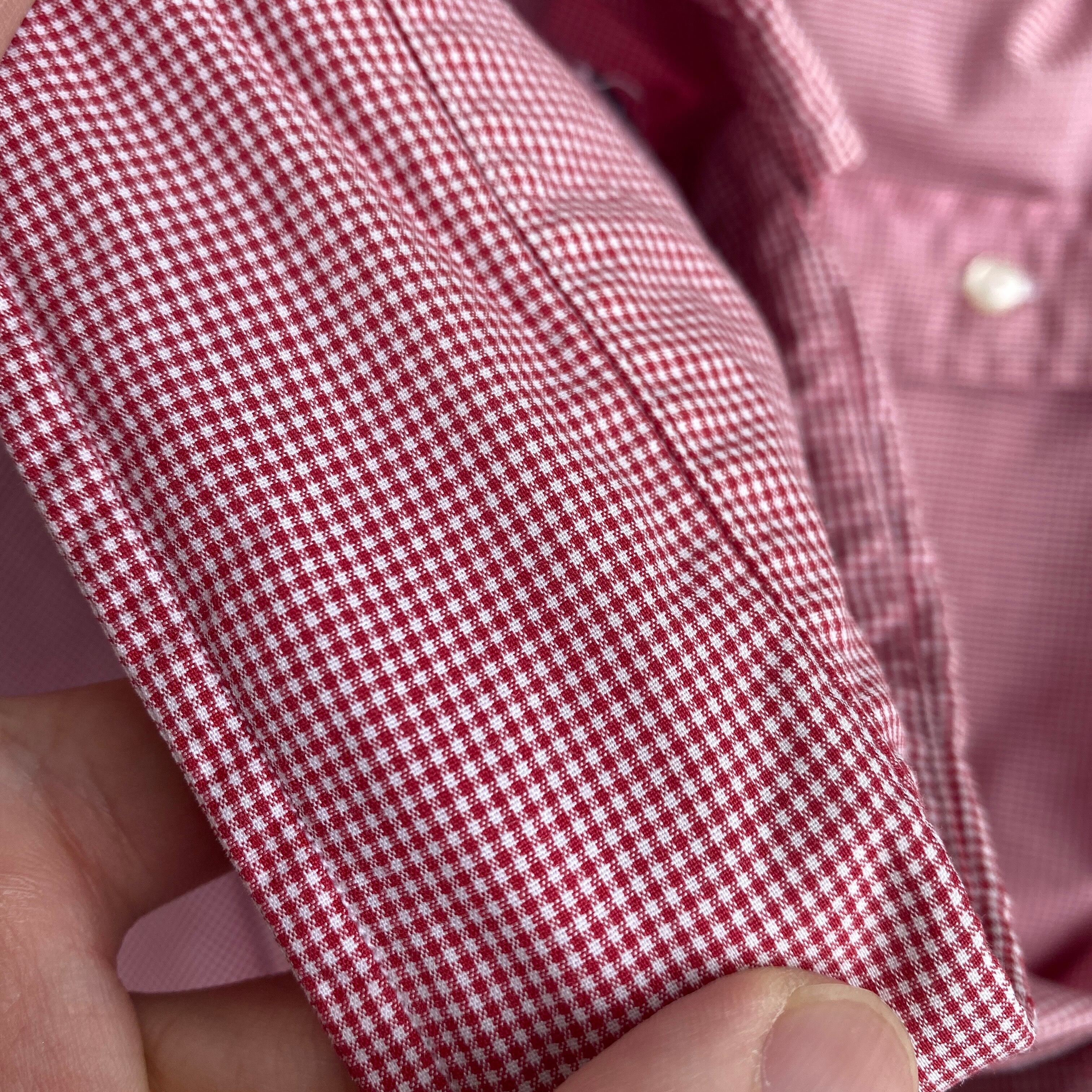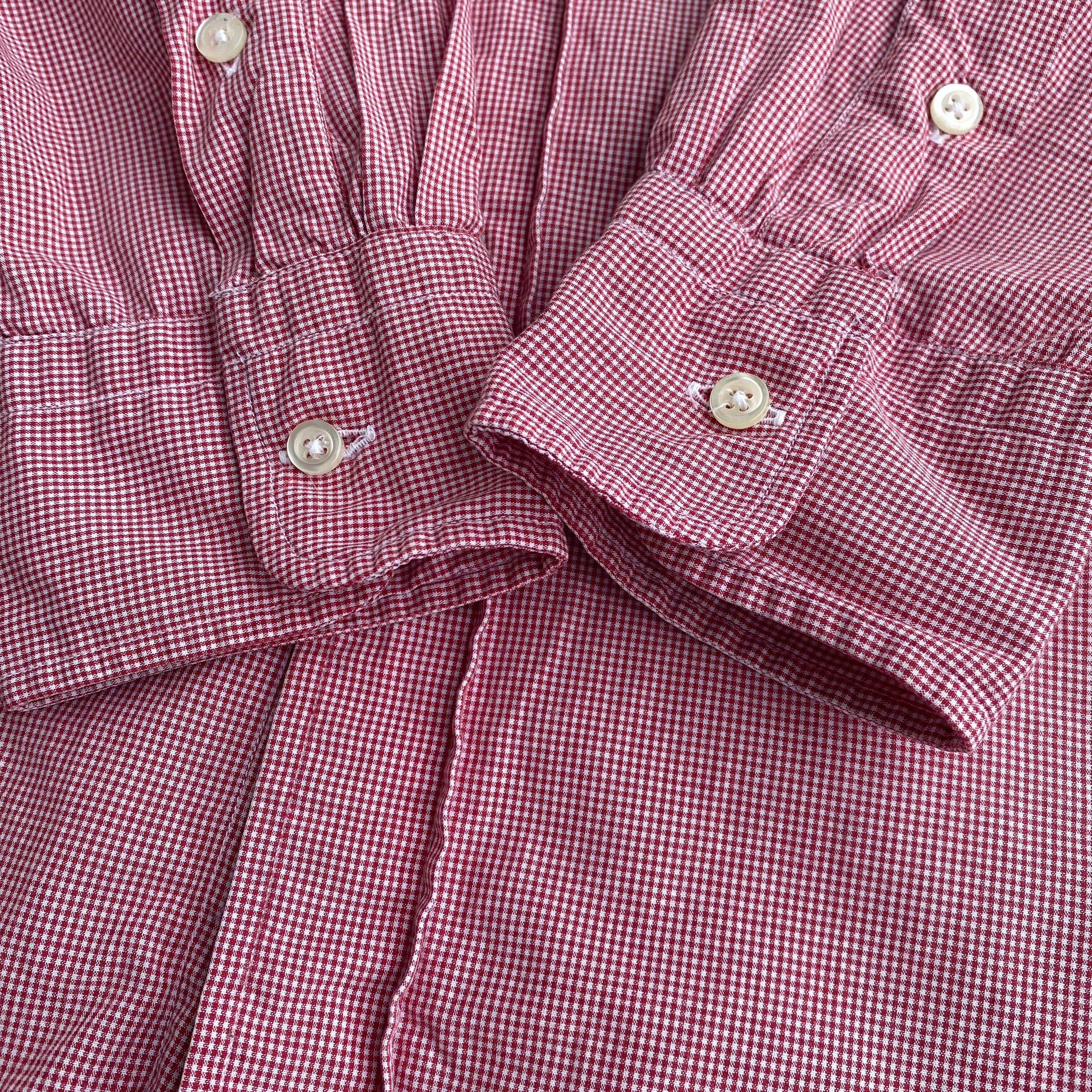 しっかり目の詰まったコットン100の上質なブロード生地に、レッド×ホワイトの細かなギンガムチェック、程よくゆとりがありつつも緩すぎないベーシックなシルエットが非常に格好良い一着。