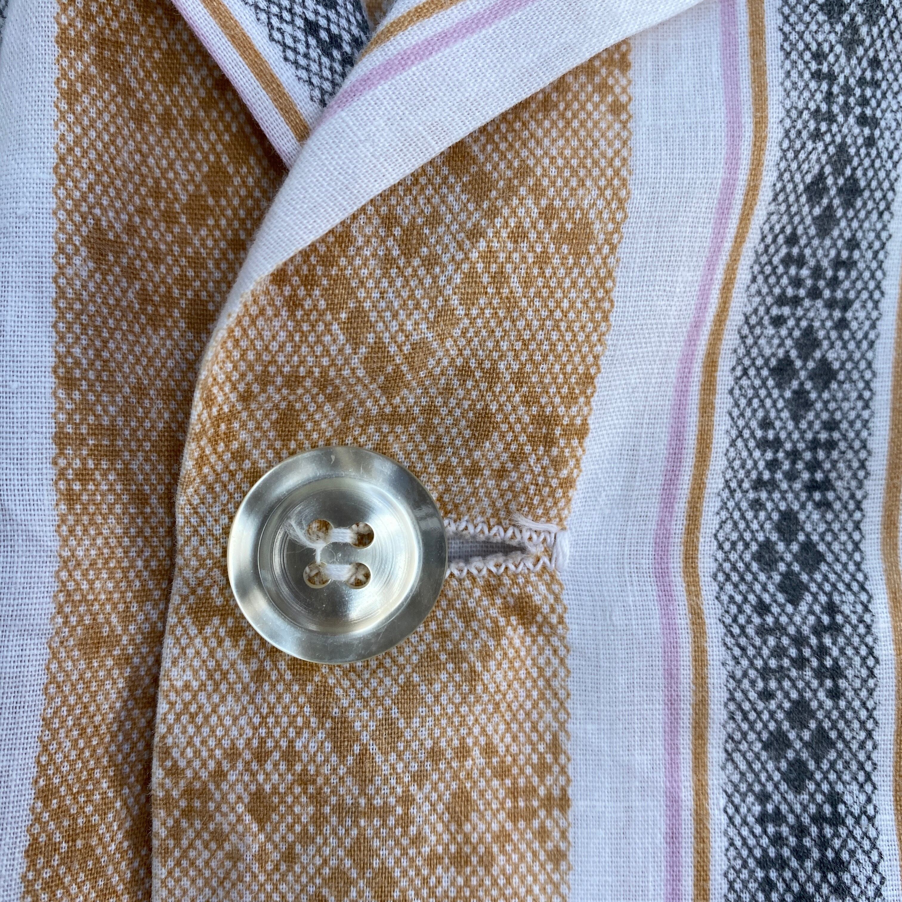 暖色、ブラック、ホワイトをベースにした綺麗なマルチストライプに、ゆったりとしたボックスシルエットが非常に格好良い一着。