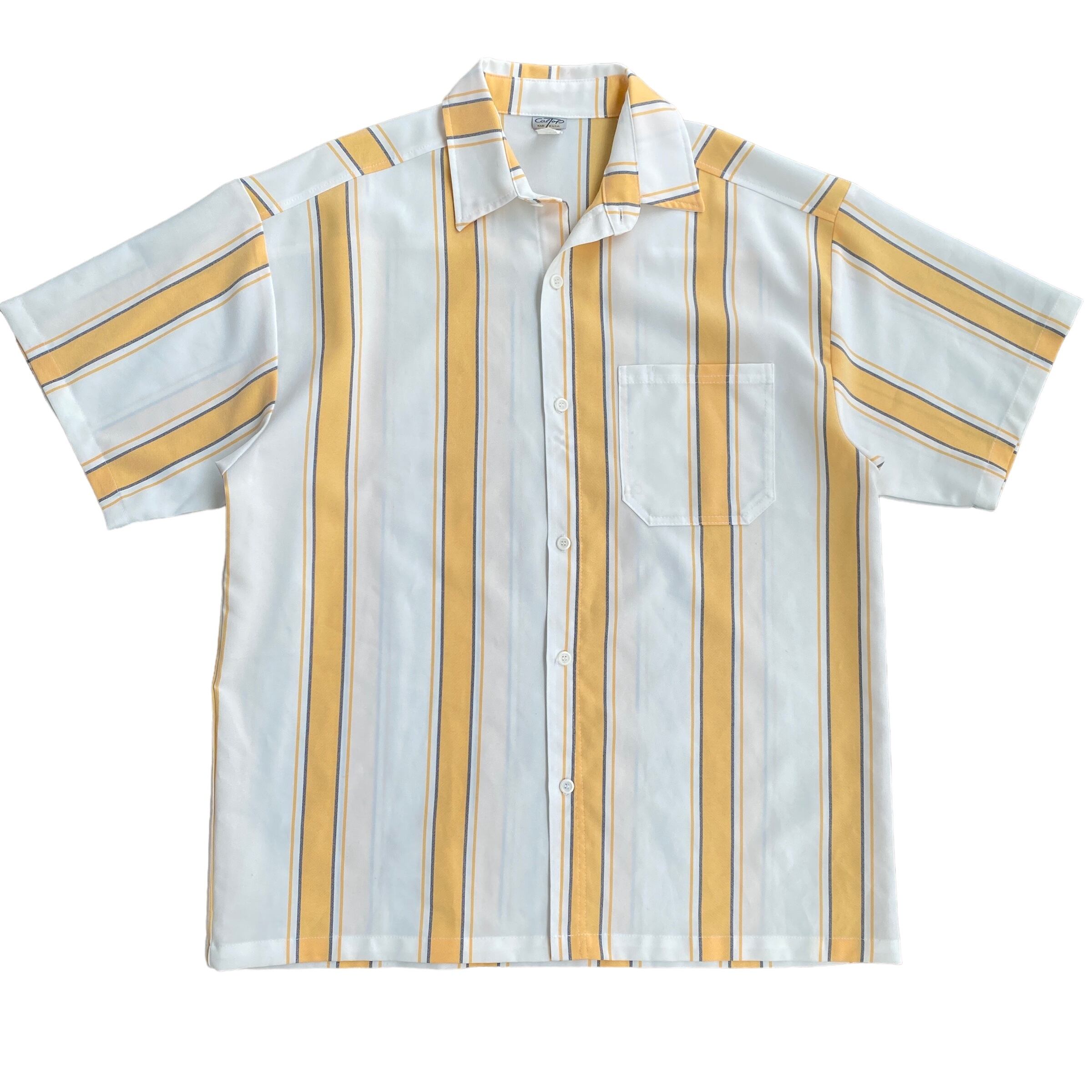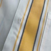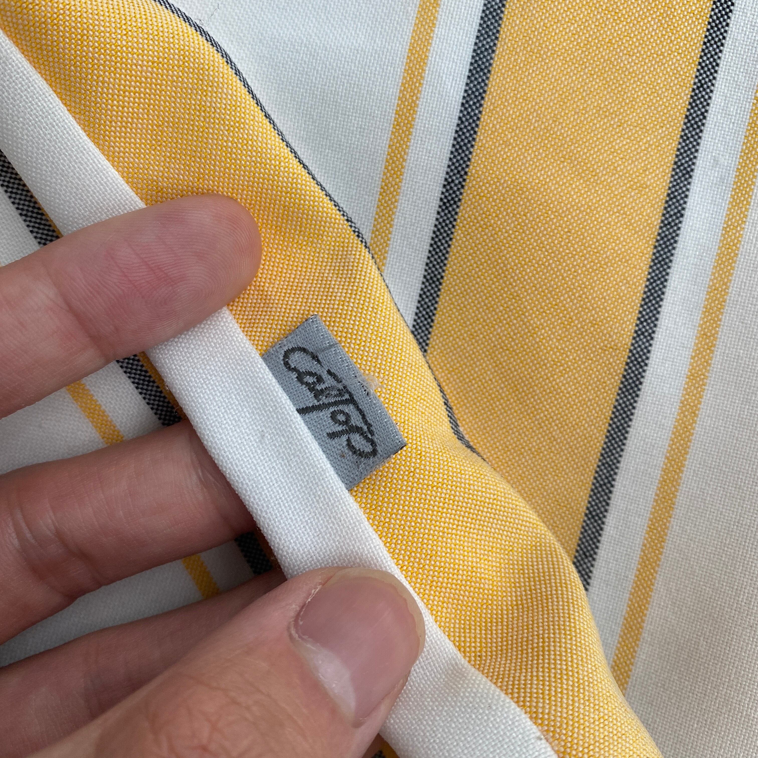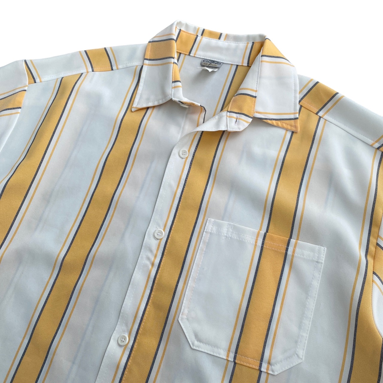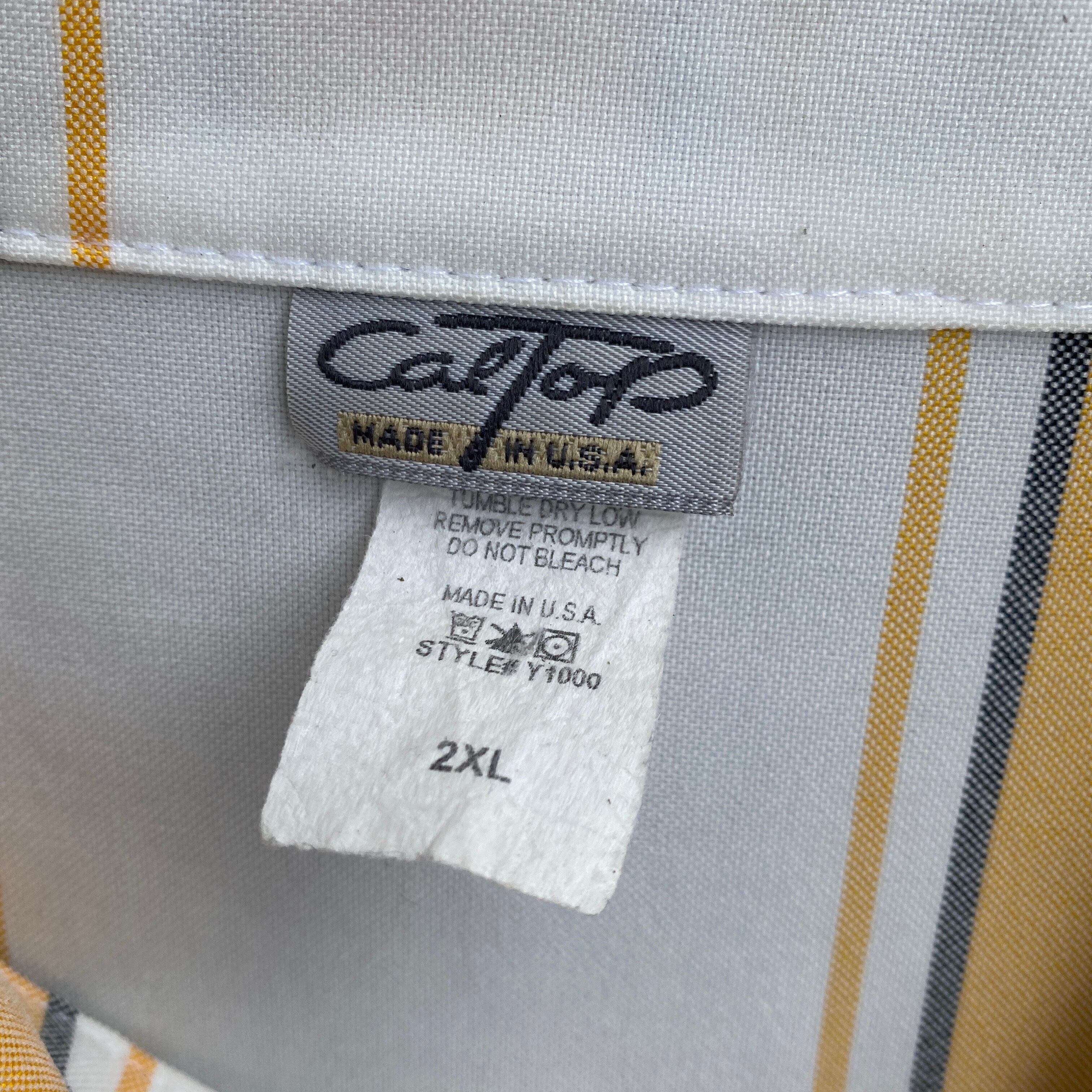 ポリエステル素材を使用し、サラッとした手触りが心地よいカルトップ定番の一着ですが、こちらは珍しいオレンジ×ホワイトの太ストライプ。