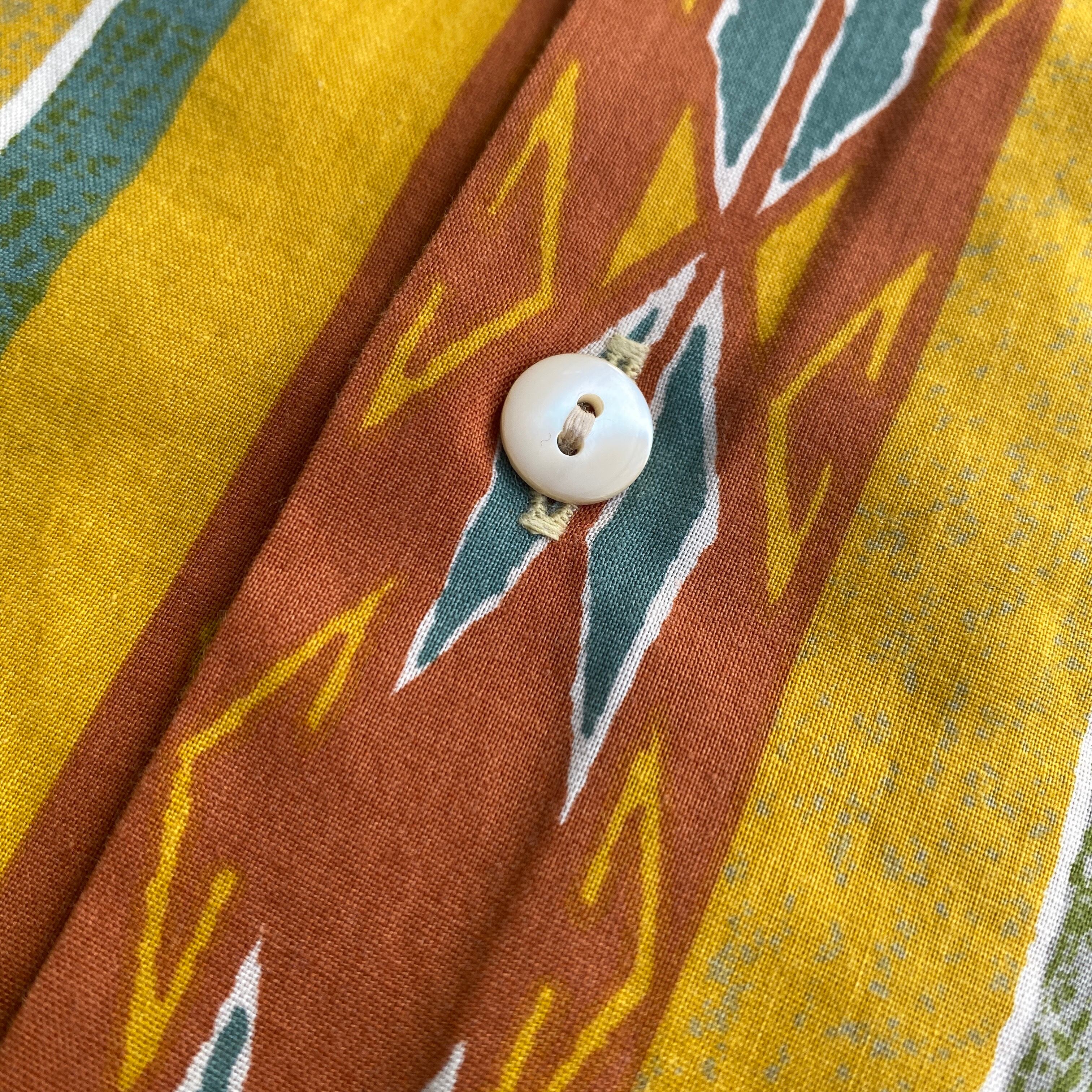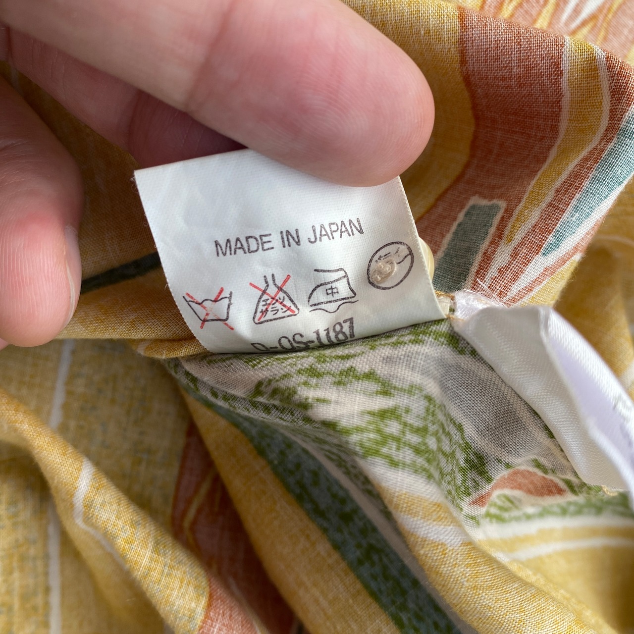 コットンレーヨンの柔らかく滑らかな生地に、浴衣の柄にありそうな爽やかで夏らしい総柄が非常に格好良い一着。