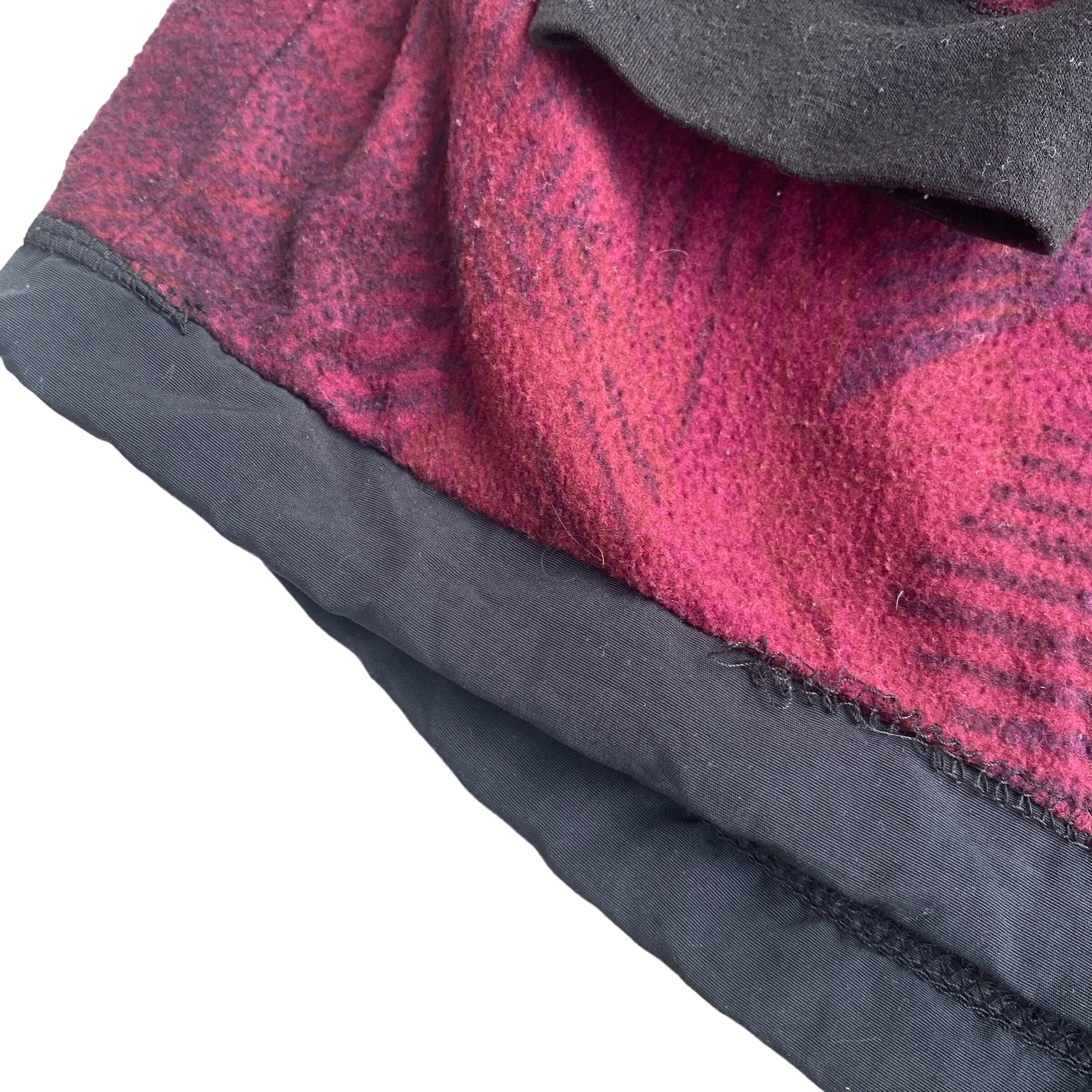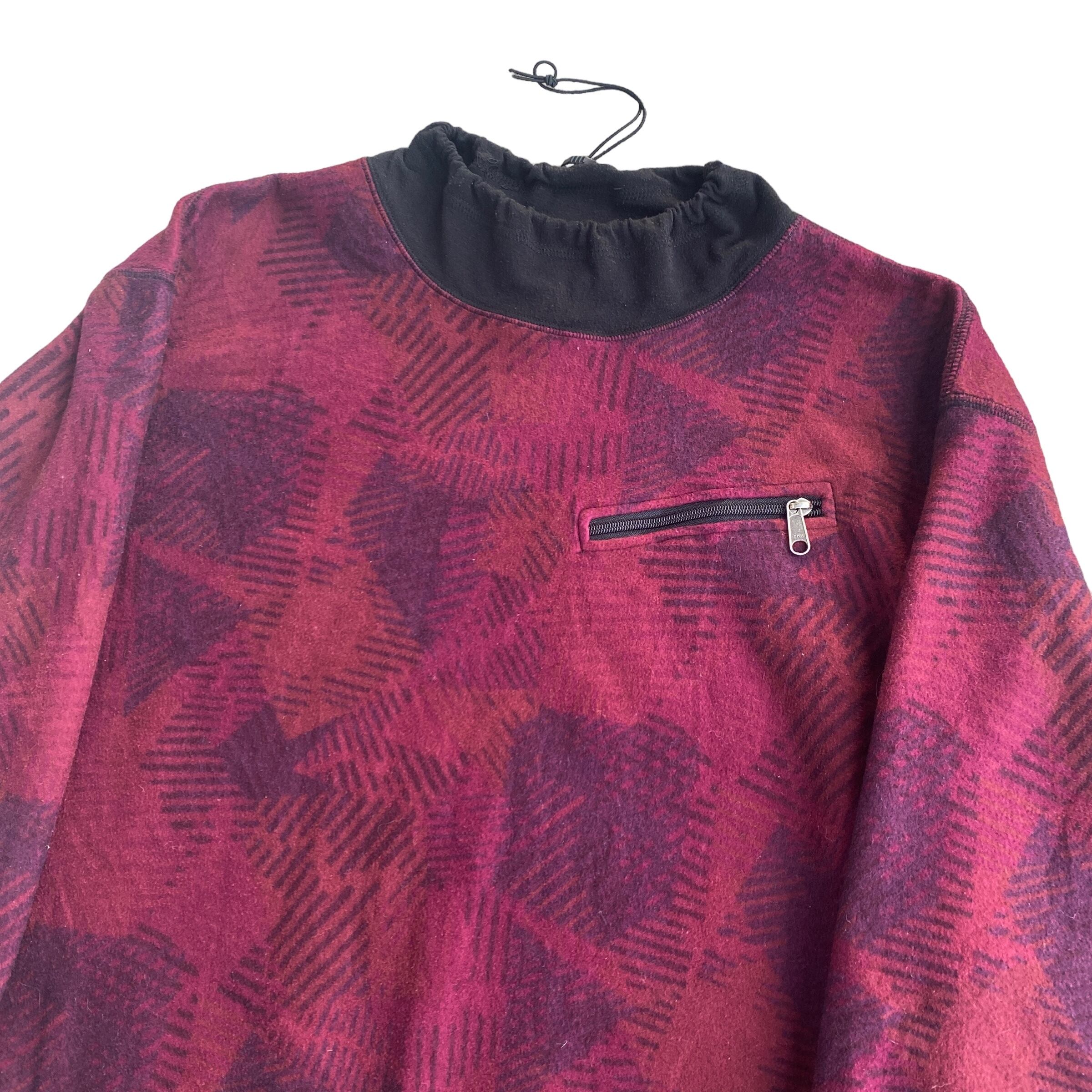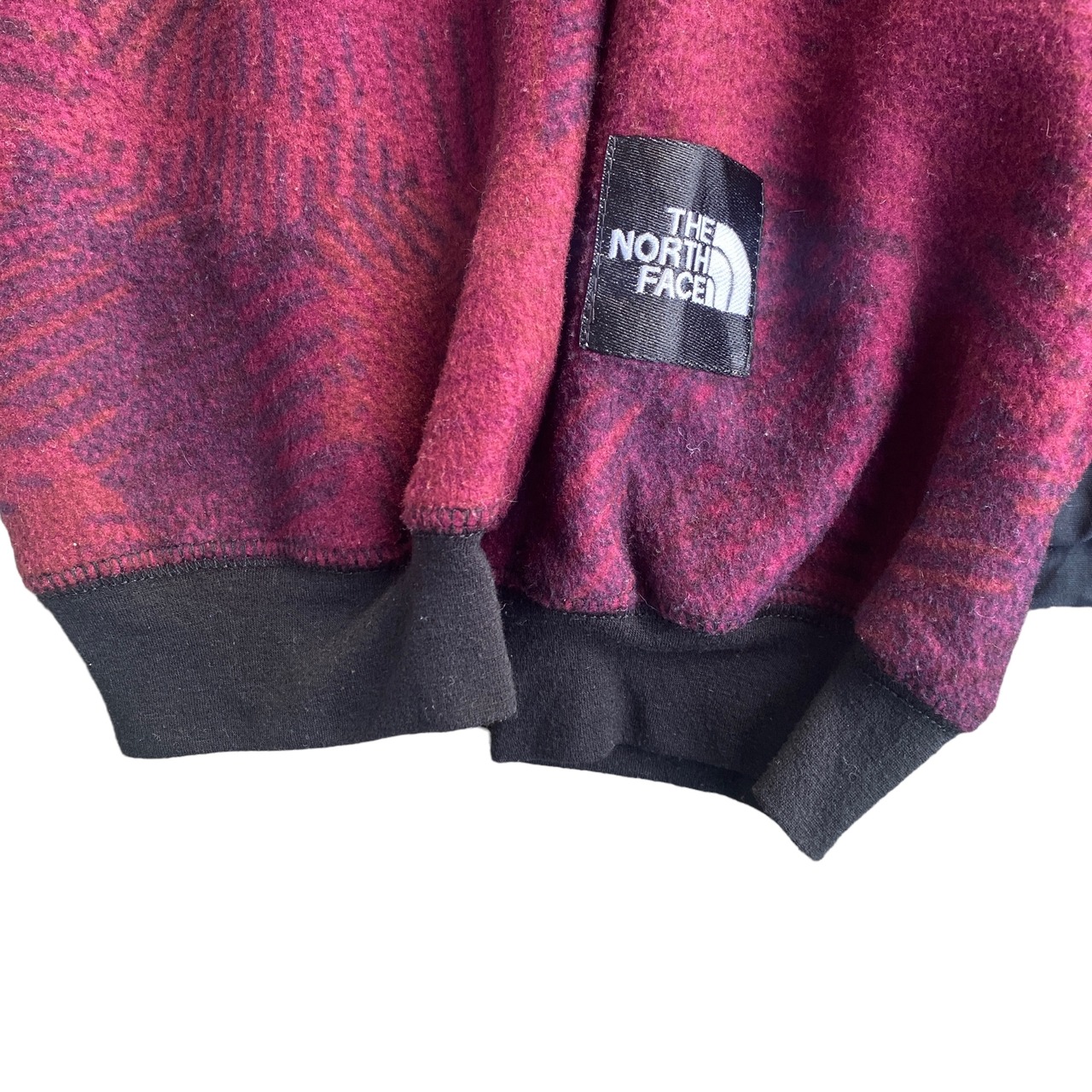 エンジ系をベースにした幾何学模様のフリース生地と、ブラックのナイロンとのコンビが非常に格好良く、アウトドアウェアらしからぬアーバンなデザインです。