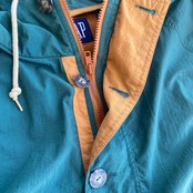 ハリコシがありつつしなやかなナイロン素材に、くすんだグリーン×オレンジの配色が非常に格好良い一着。