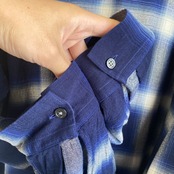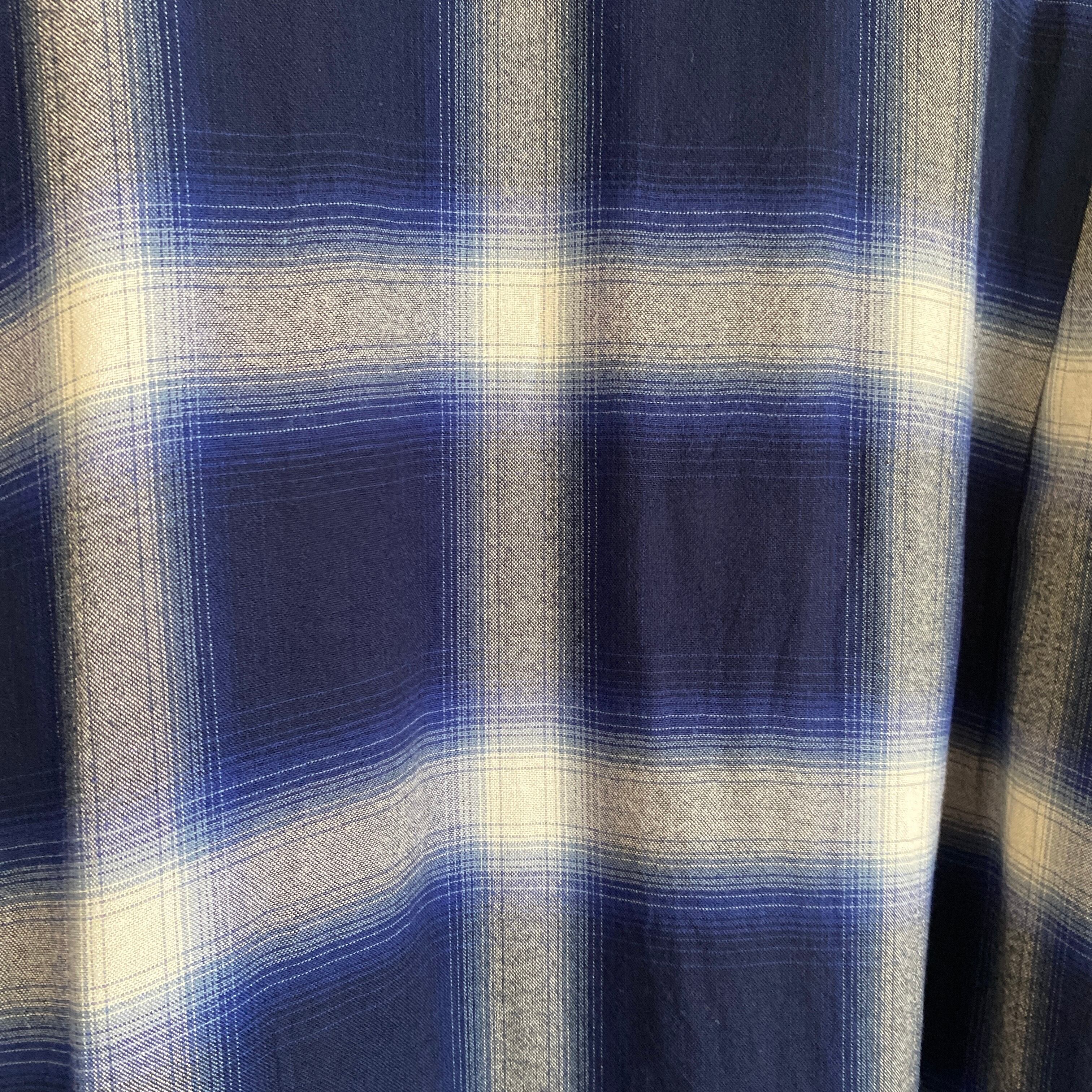 柔らかいレーヨンの生地感に、ブルー×ホワイトのオンブレチェックパターンが非常に格好良い一着。
