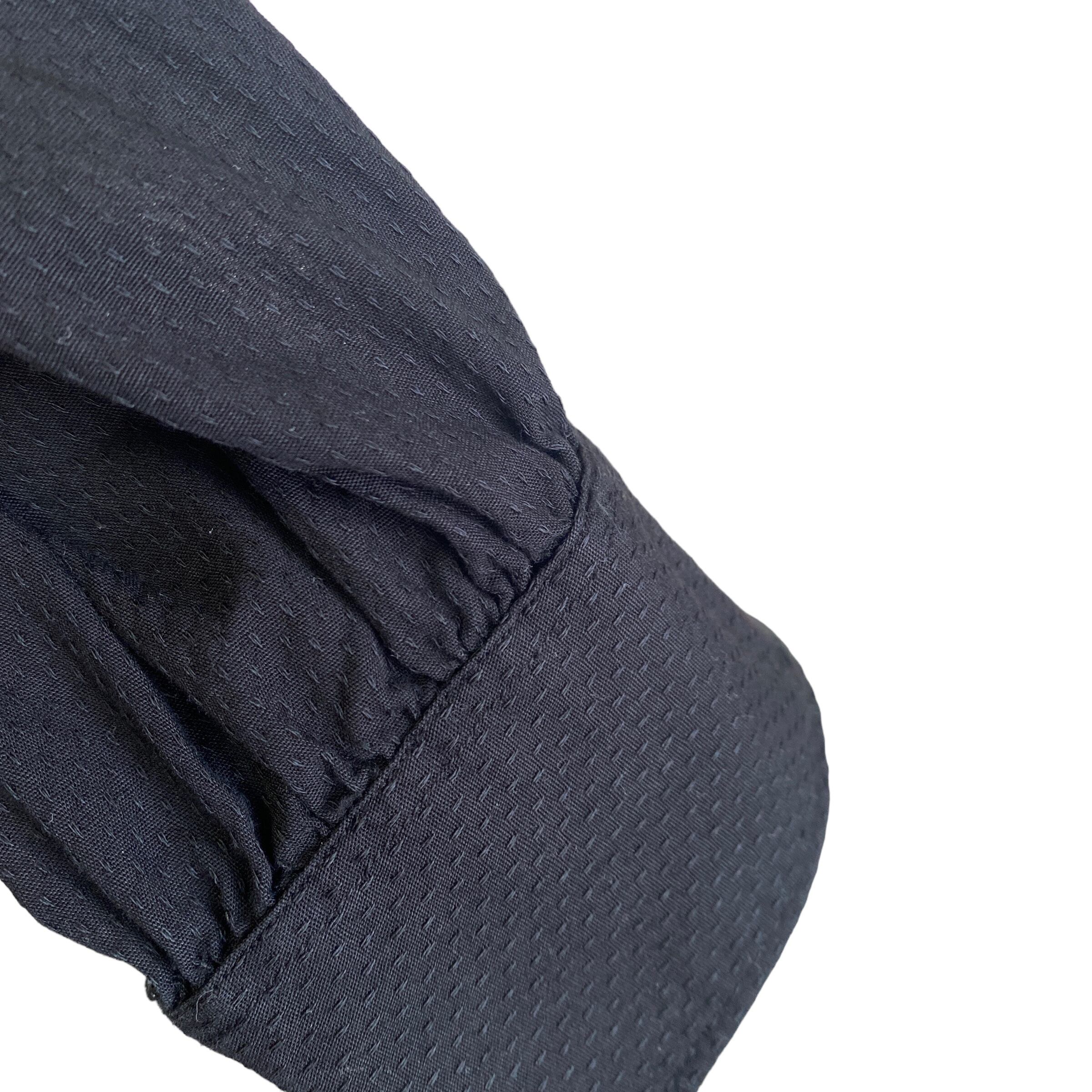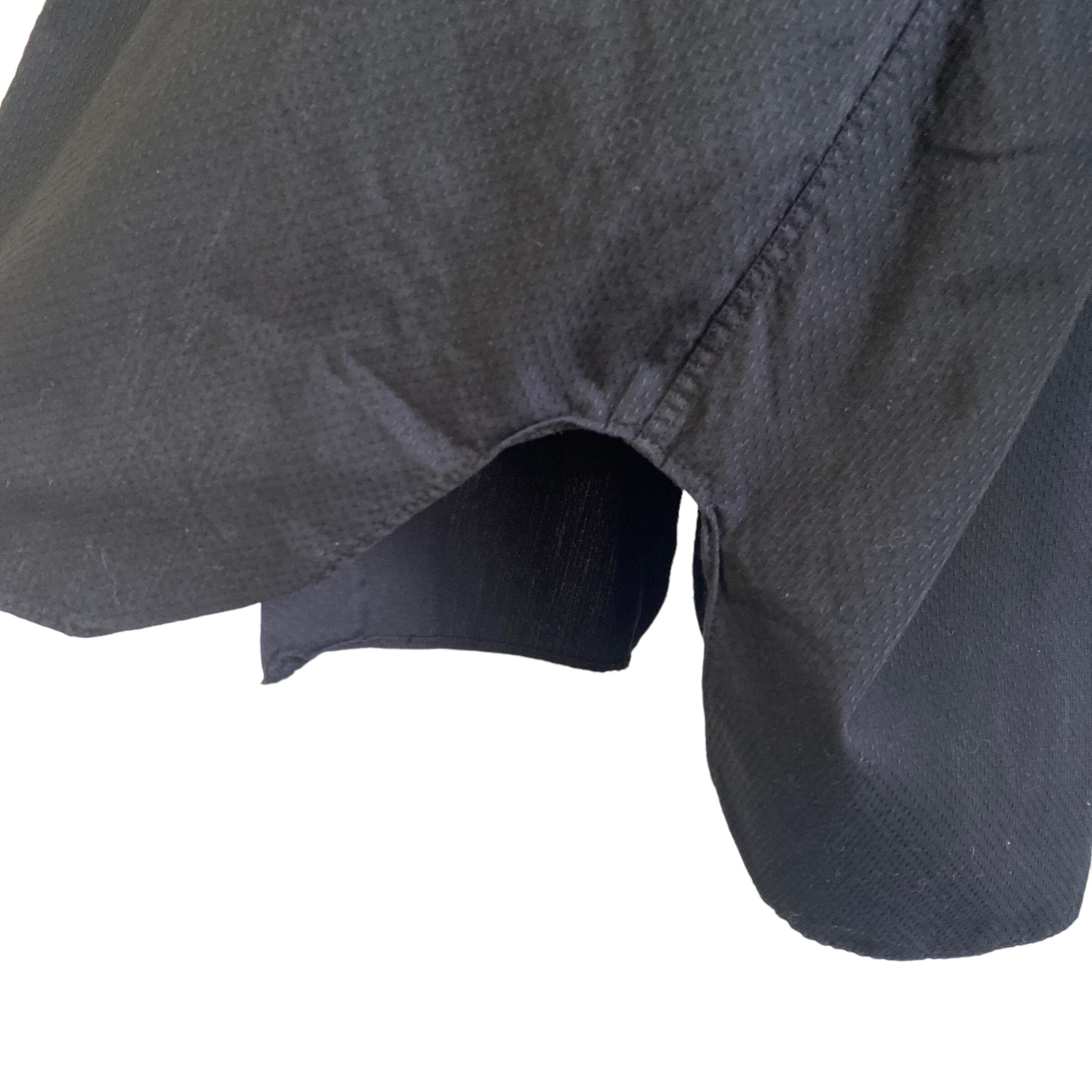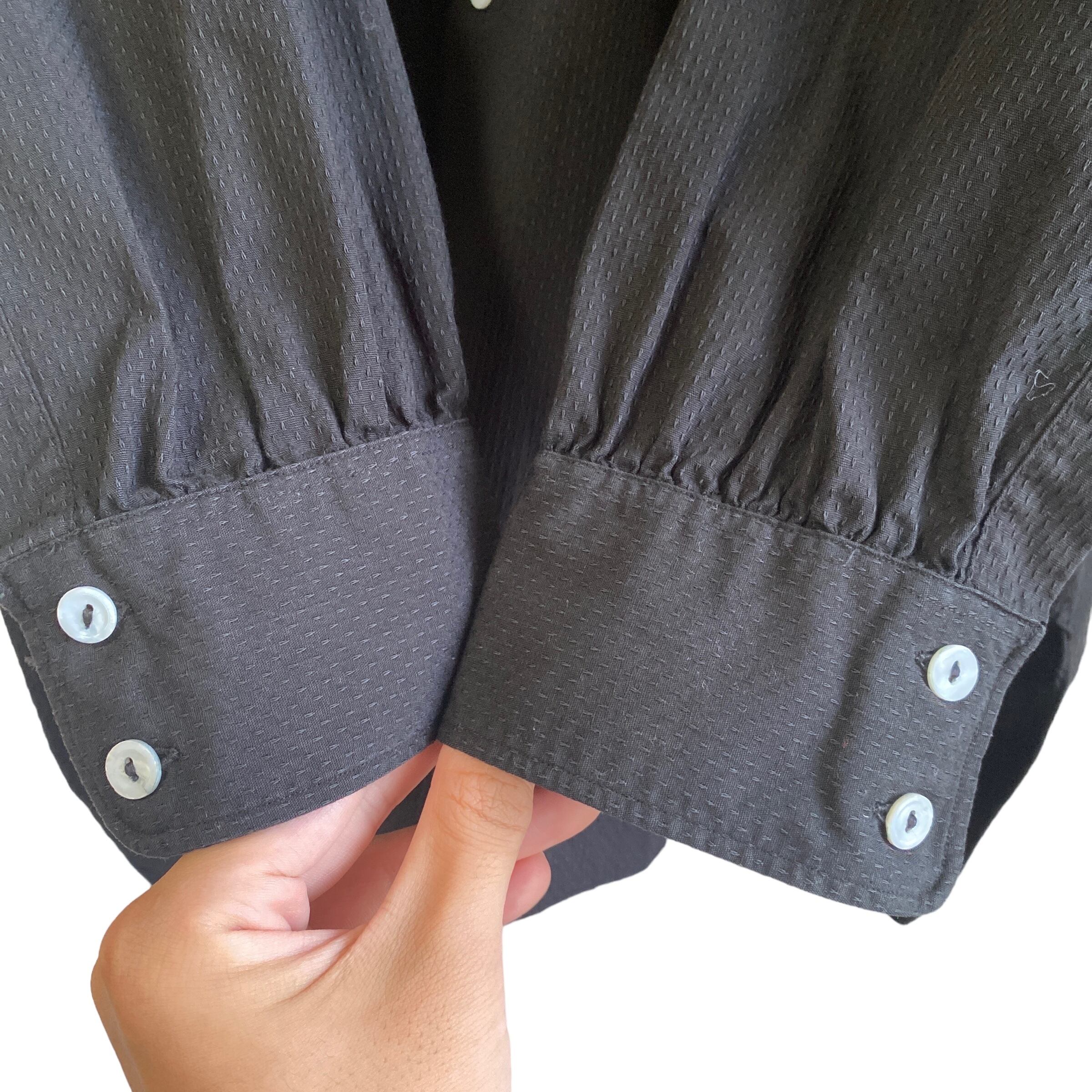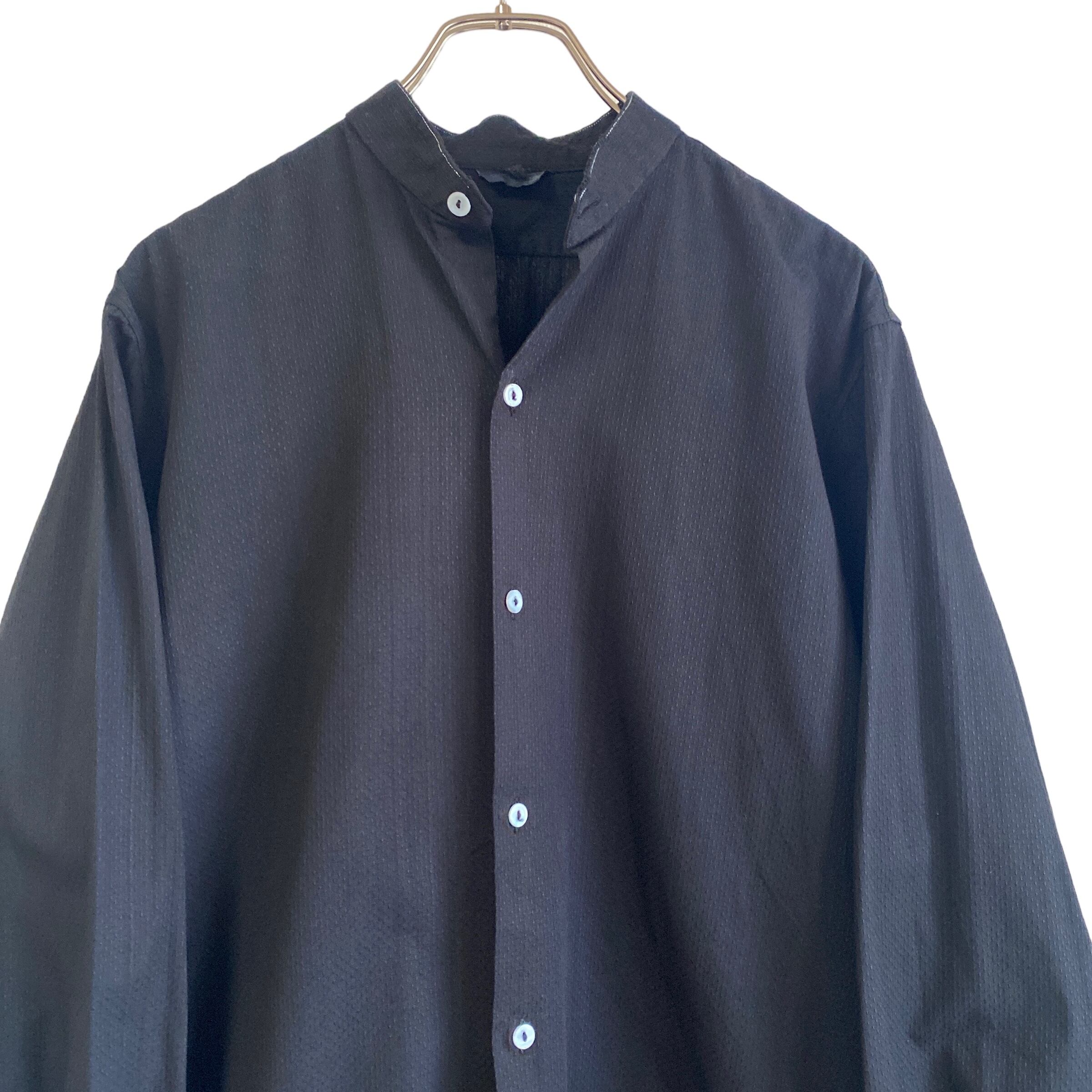 おそらくドレス用のシャツがオーバーダイ(写真だと明るいものもありますが、実際はかなり深い黒染め)&スタンドカラーにリメイクされた一着。