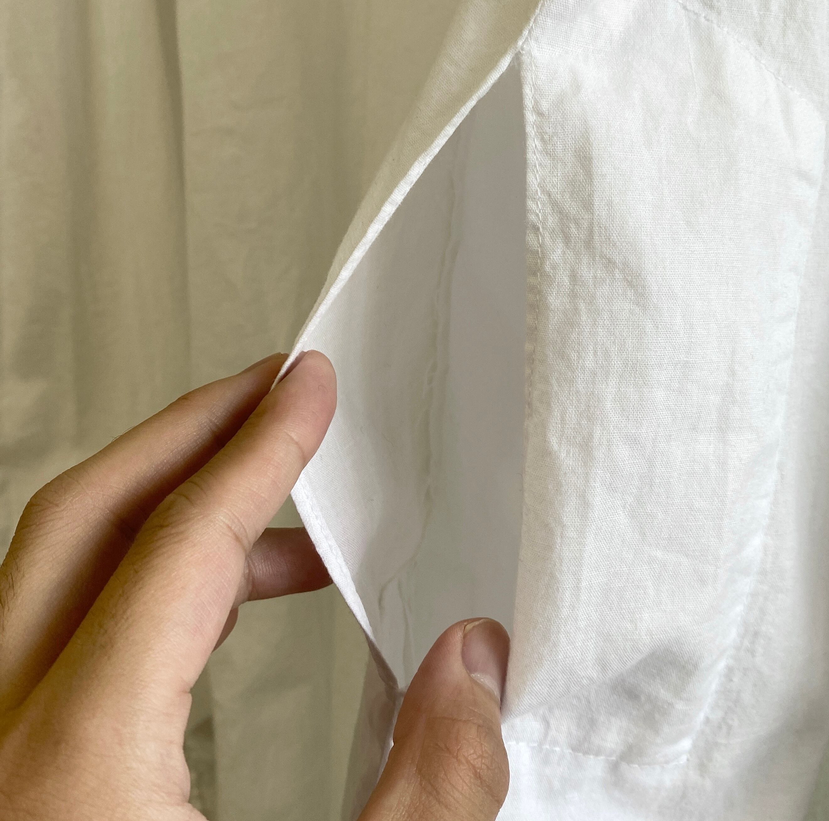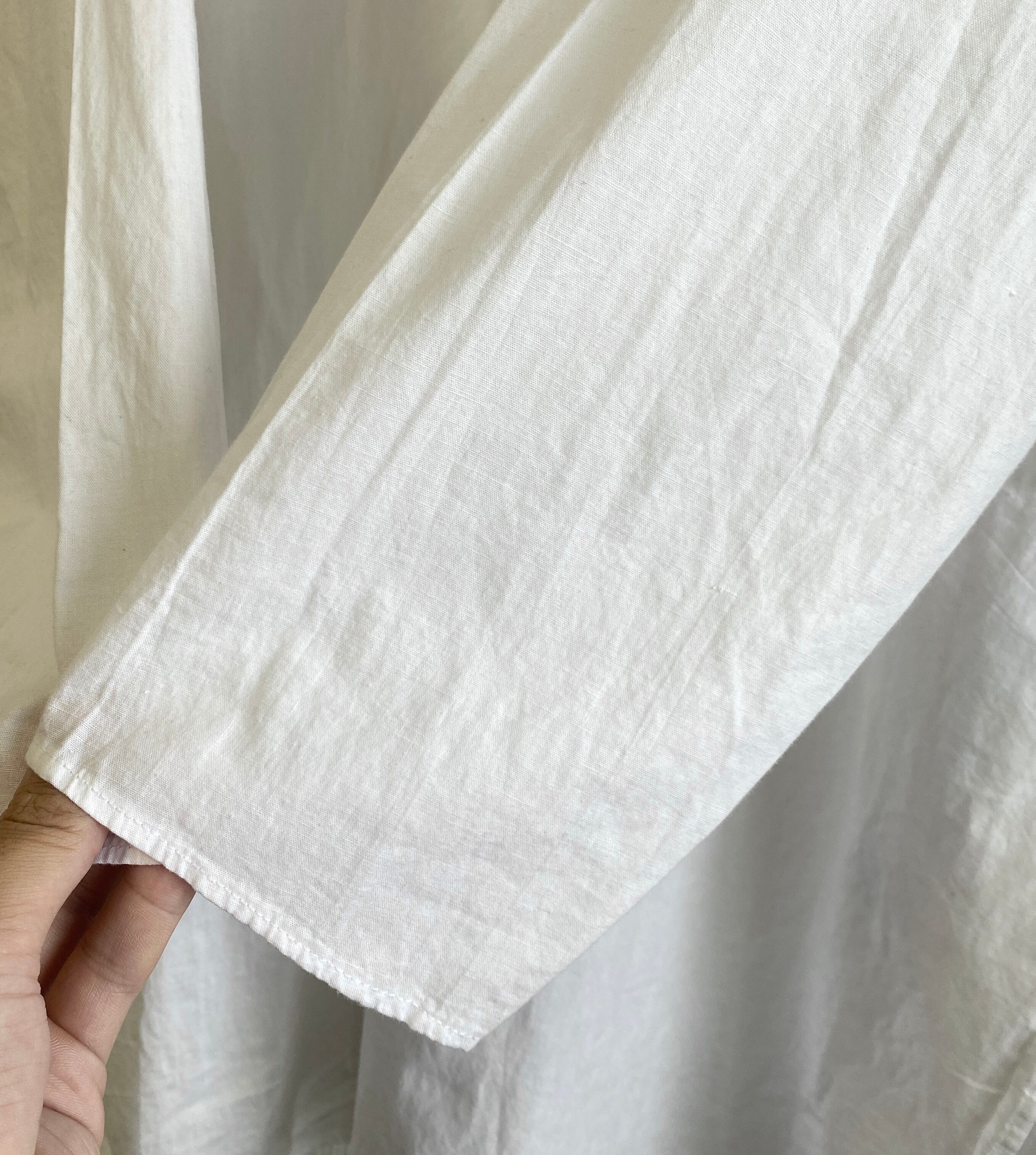 薄手で柔らかなコットン生地に、やや高めのスタンドカラー、全体的に程よいゆとりのあるシルエットが非常に格好良い一着。
