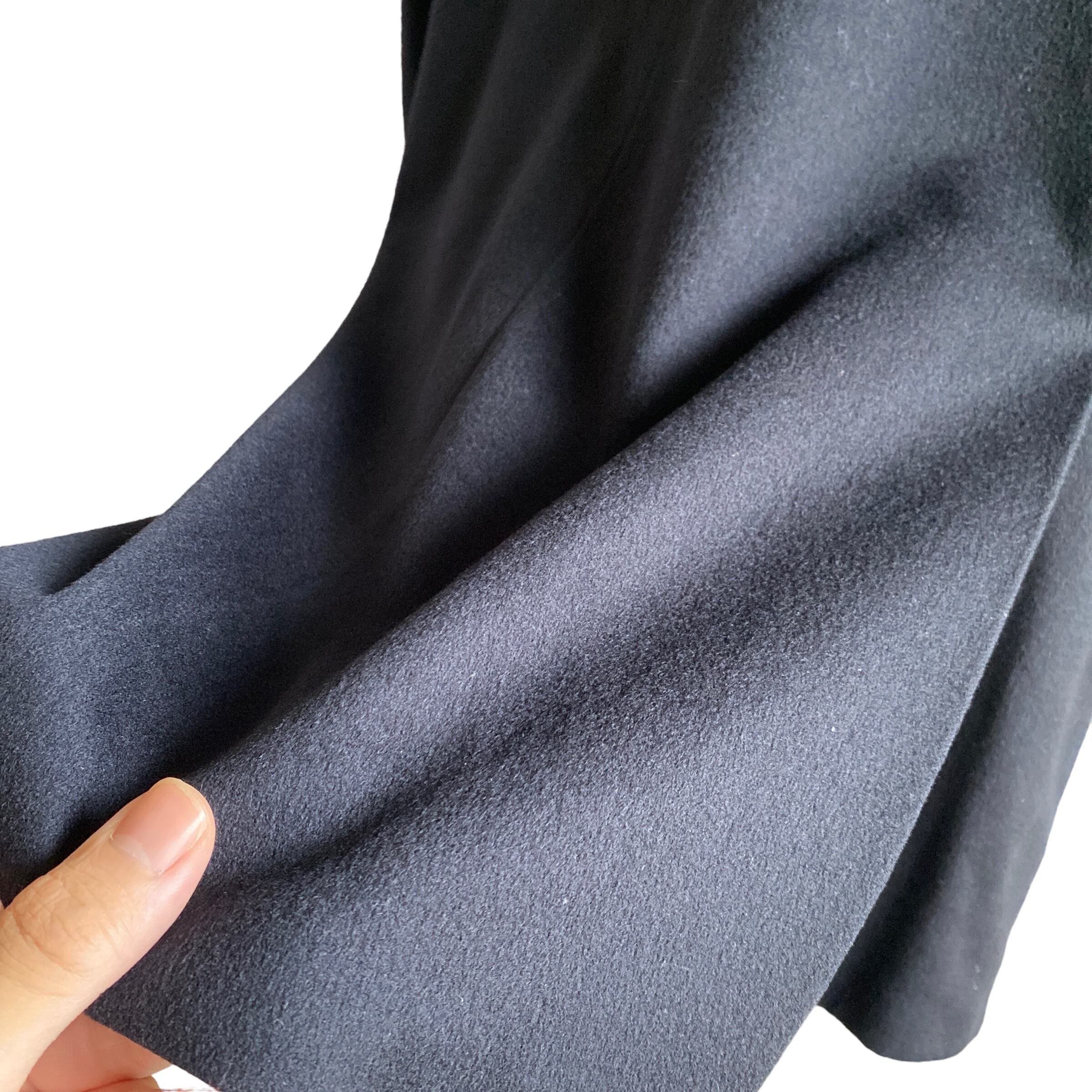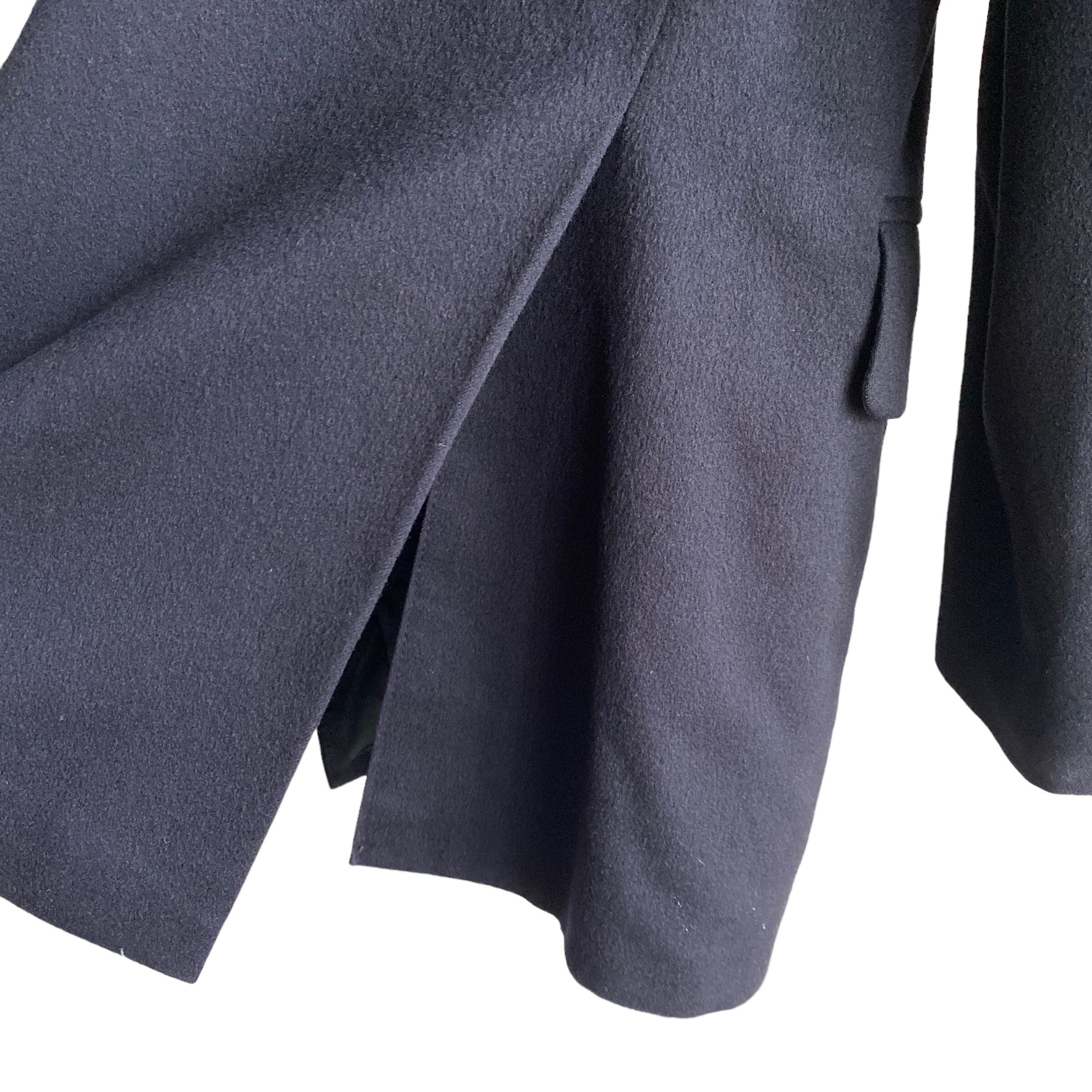 super 100's woolにカシミヤをブレンドしたとんでもなく滑らかで品のあるダークネイビーカラーの生地に、本切羽で前振りの立体的な美しい袖に、サイドベントで程よくシェイプの効いたクラシックなシルエットが非常に格好良い一着。