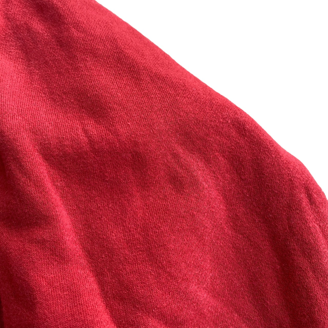 シンプルなデザインですが、ほんの気持ち褪せたような深いレッドの色目がコーディネートによく映えます。