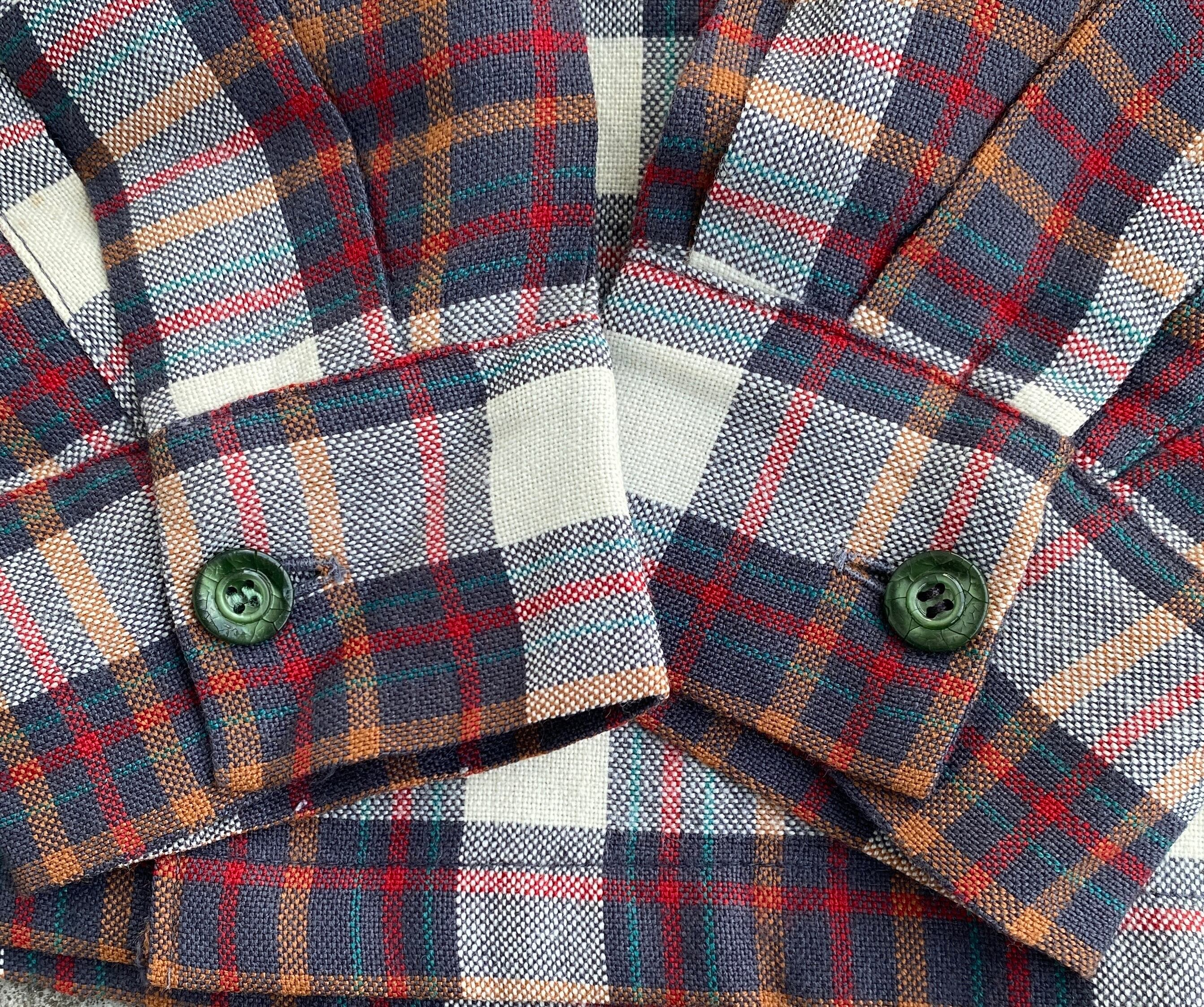 アメリカらしいトラディショナルなチェックパターンに、太めの2plyレーヨンの肉厚でトロッとした生地が素晴らしい一着。