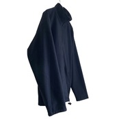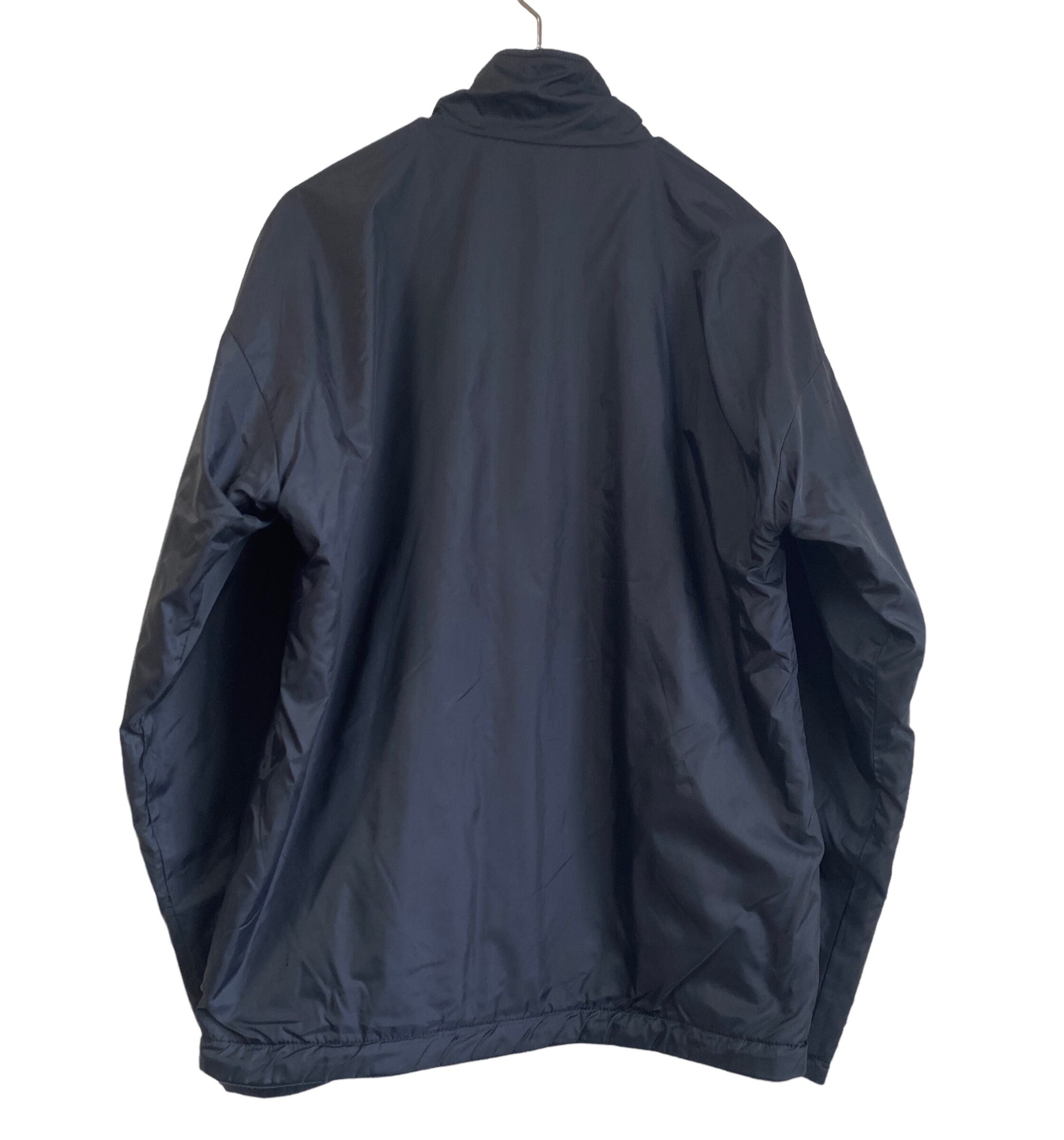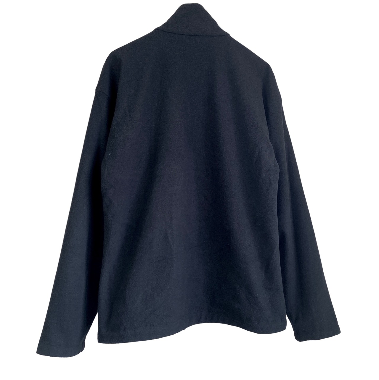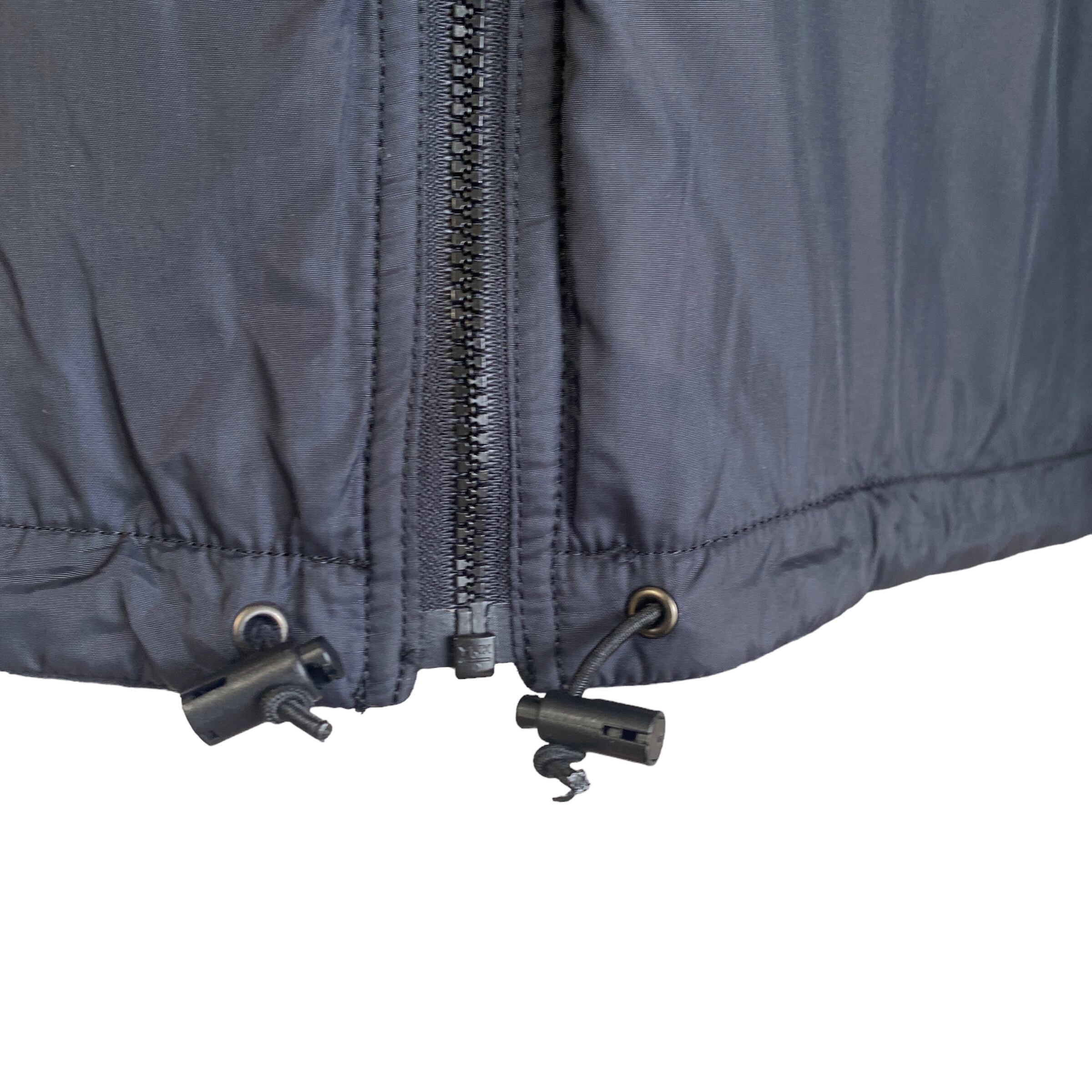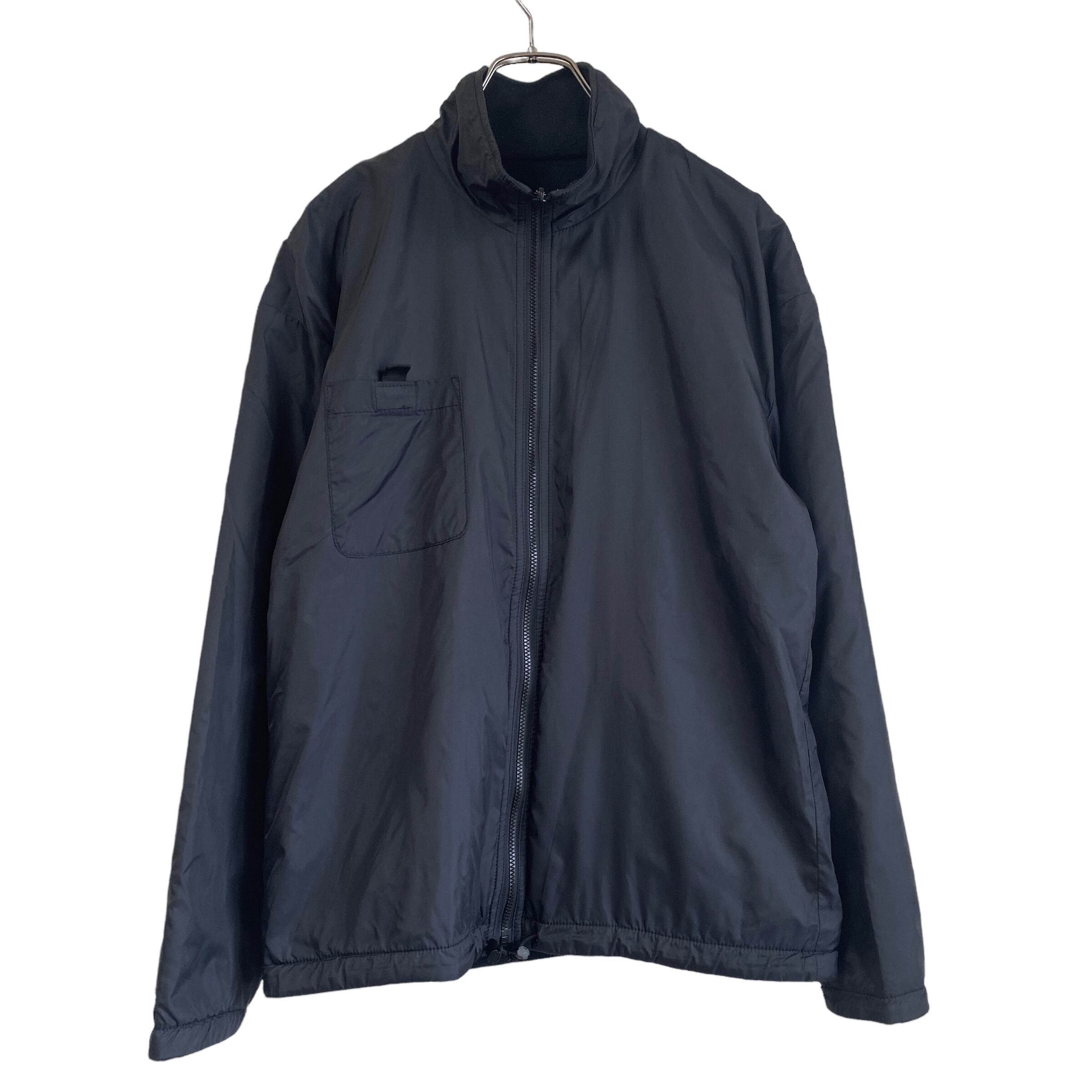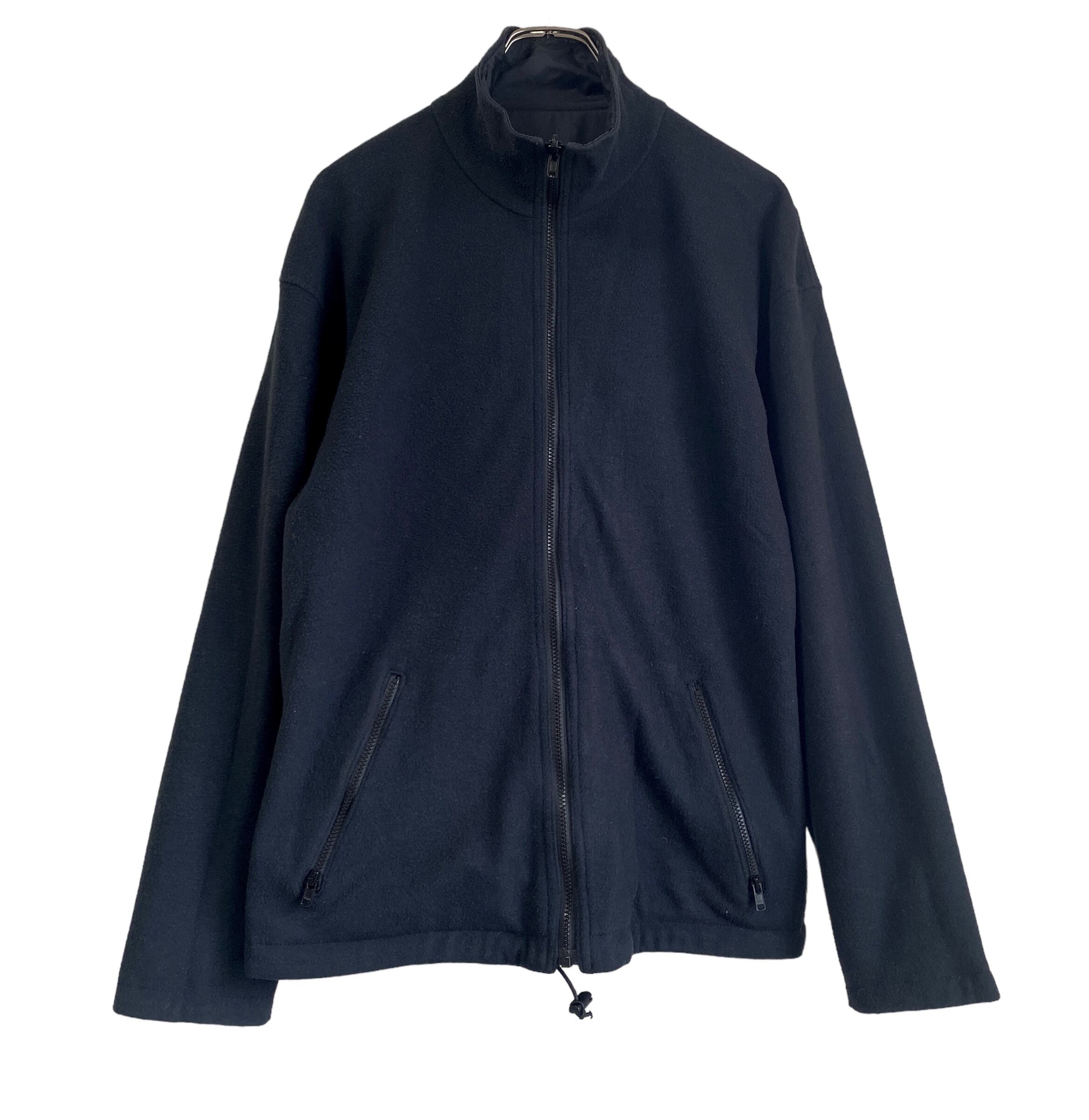 表は光沢感の少ないパリッとしたブラックのナイロン素材に、裏はフリースないしブランケットのような素材の両A面の2度おいしい一着。(ナイロン面にはサイドポケットがないため、こちらが裏かもしれません)