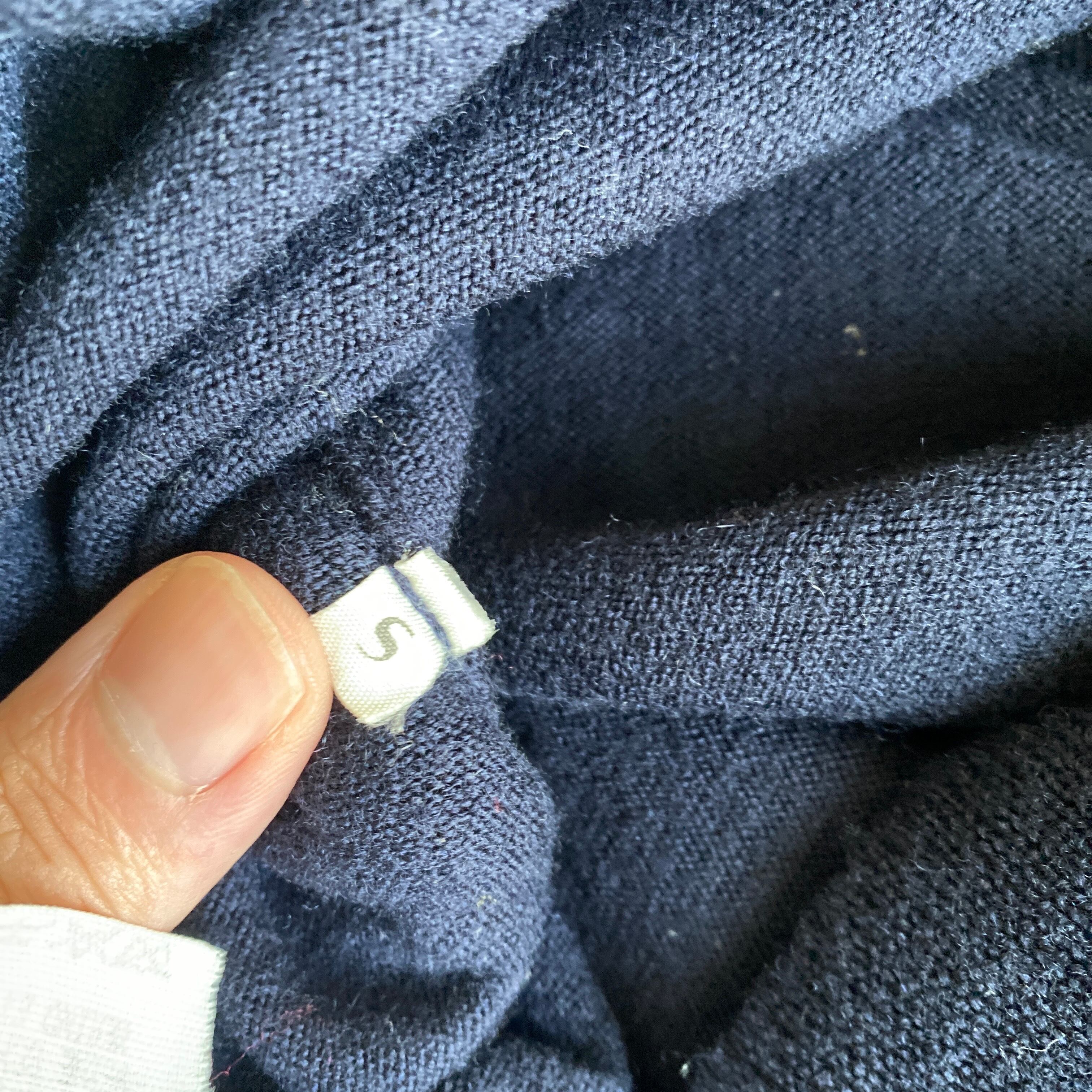 シンプルなお品ですが、ダークネイビーの上品な色目や、サドルショルダー(ハンマースリーブとも呼ばれていたような、、)の凹凸感のないミニマルな曲線が素晴らしいです。