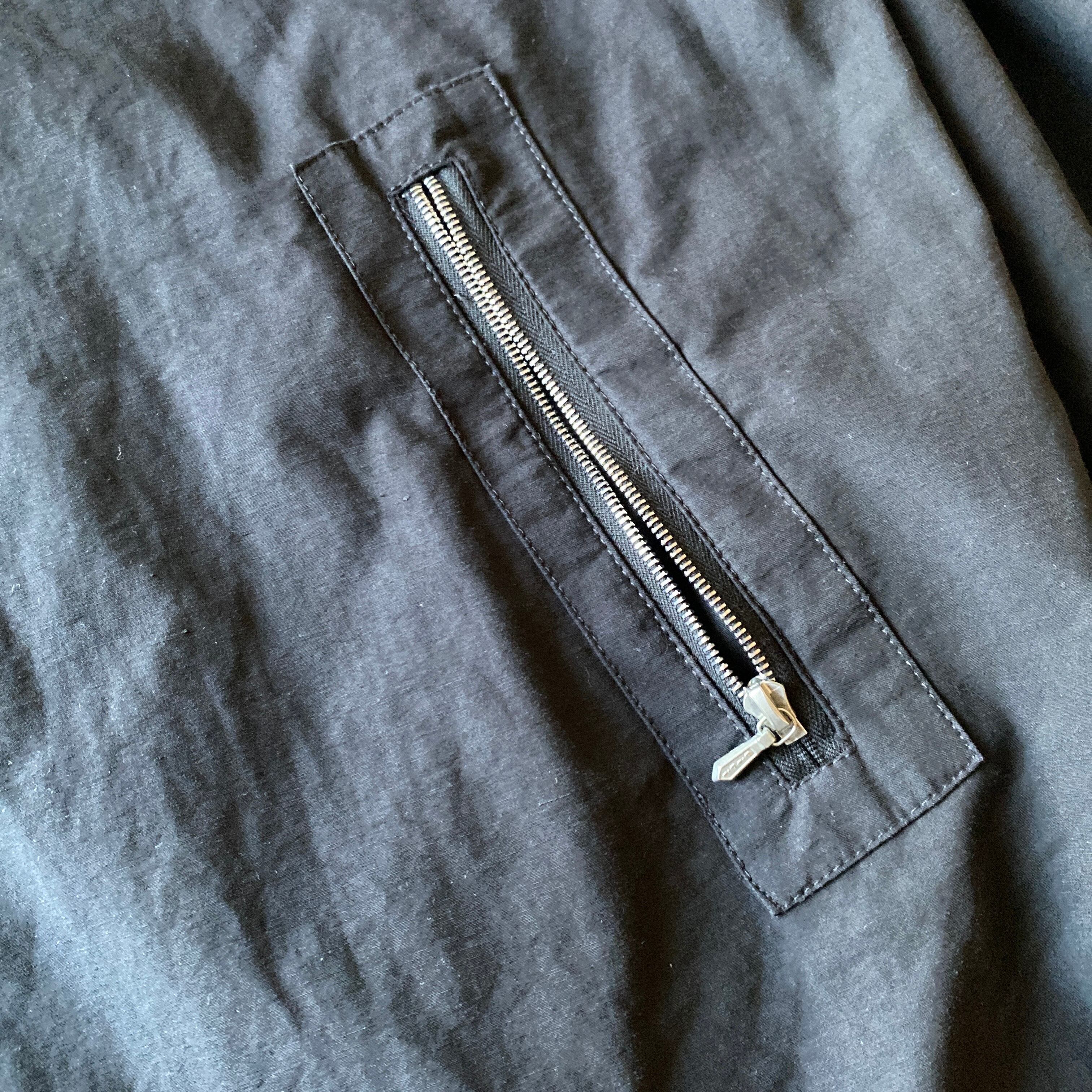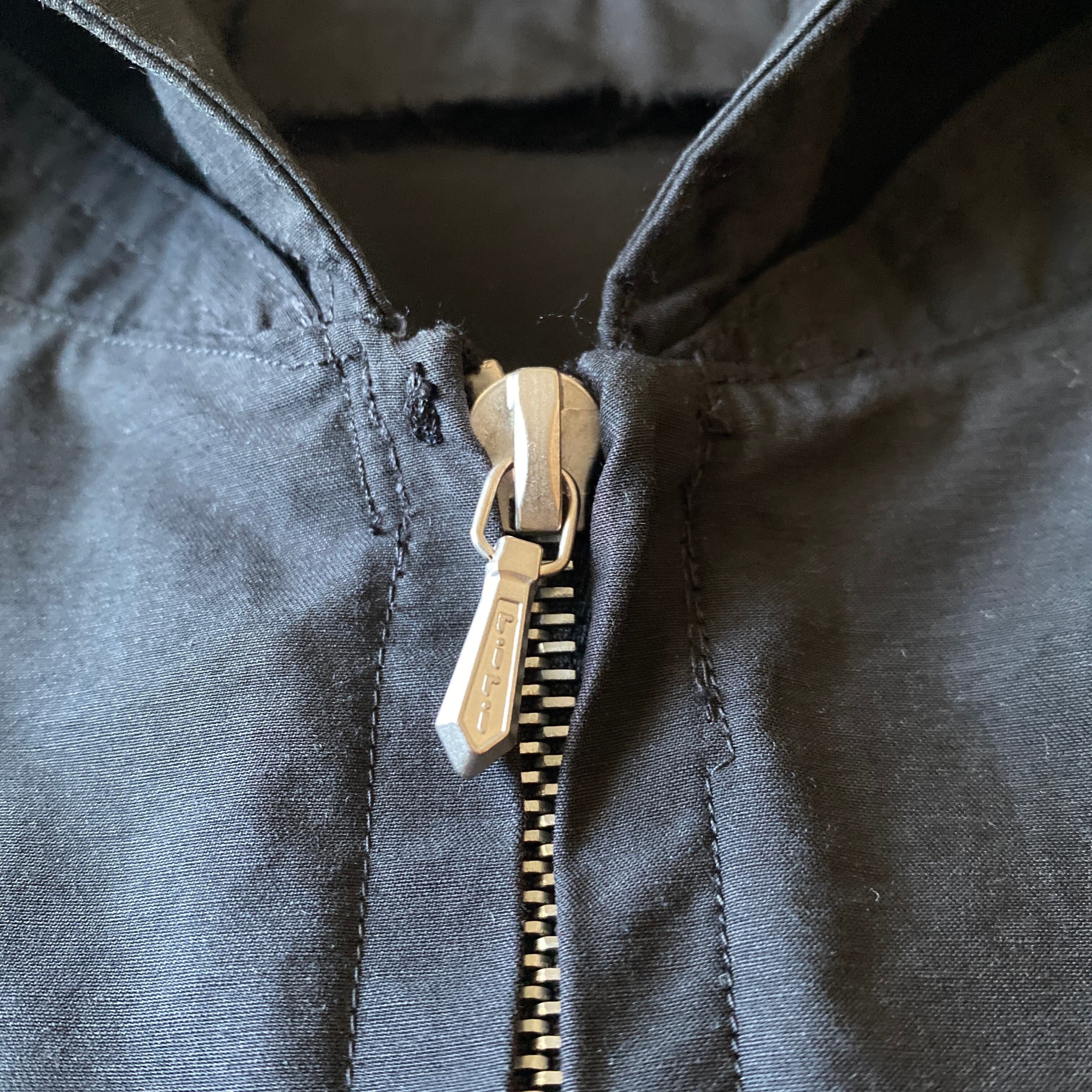 ユーロのマイナーレーベルかデザイナーズなのか詳細不明ですが、ブラックカラーでコットンナイロンのハリ感のある生地に、riri社のアルミジッパー搭載で抜群に雰囲気の良い一着。