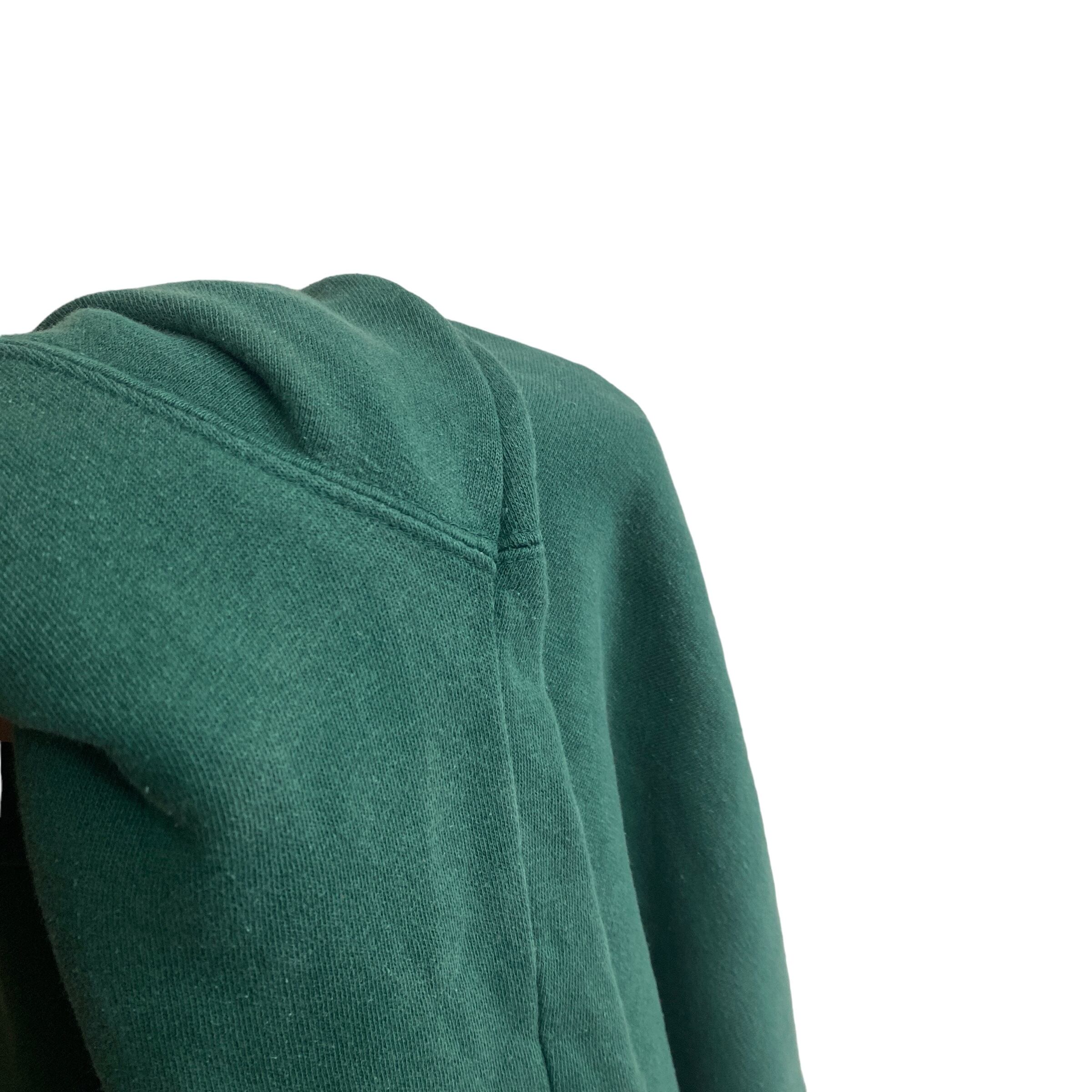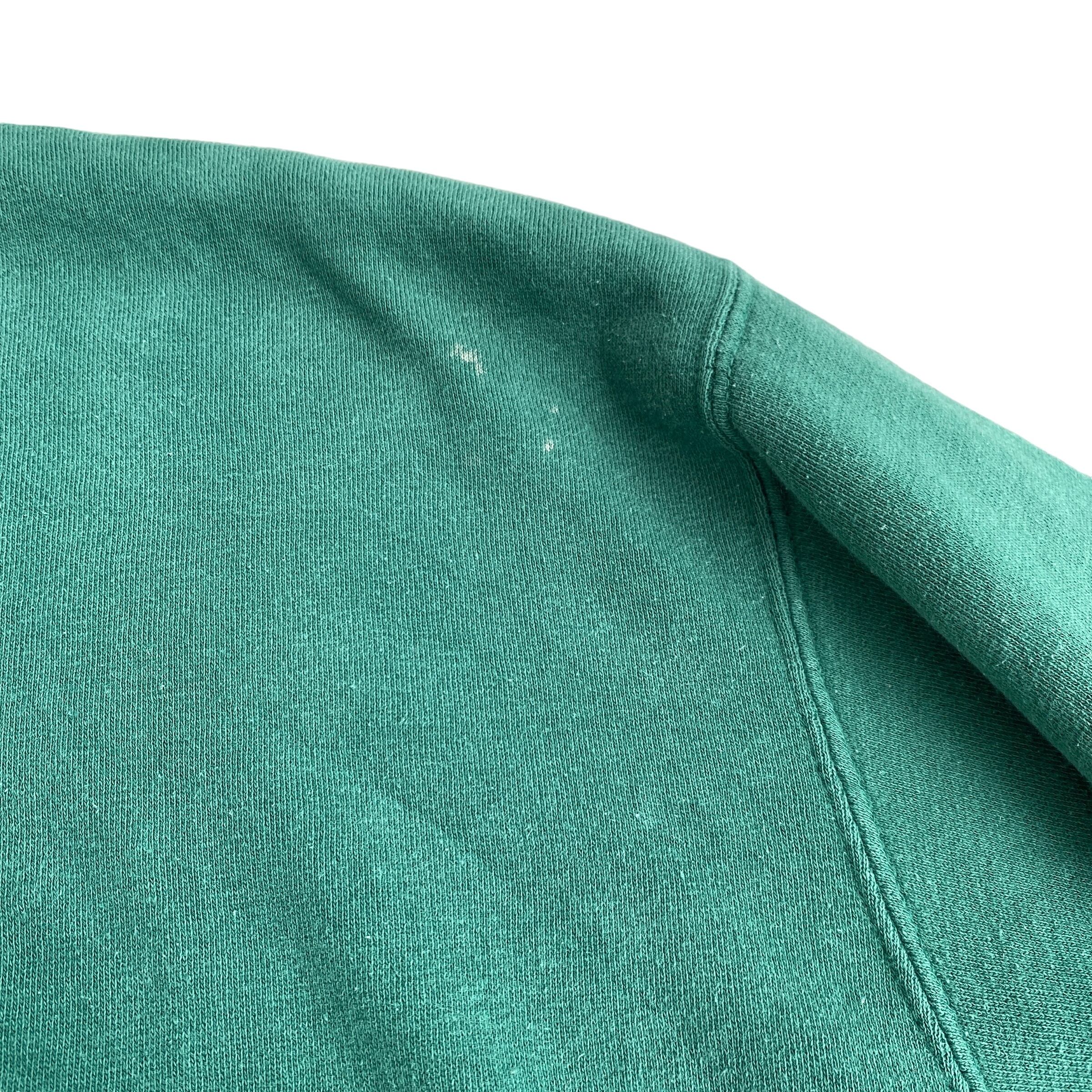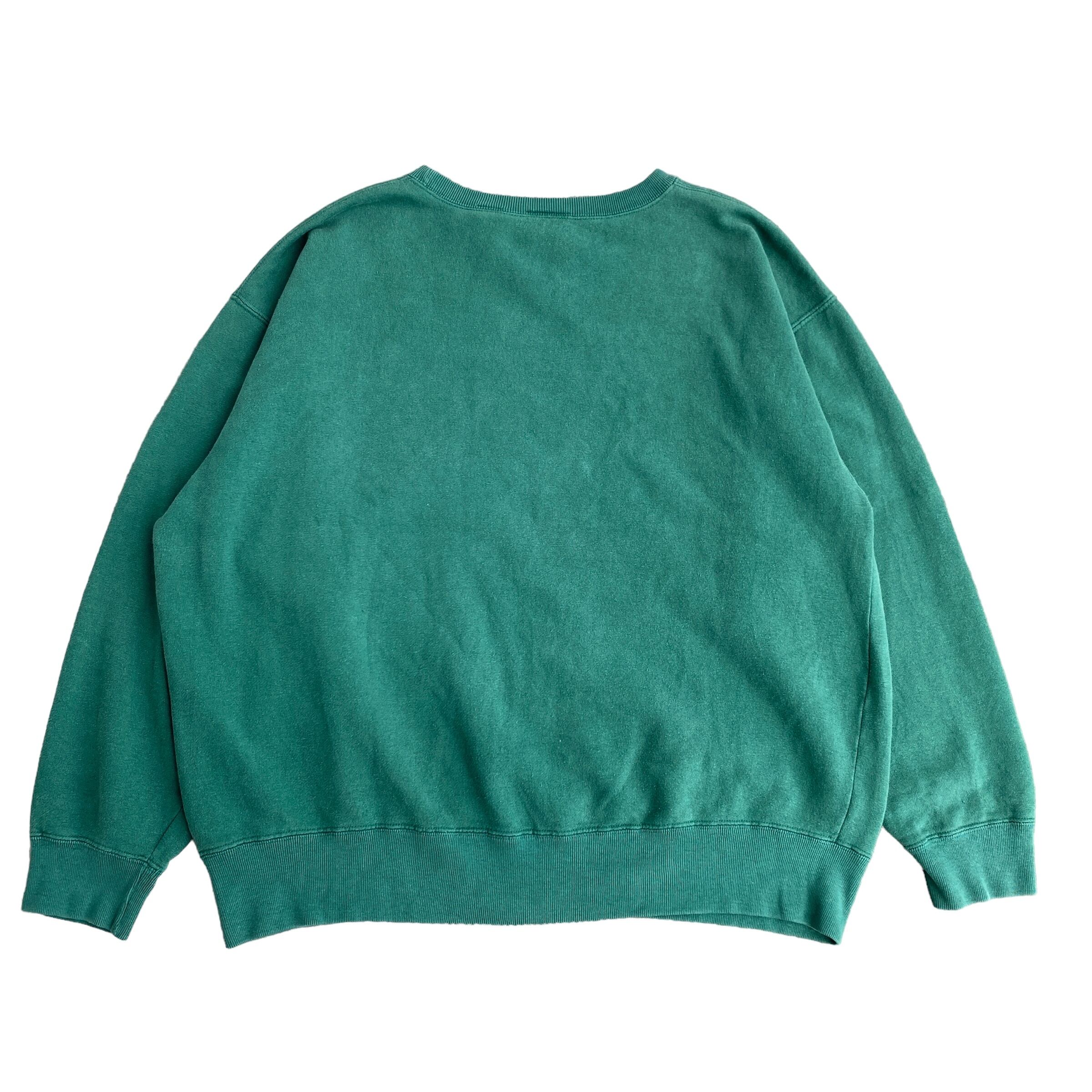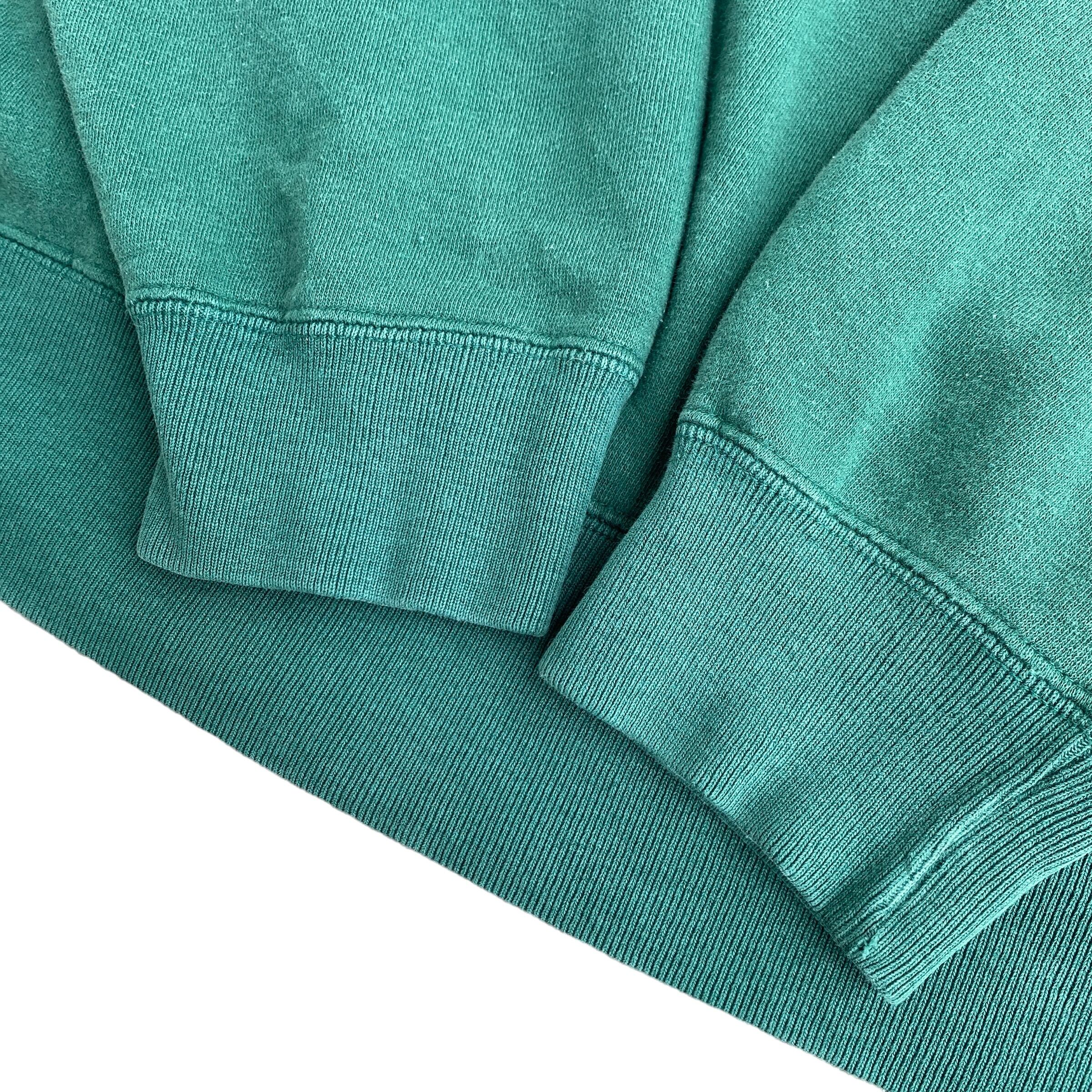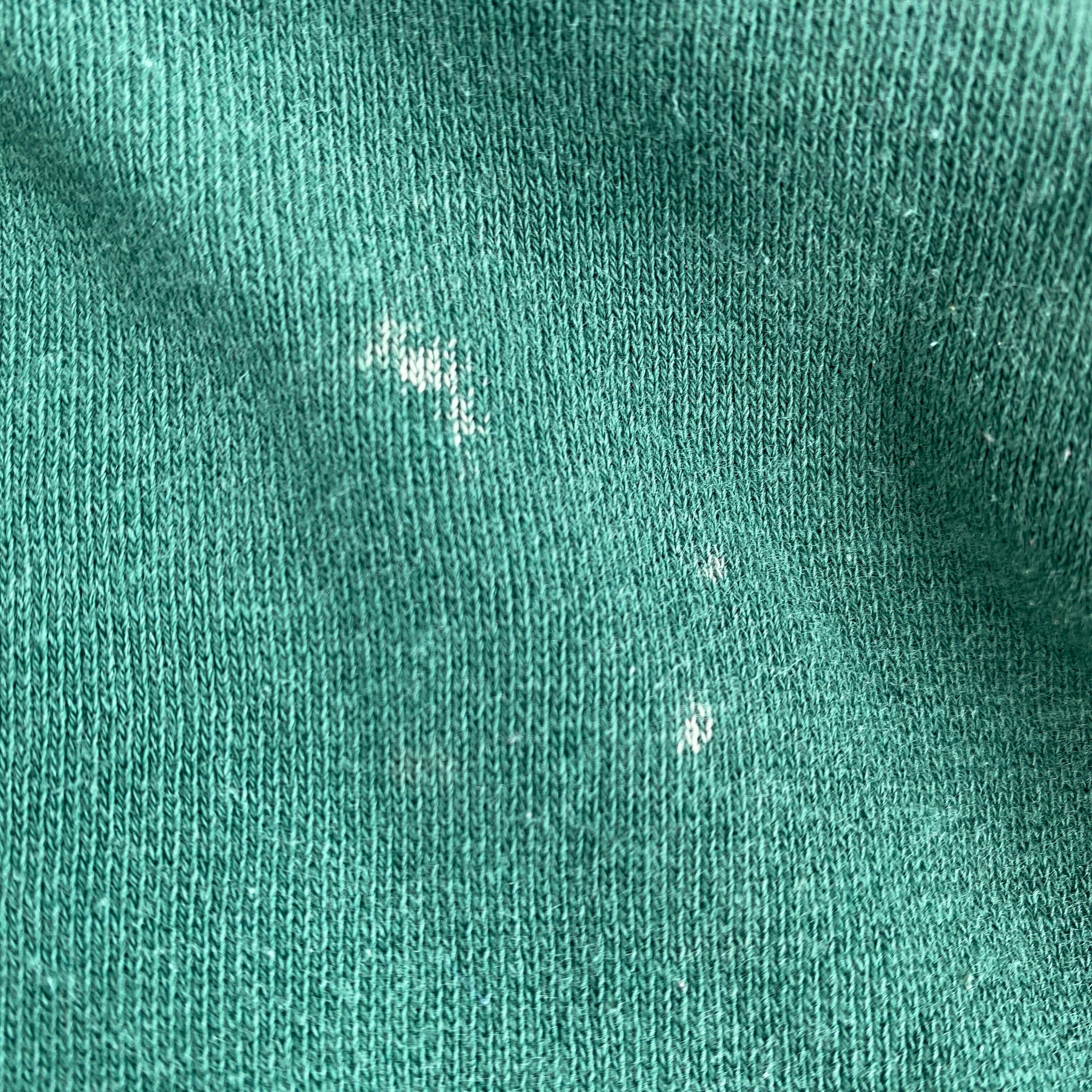コットン85ポリエステル15の程よく肉厚ながら落ち感のある柔らかい素材感に、褪せたグリーンカラー(画像8参照)ゆったりとしたシルエットが最高ですね、特に言うことのない名作です。