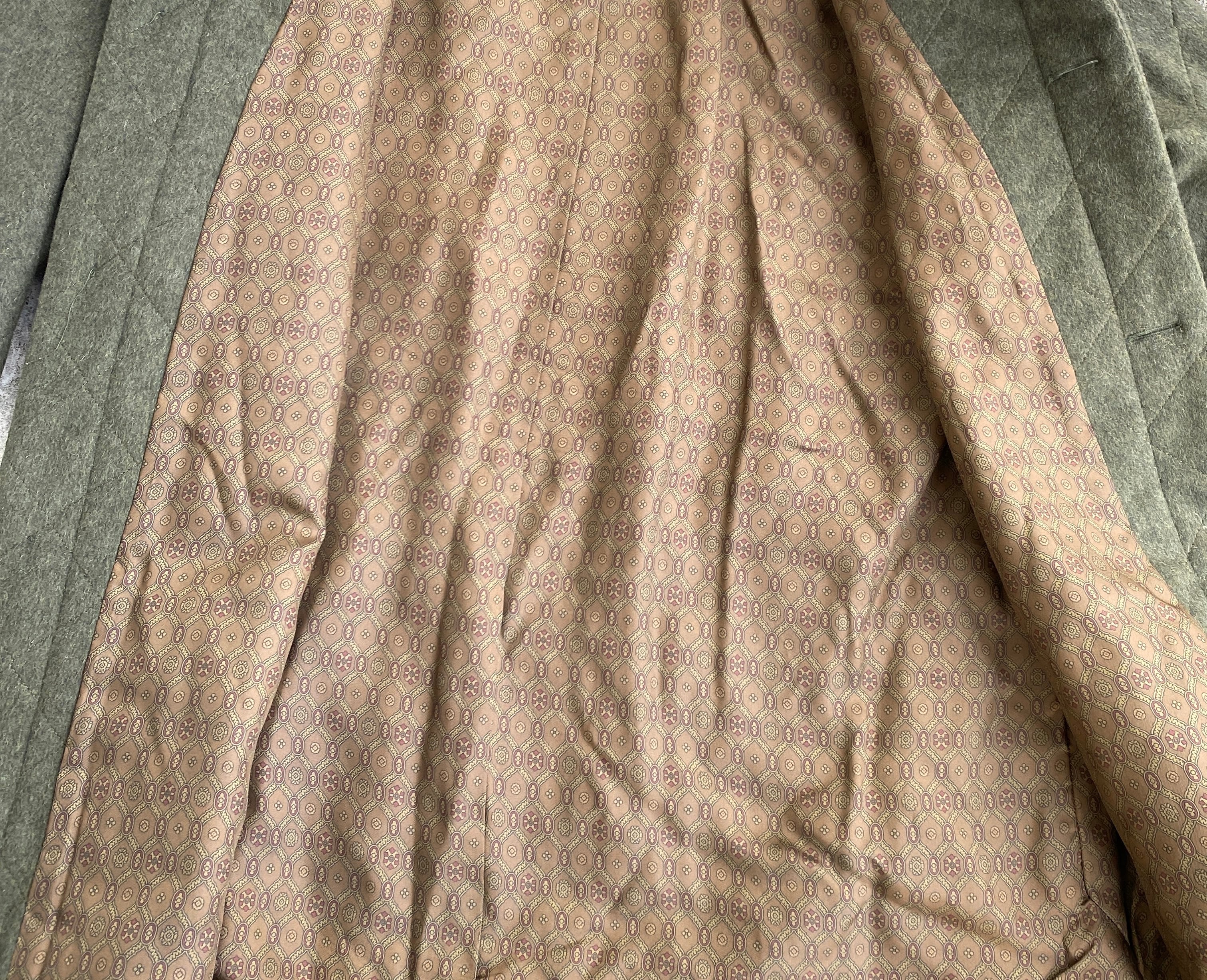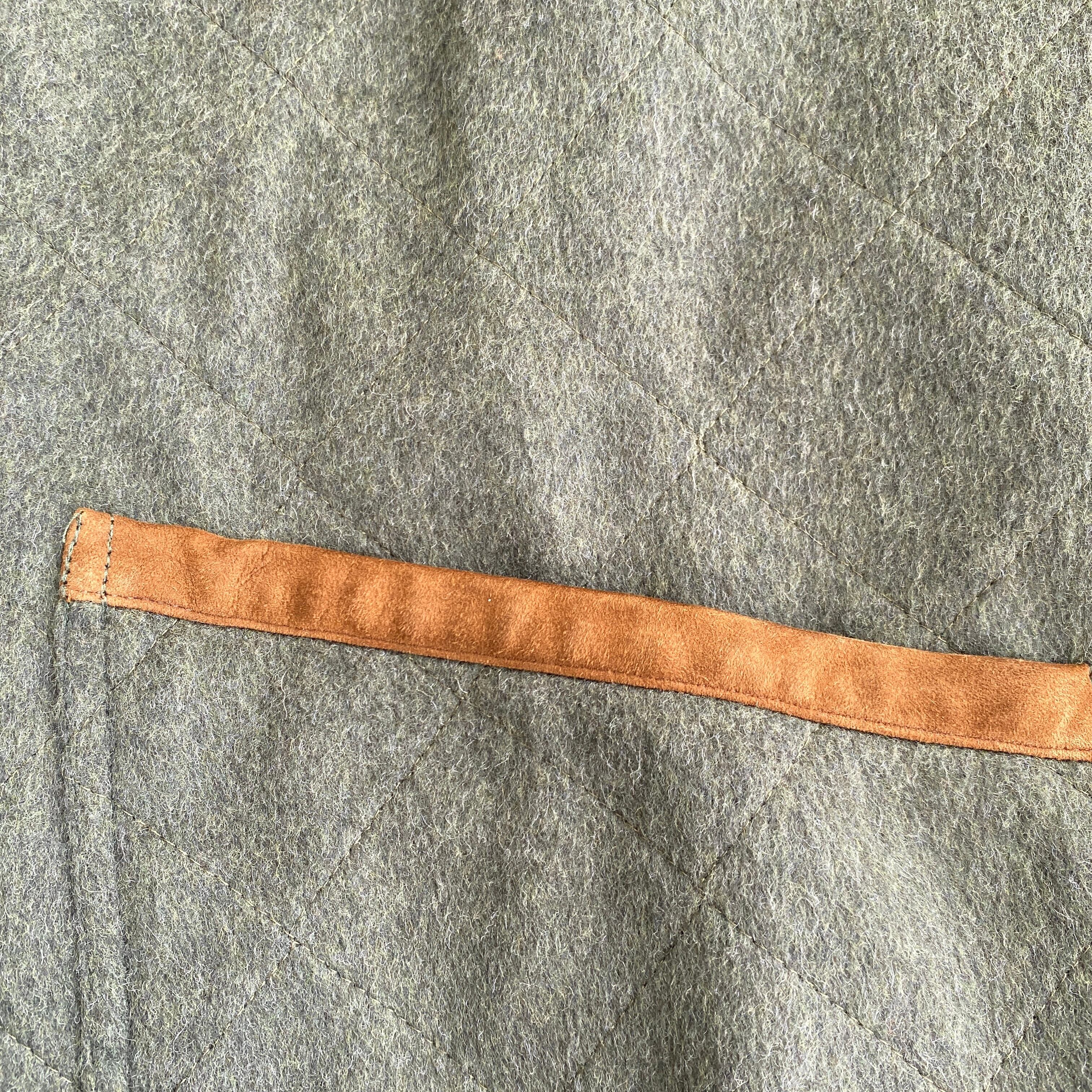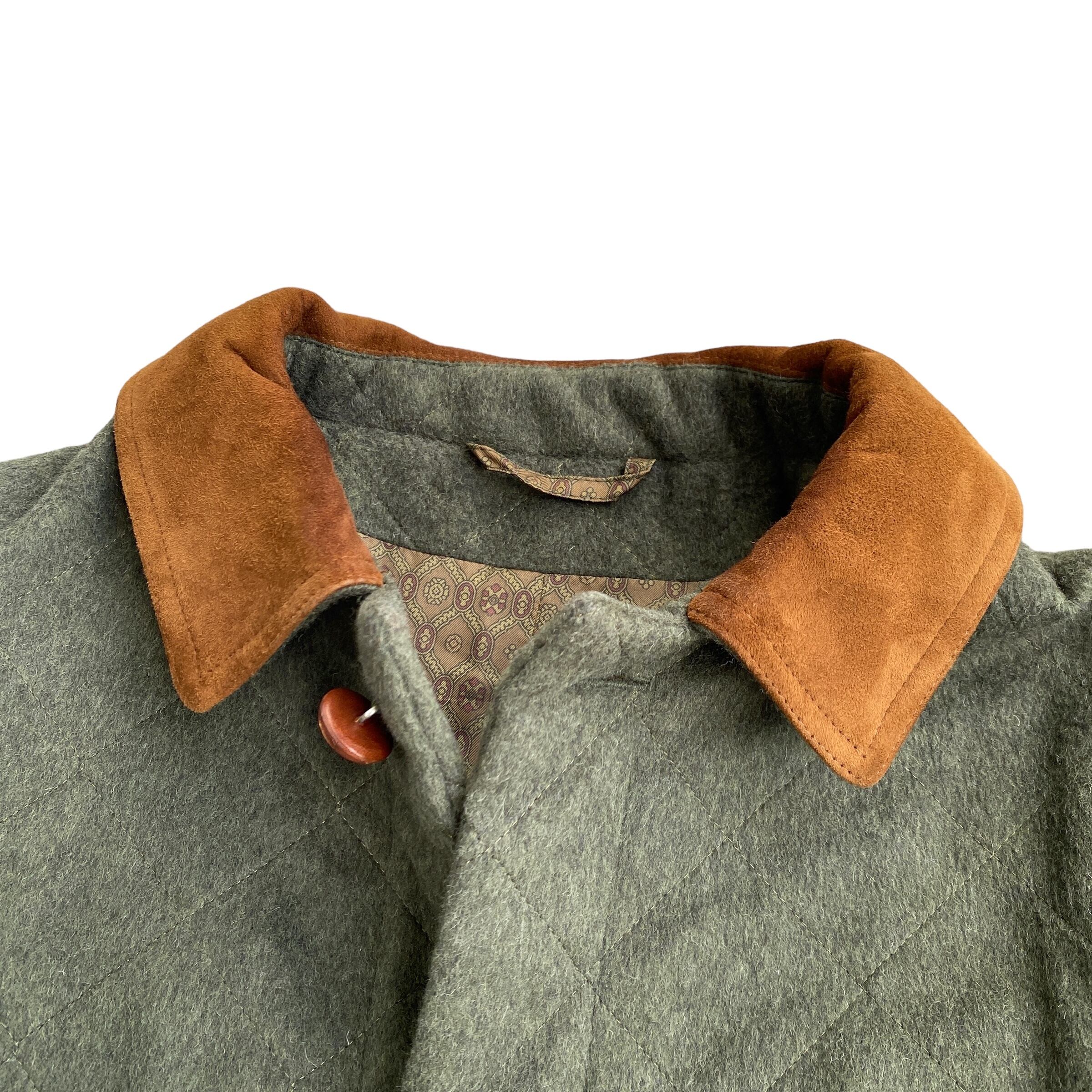 記載がないので認可されたような物では無さそうですが、ウール×アルパカの所謂ローデンクロスのような生地感で中厚の柔らかい生地を使用し、中綿の入らないキルティングジャケット風に仕立てられた一着。