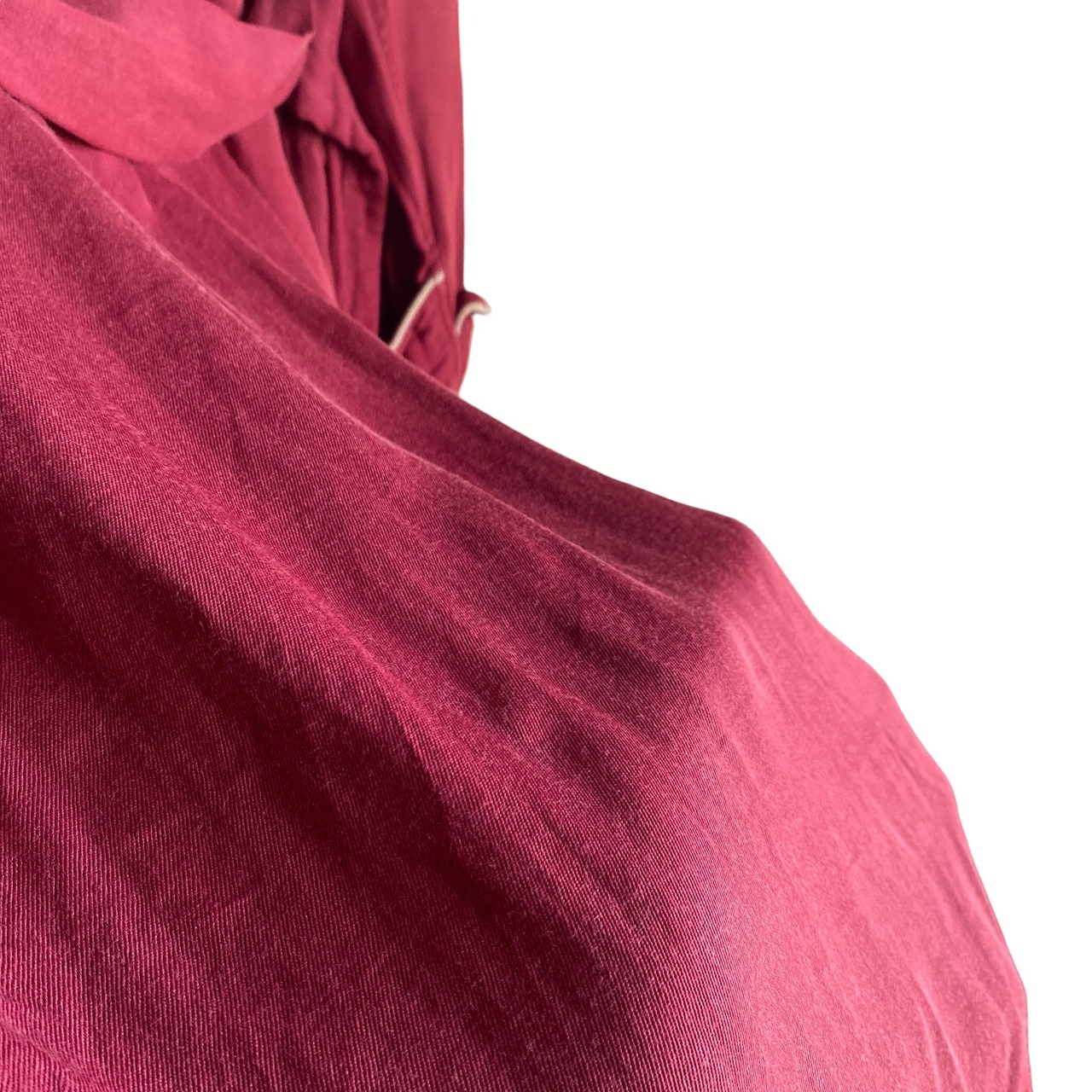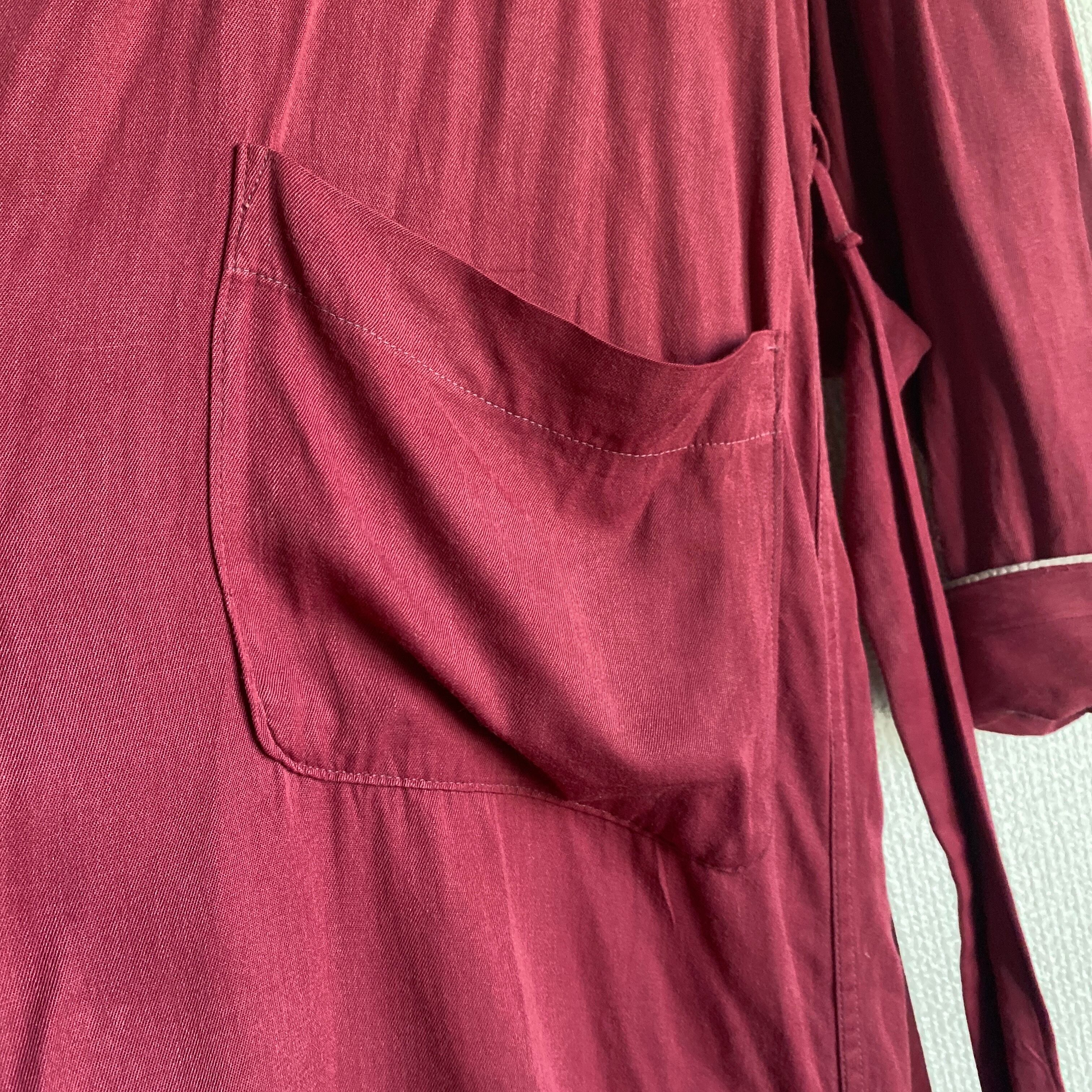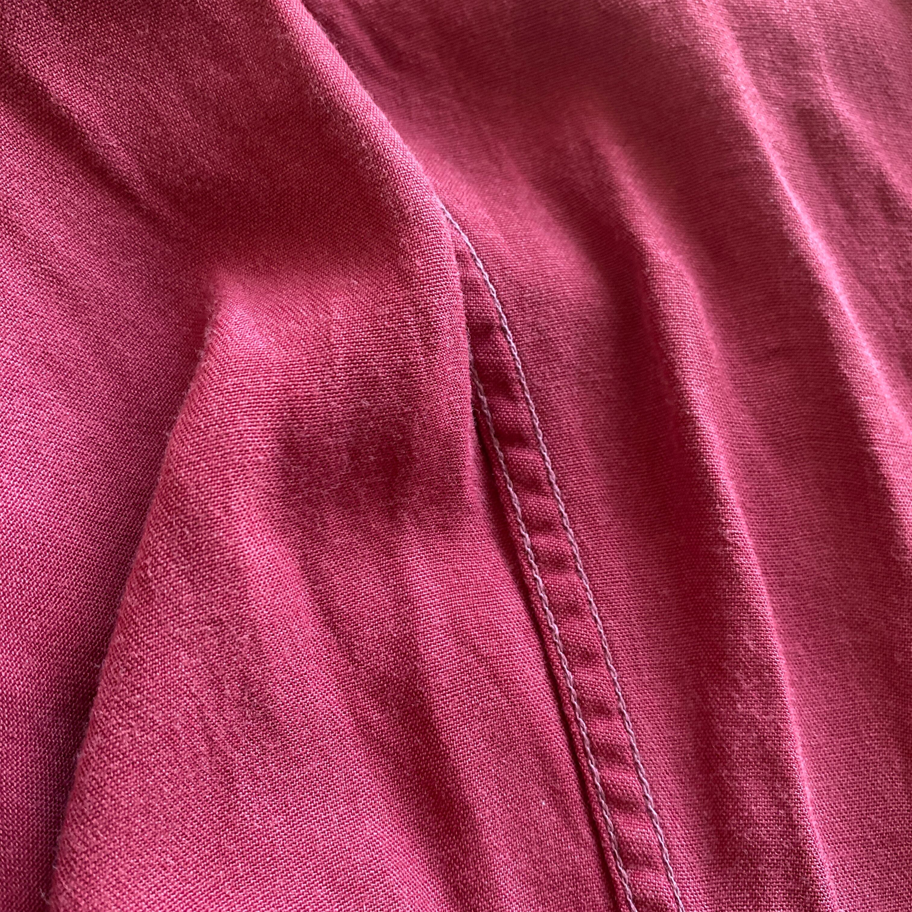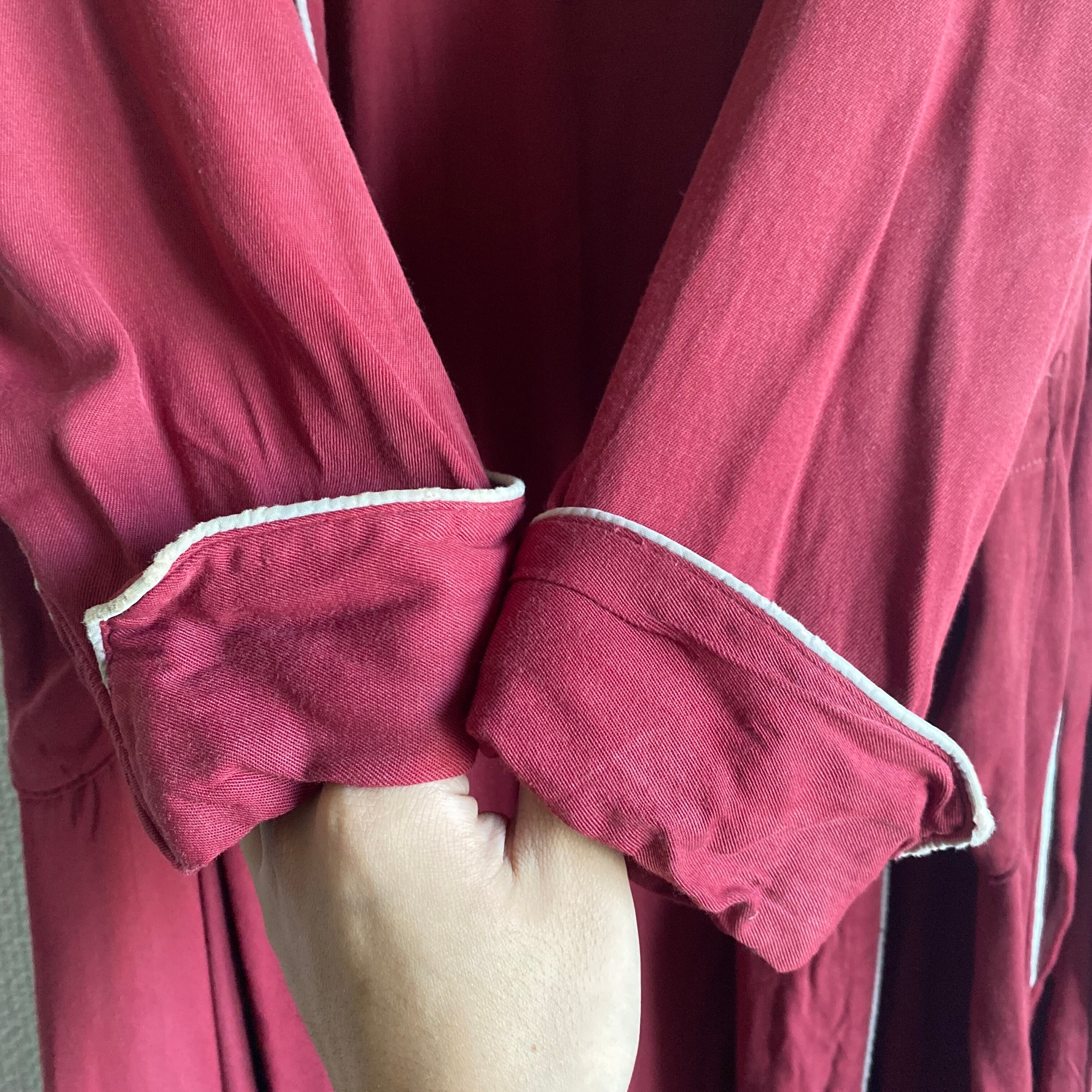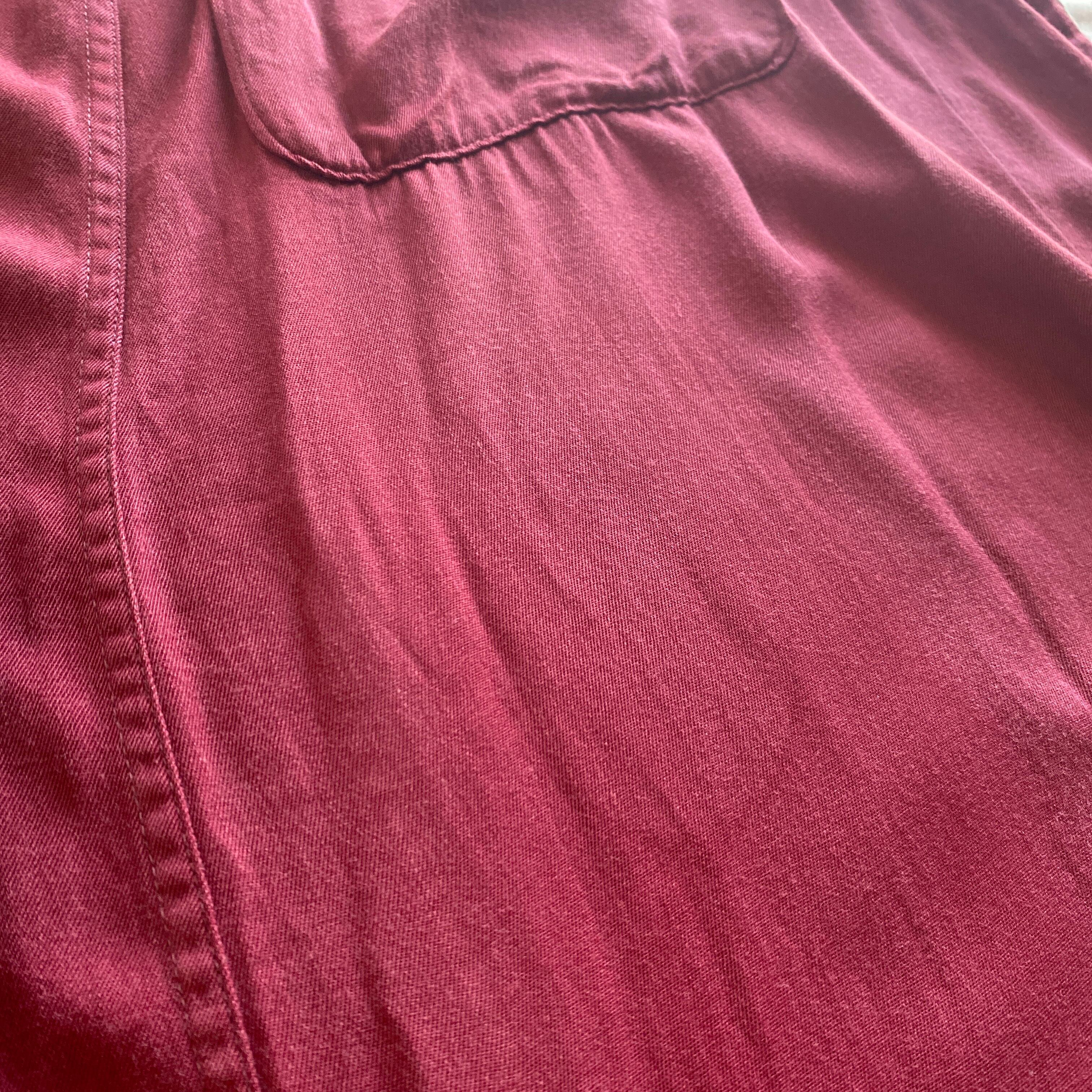 経年で枯れたバーガンディレッドの色目、レーヨギャバジンのトロっとした生地感が最高の一着。