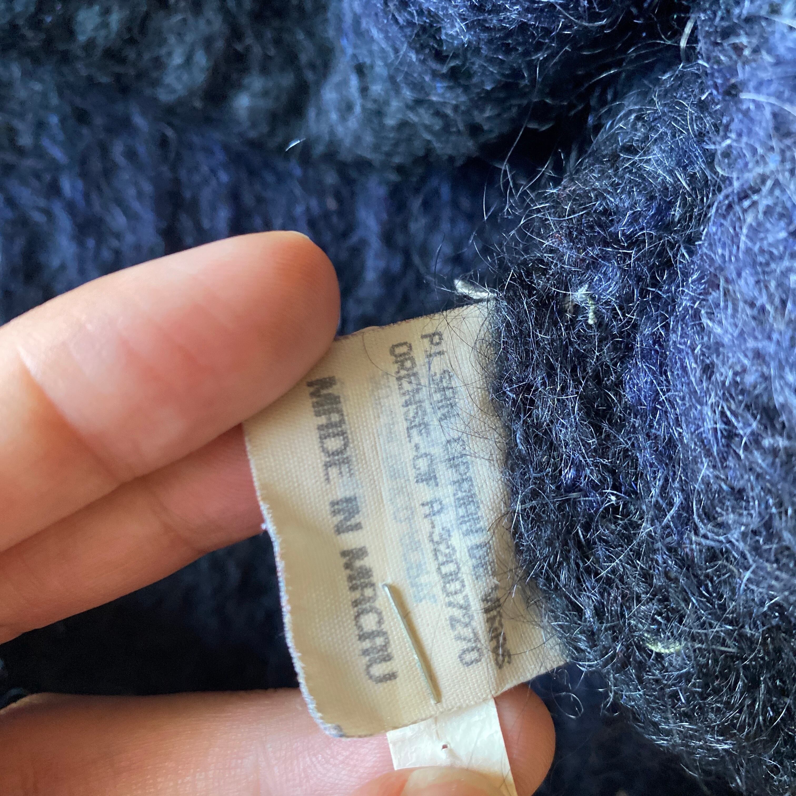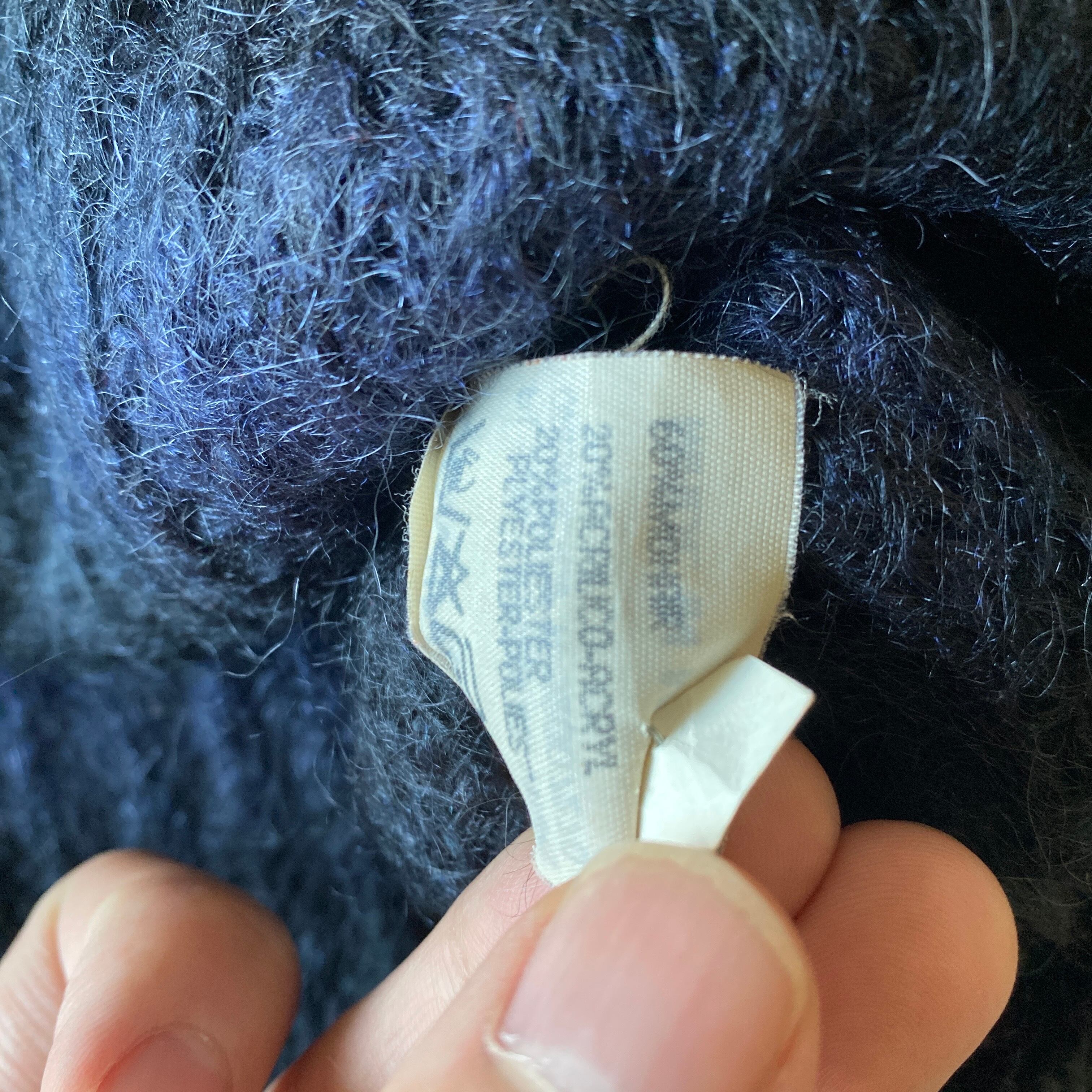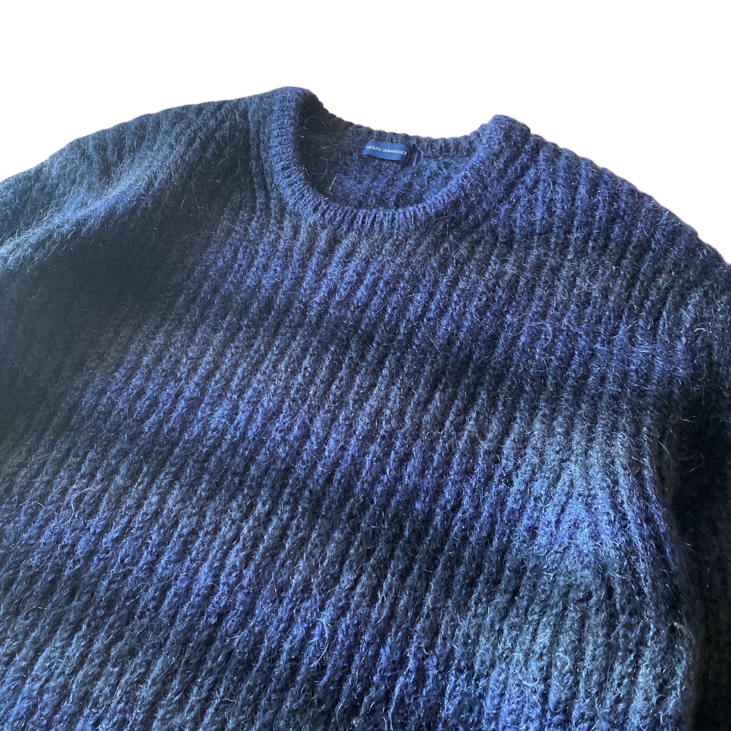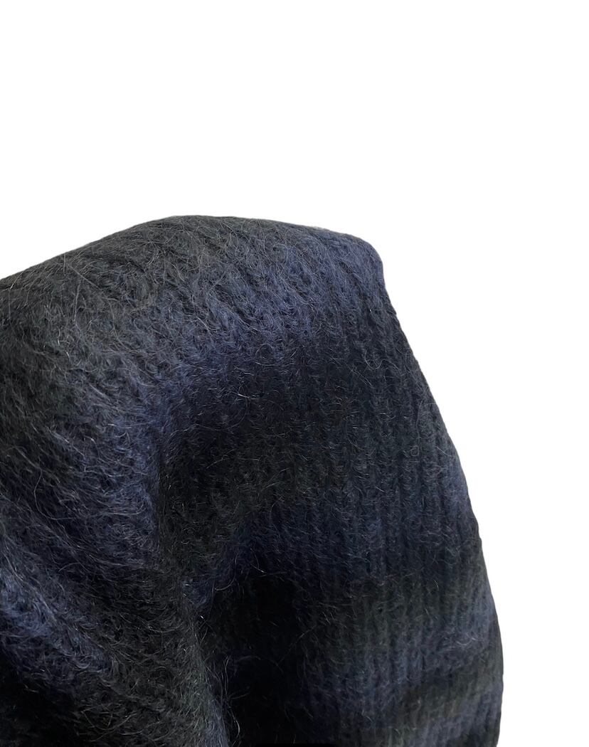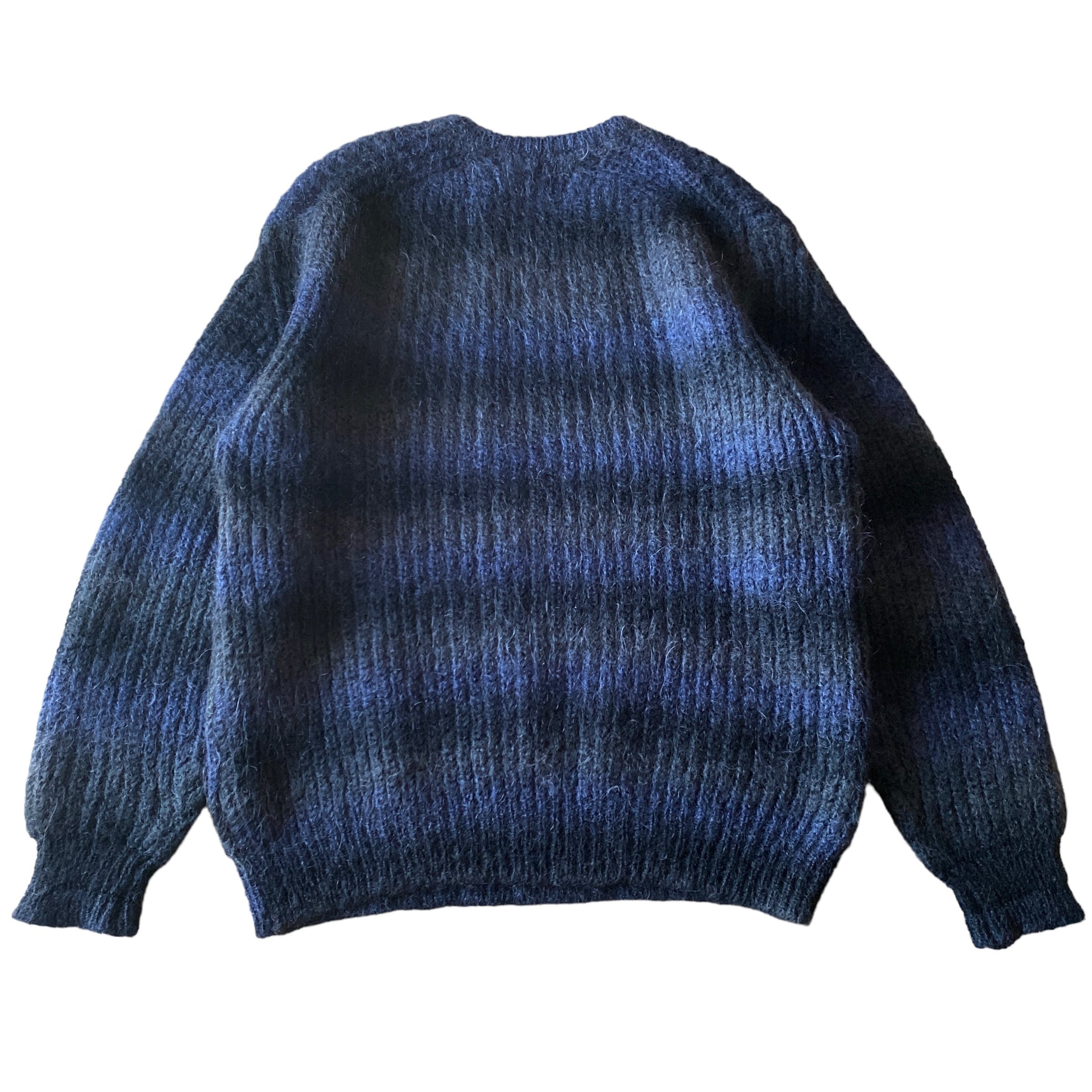 モヘアが60%使用された毛足の長いラグジュアリーなニットに、ブラックからダークネイビーパープル(画像4が一番近いです。)へのグラデーションが大変美しい一着。