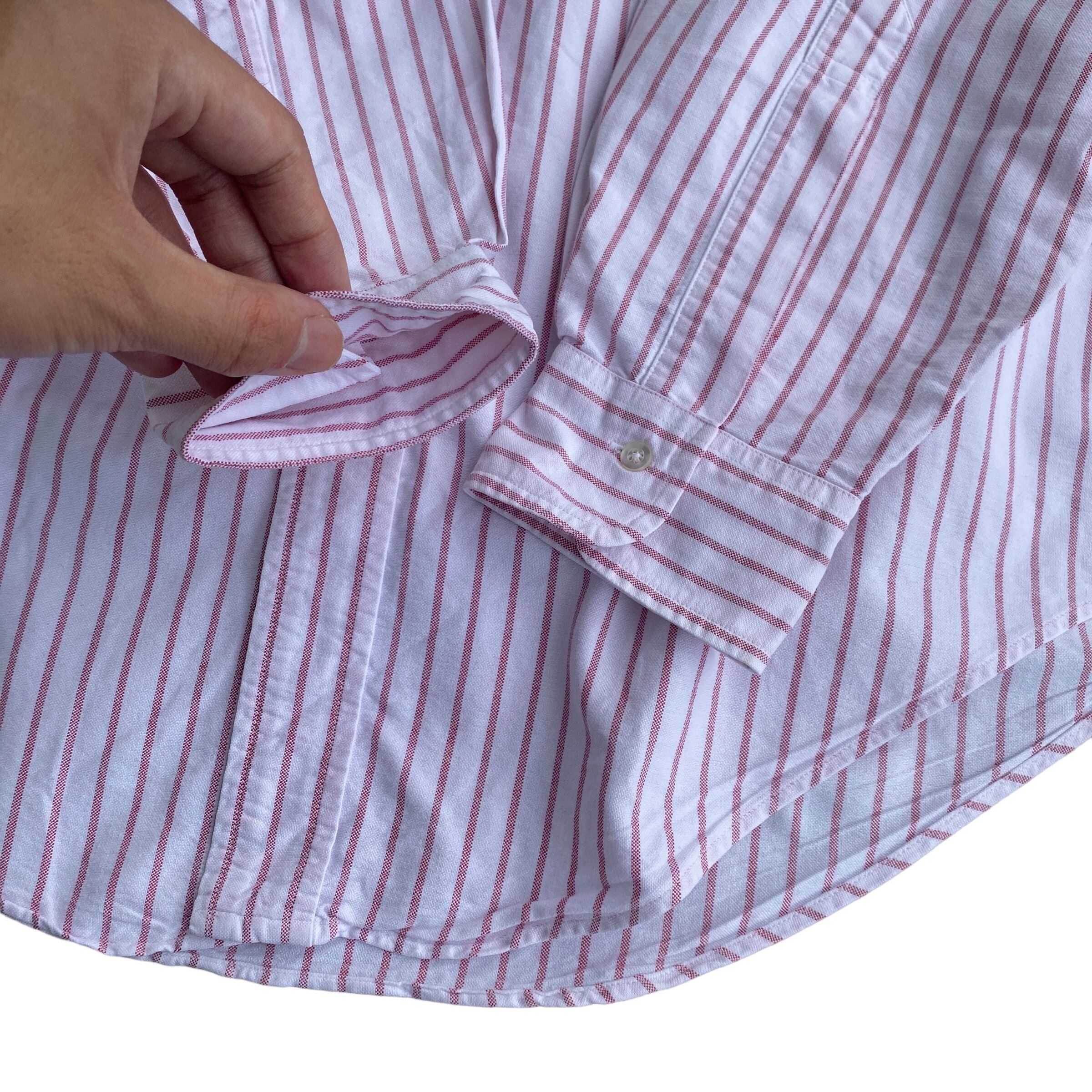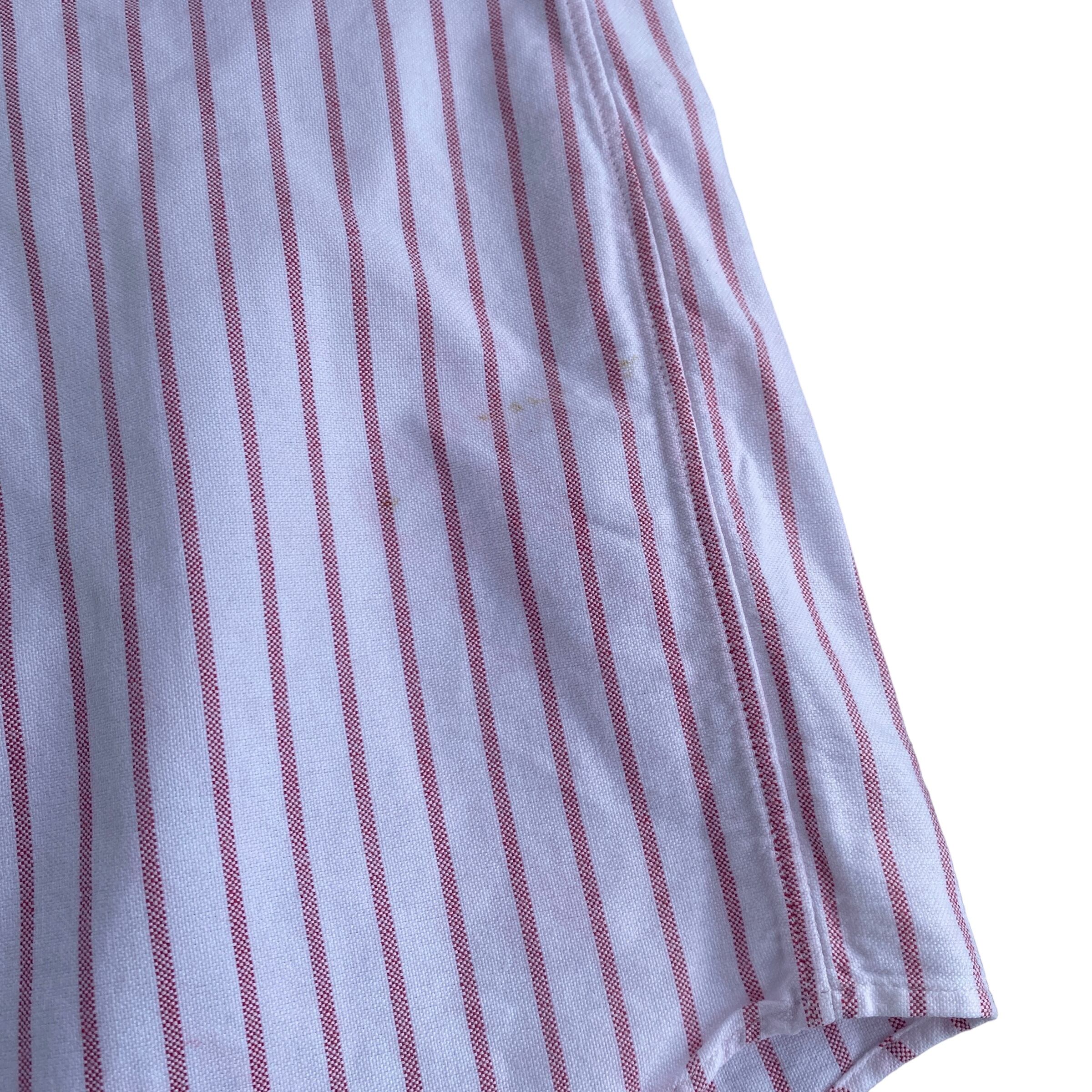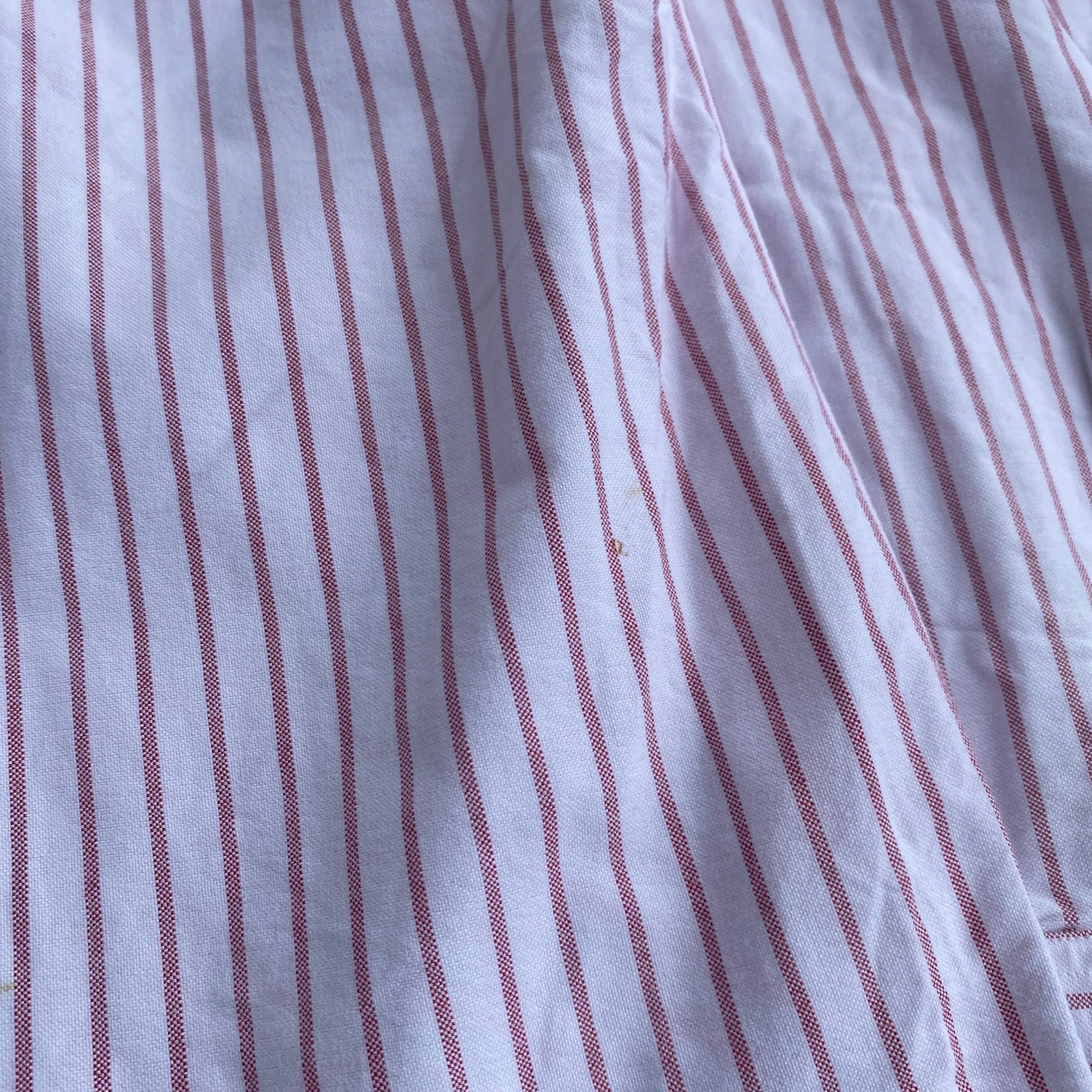 コットン100の上質なオックスフォード生地に、枯れたようなレッドとホワイトの美しいストライプ(写真2が近いです)、この年代特有の襟型、深めにラウンドカットされたシルエットが非常に格好良い一着。