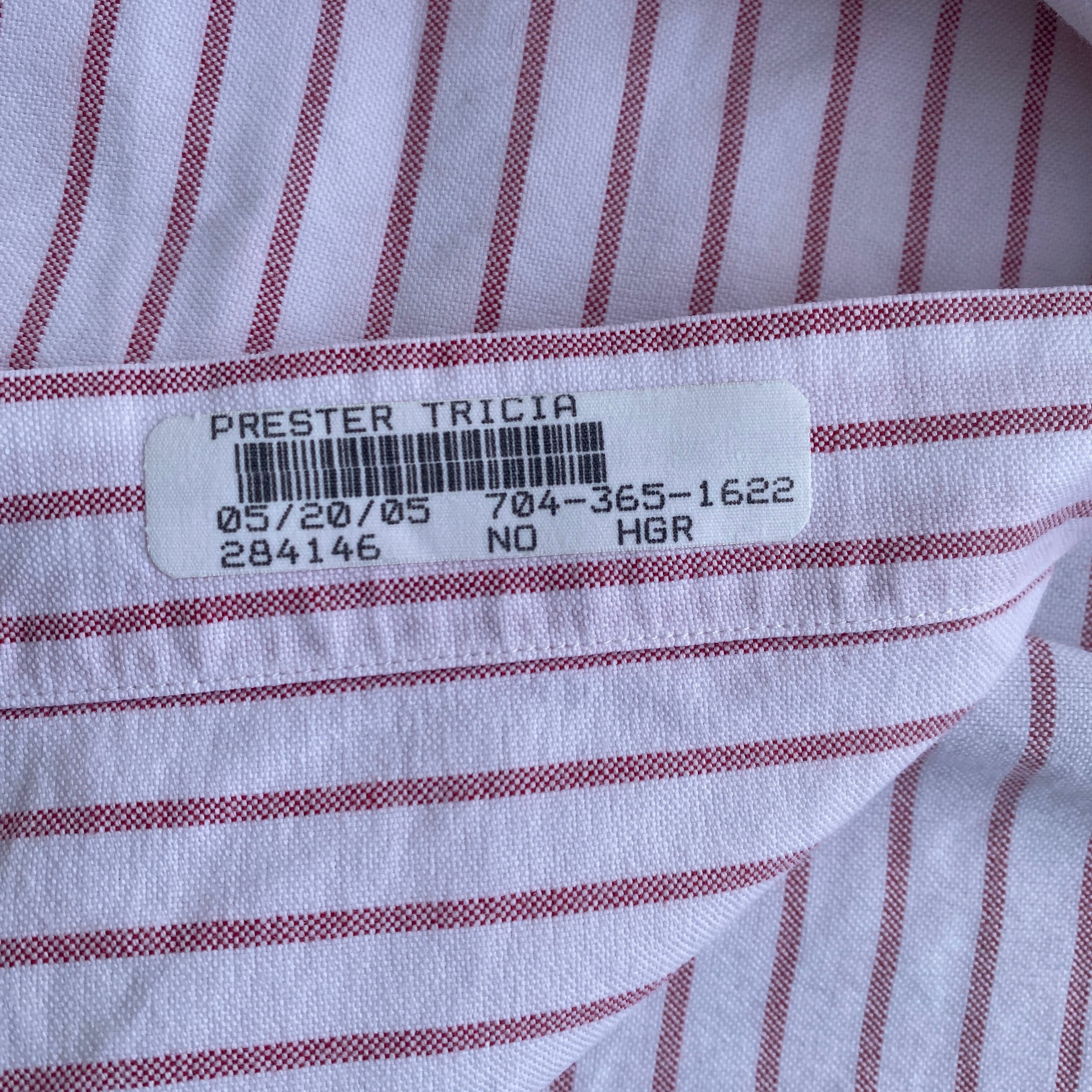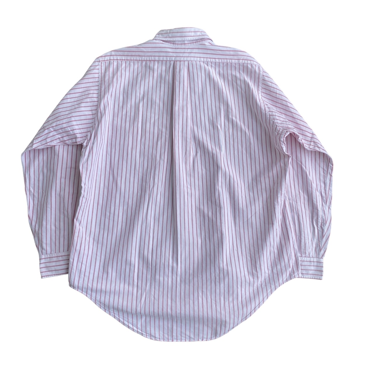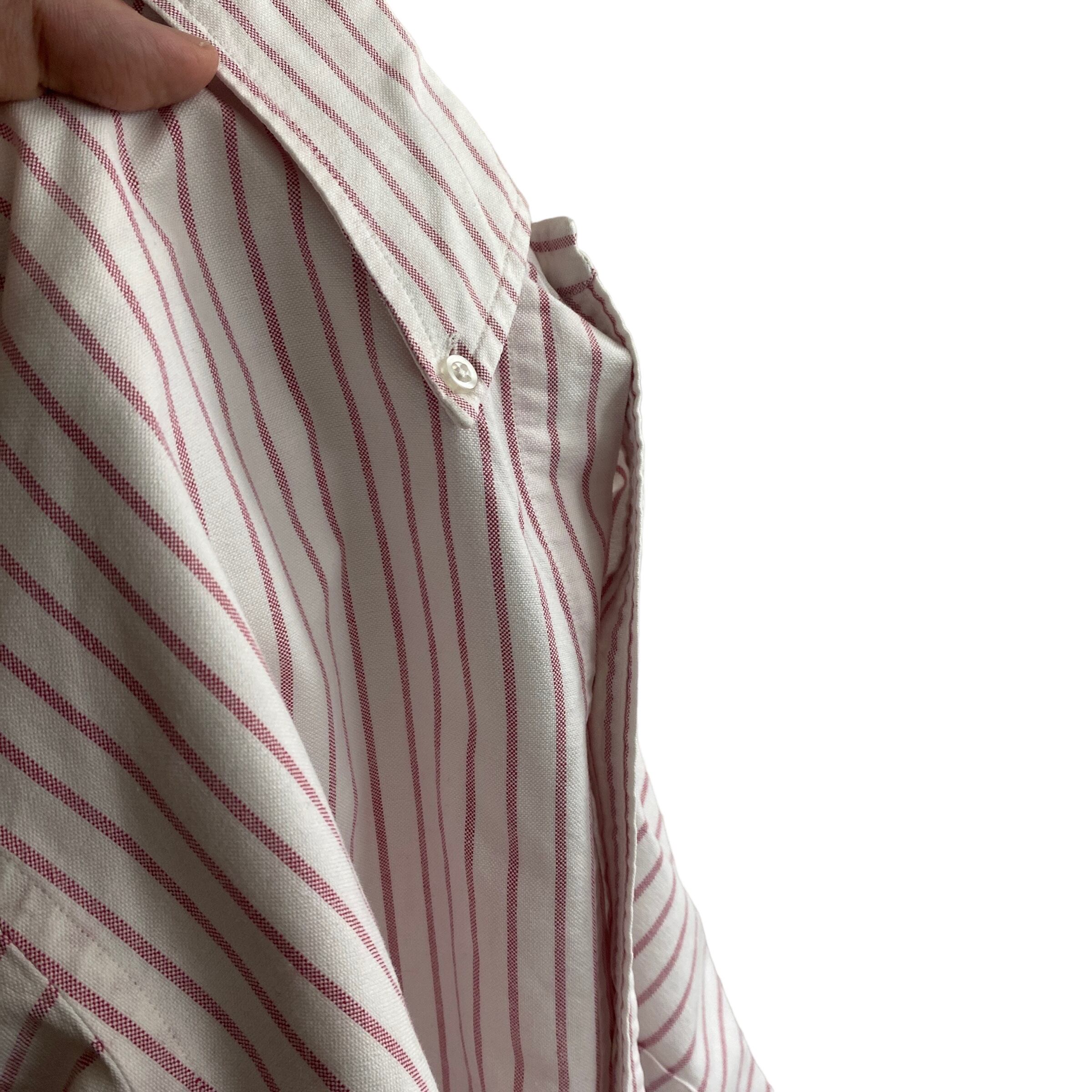コットン100の上質なオックスフォード生地に、枯れたようなレッドとホワイトの美しいストライプ(写真2が近いです)、この年代特有の襟型、深めにラウンドカットされたシルエットが非常に格好良い一着。