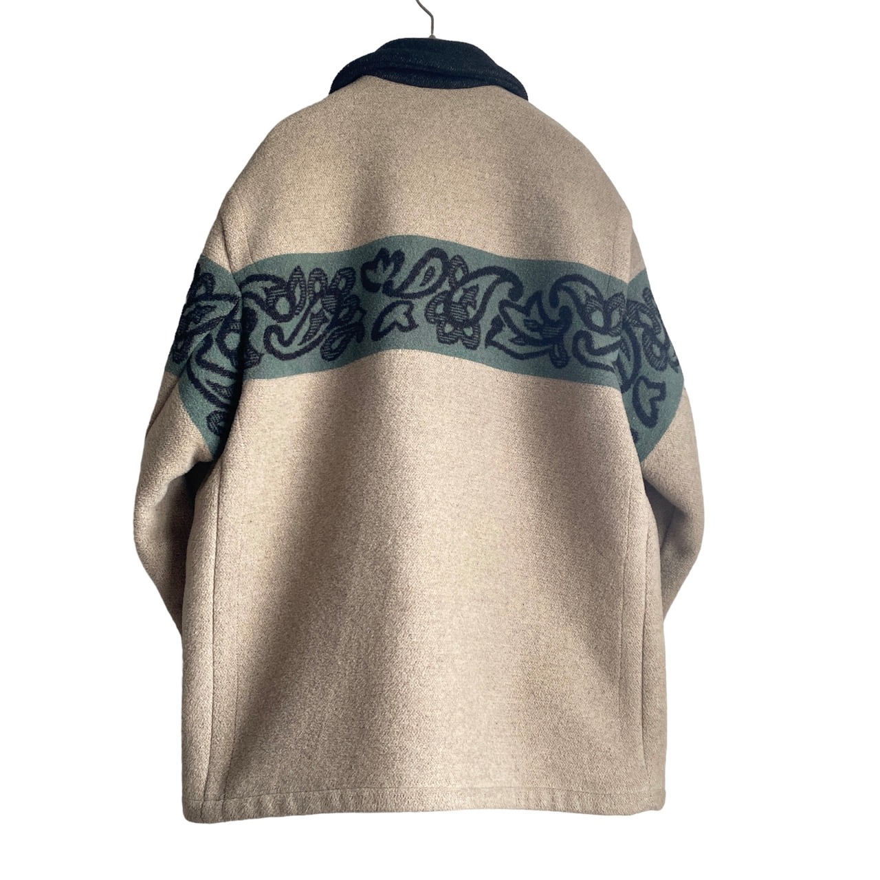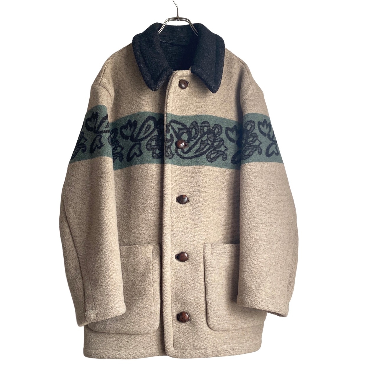 ウールベースの超肉厚でモチっとしたダブルフェイス生地に、どこかLOEWEを彷彿とさせるようなボタニカル?パターンが非常に格好良い一着。