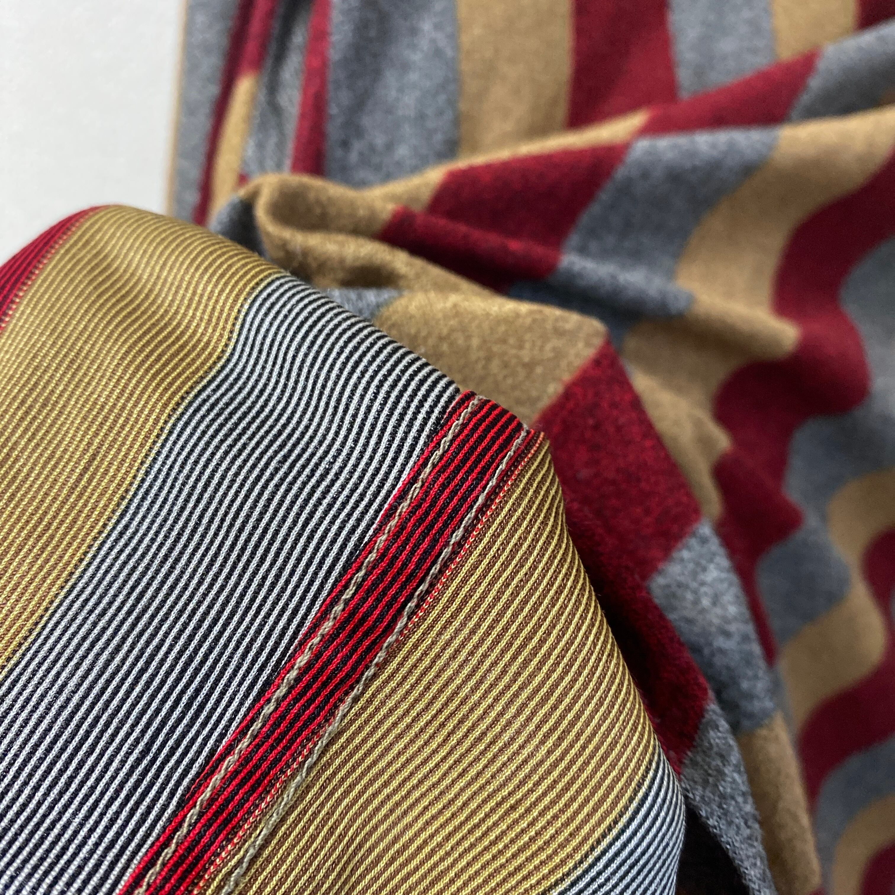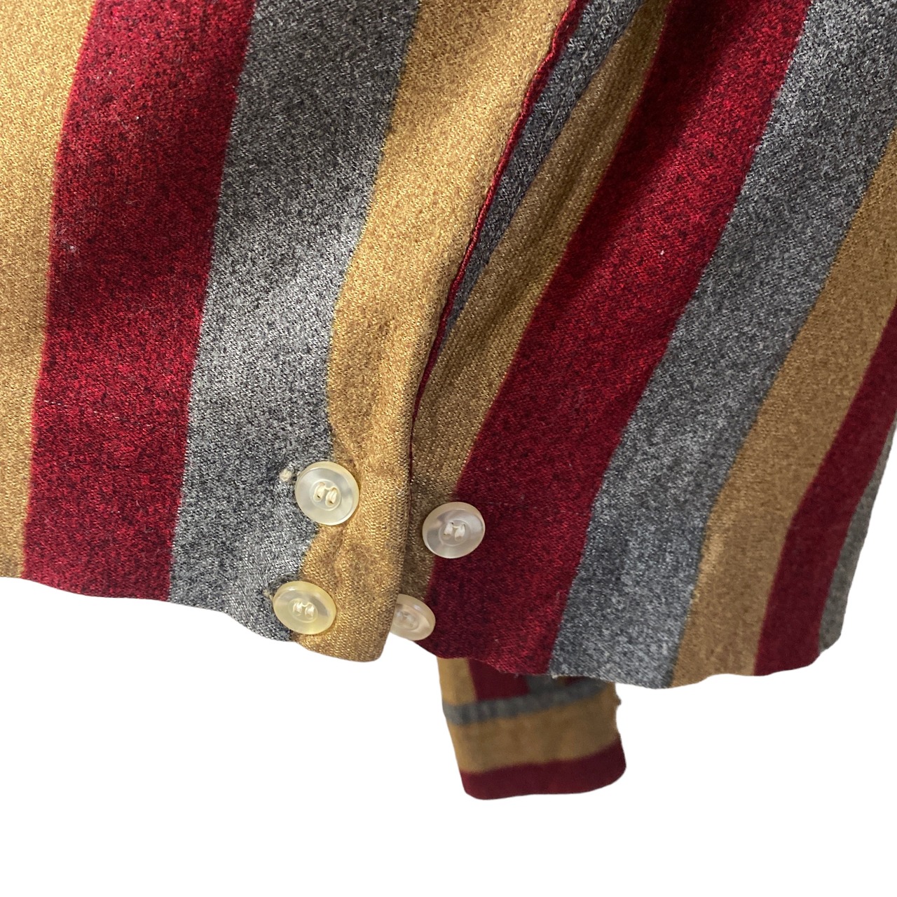 派手目な配色の太ストライプに、ブルゾンのようなショート丈のデザインが非常に格好良い一着。