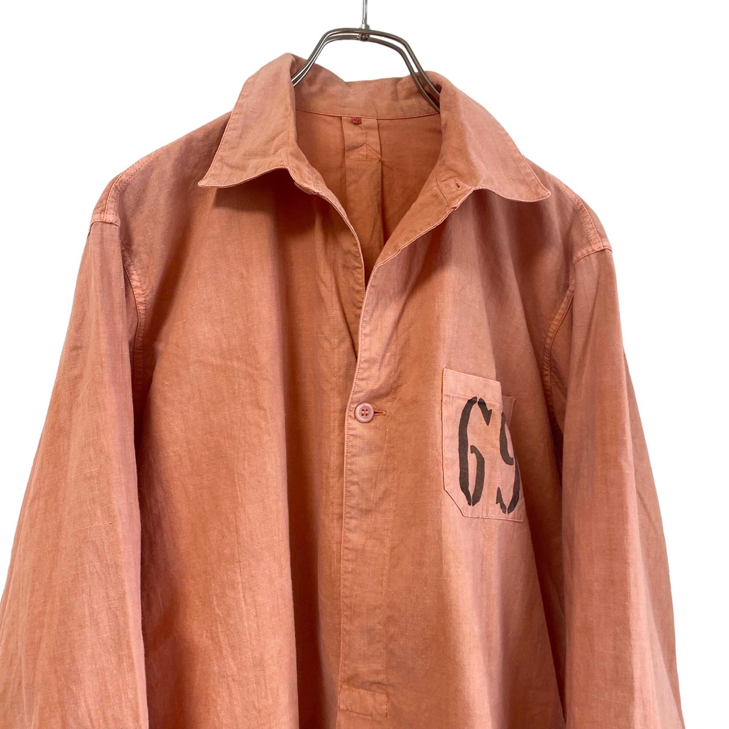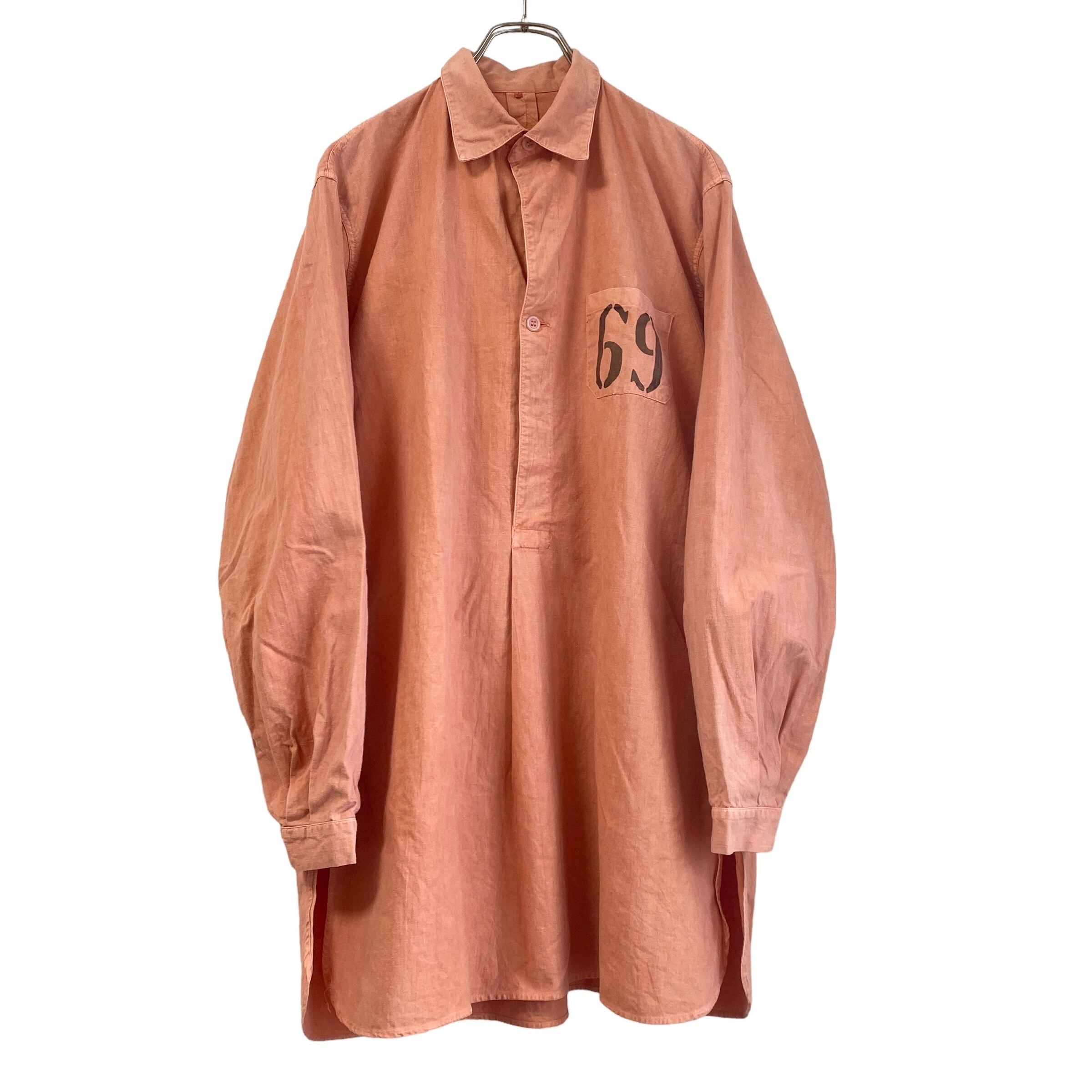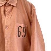 スウェーデン軍の中でも人気の高いスリーピングシャツですが、こちらは胸ポケットにステンシルスタンプが施され、オレンジ系の色目に後染めされた非常に珍しい一着。