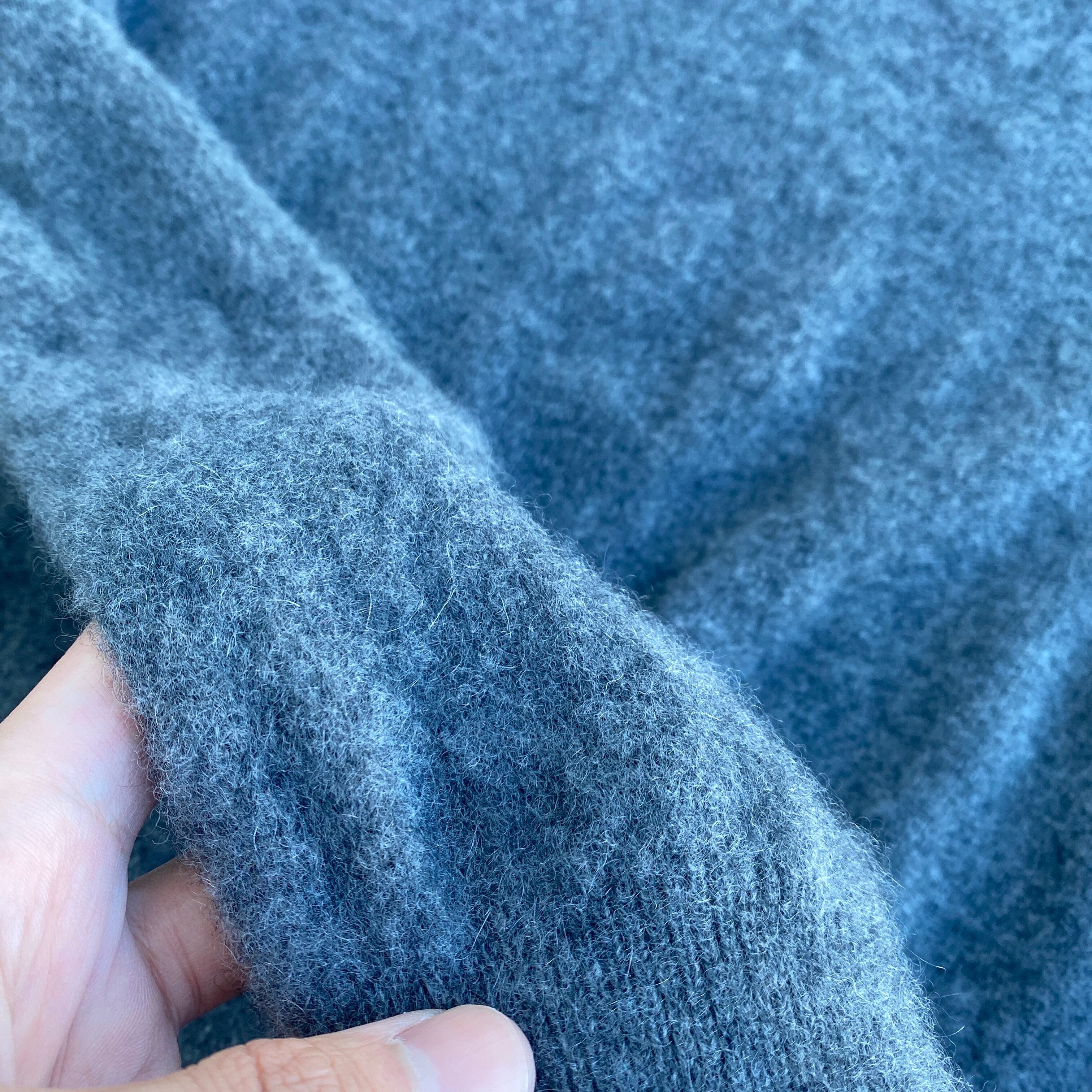 定番的なダークグレーの色目に、ジェラートピケかと思わせるぐらい(若干誇張)肉厚でトロフワな柔らかな質感のモンゴリアンカシミヤ100のニット素材が素晴らしい一着。