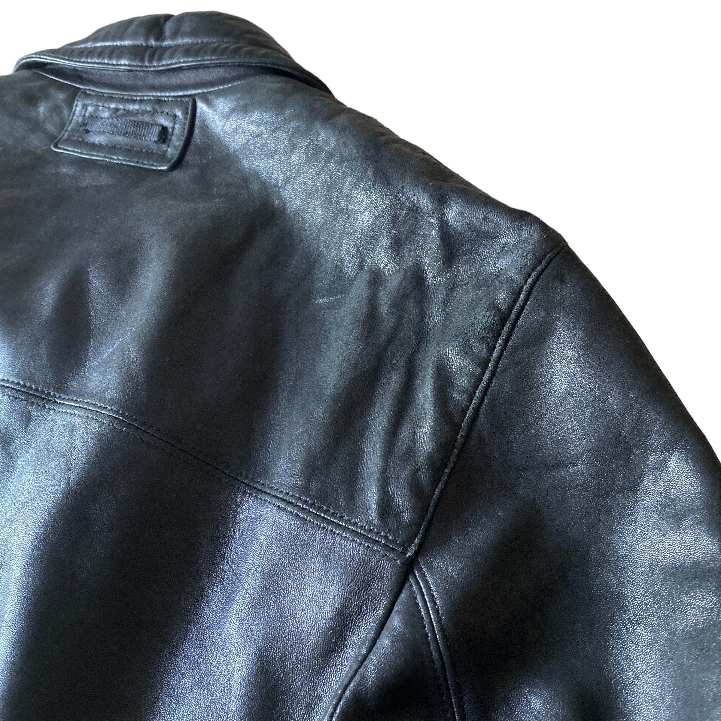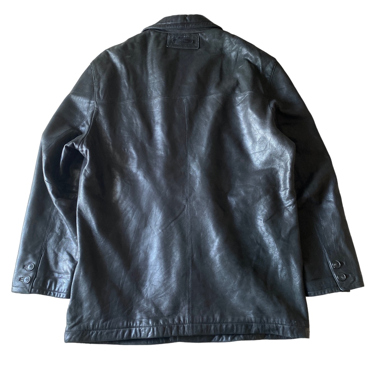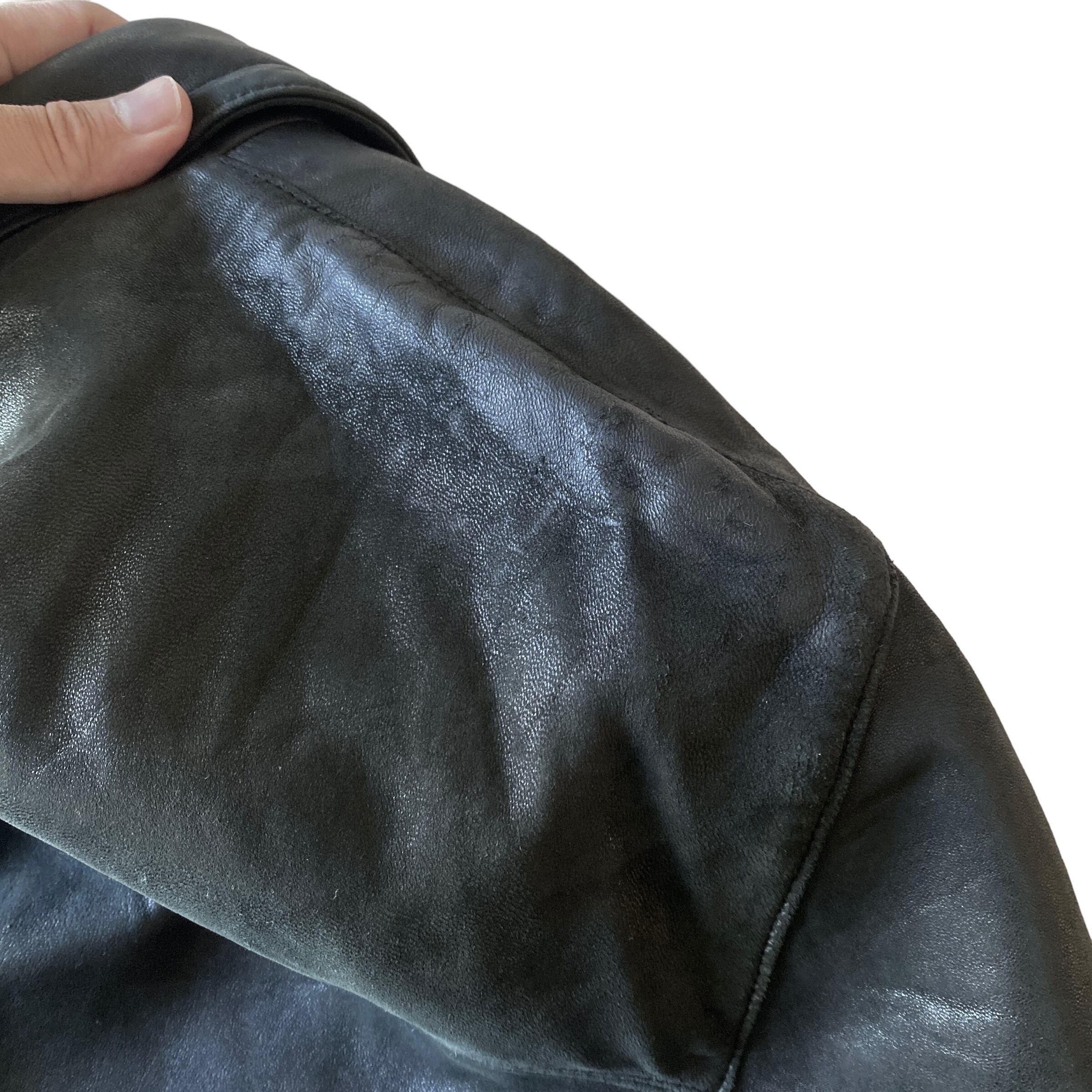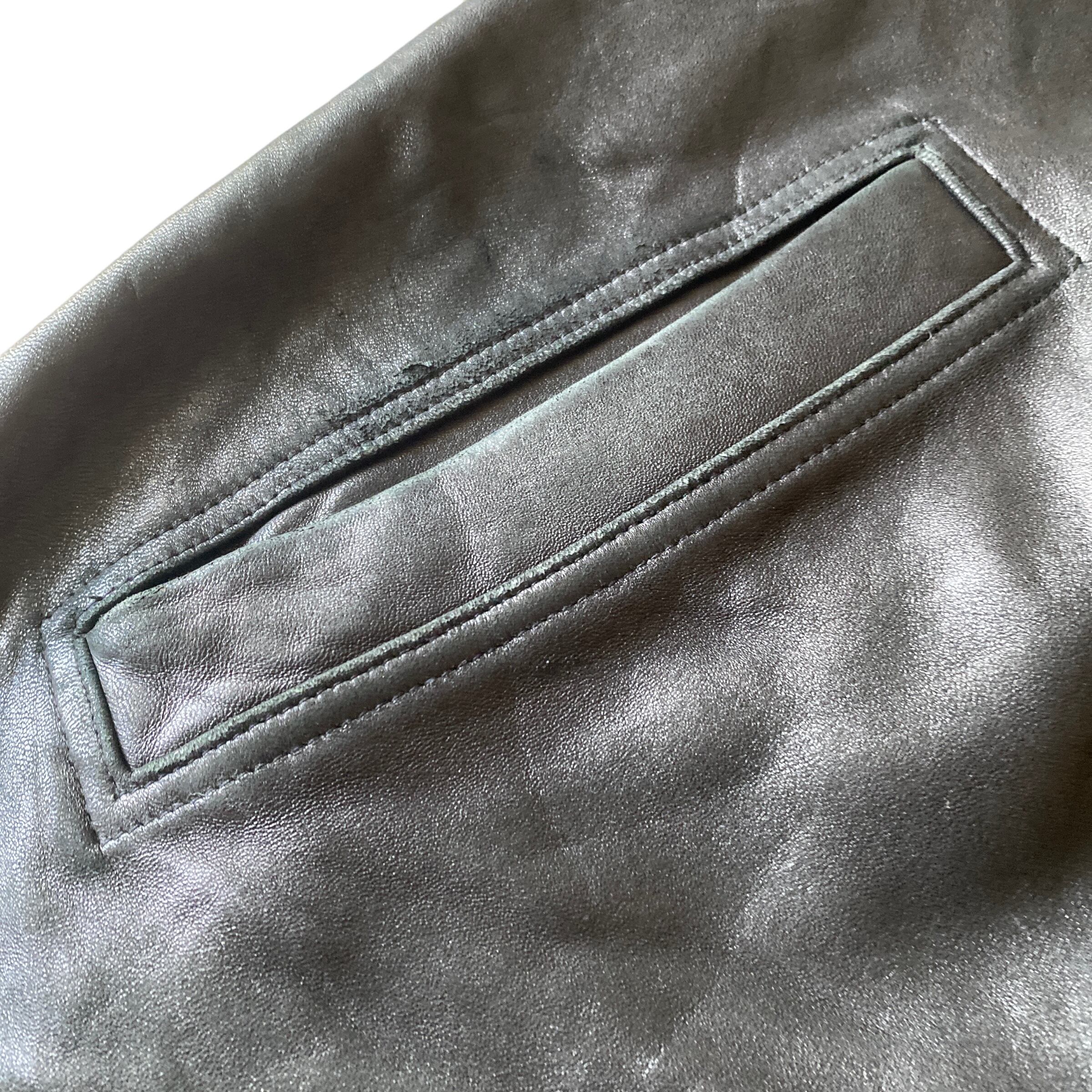 ブラックカラーの非常に柔らかで上質なラムレザーを使用し、シンプルなカーコートスタイルに仕立てられた一着。