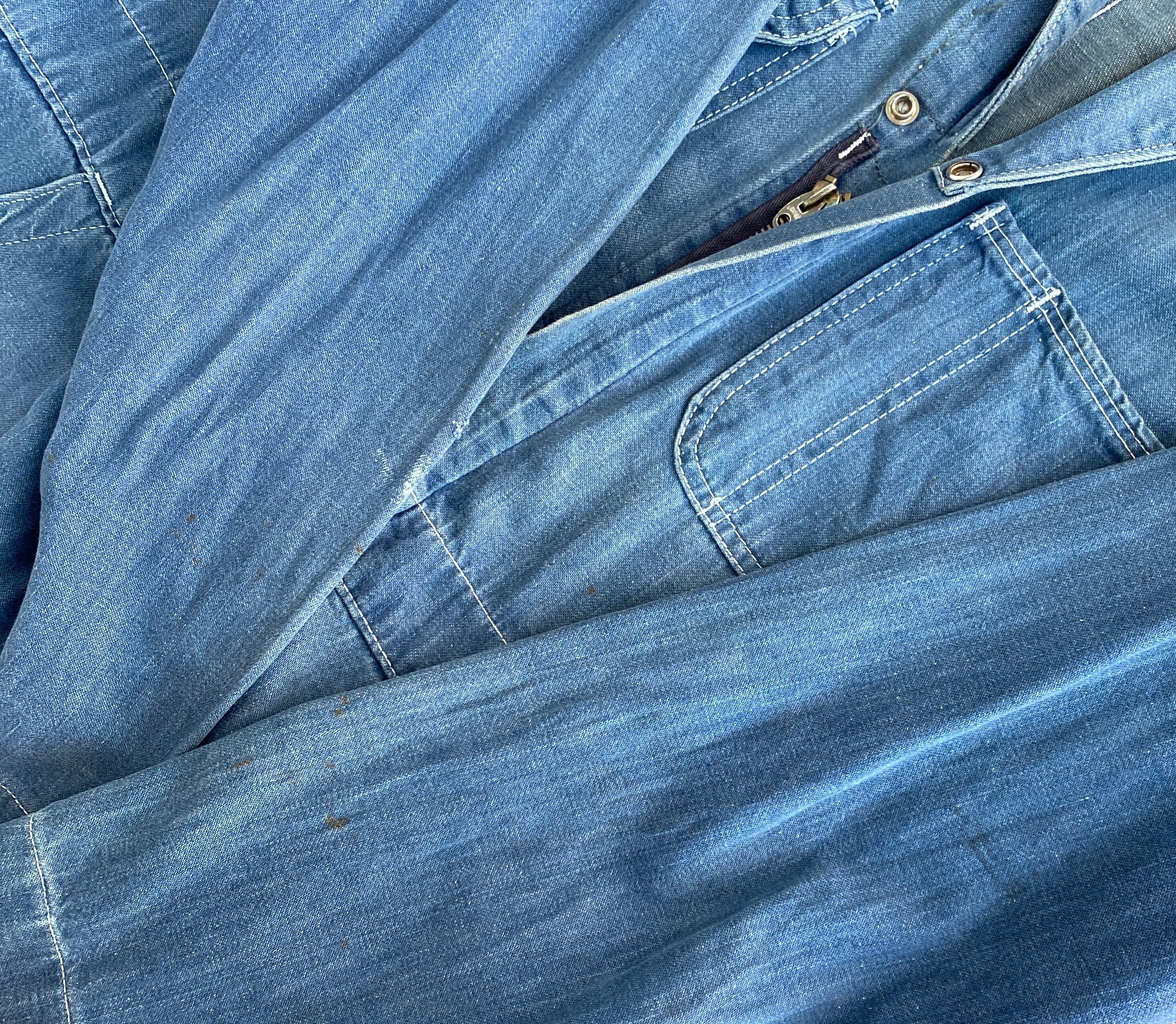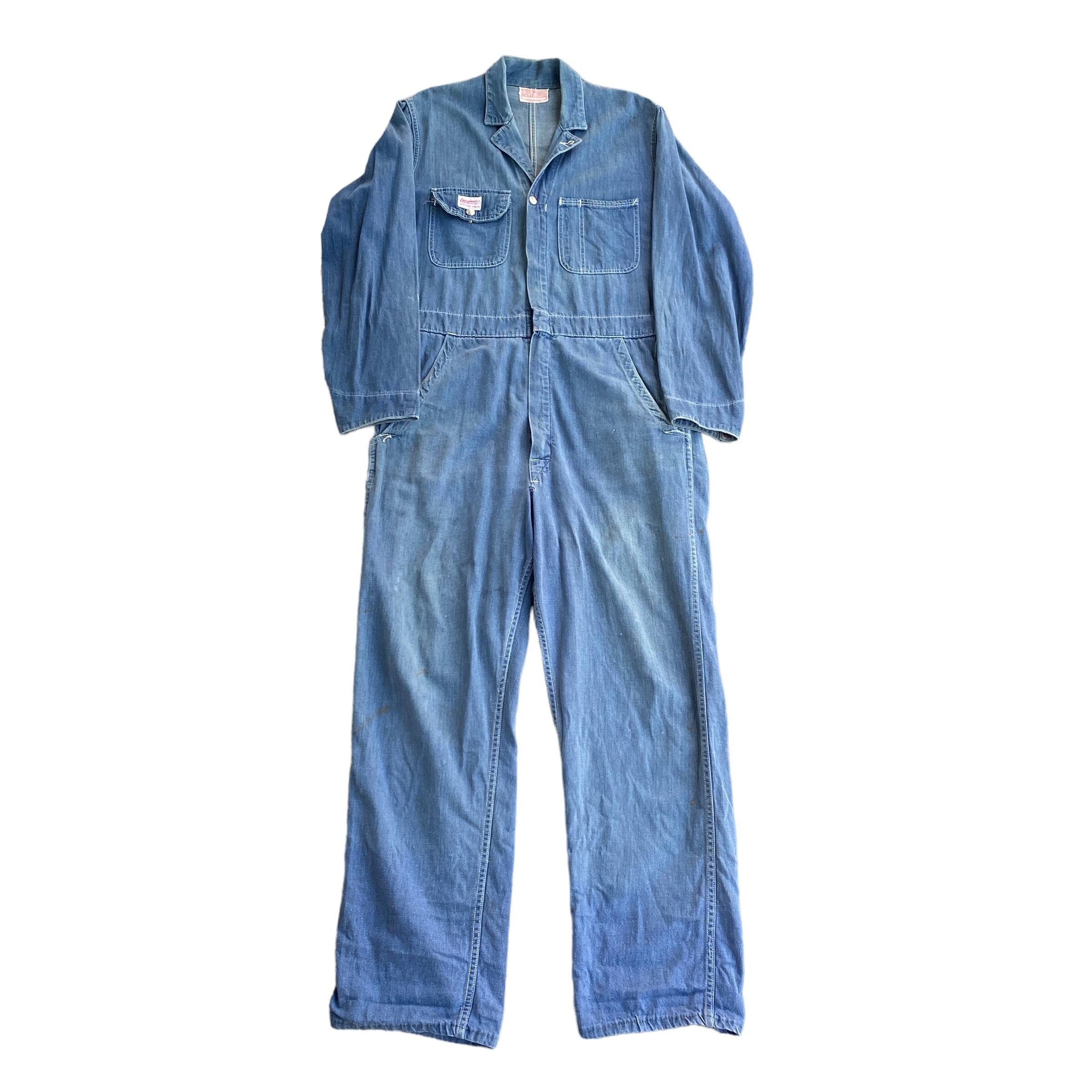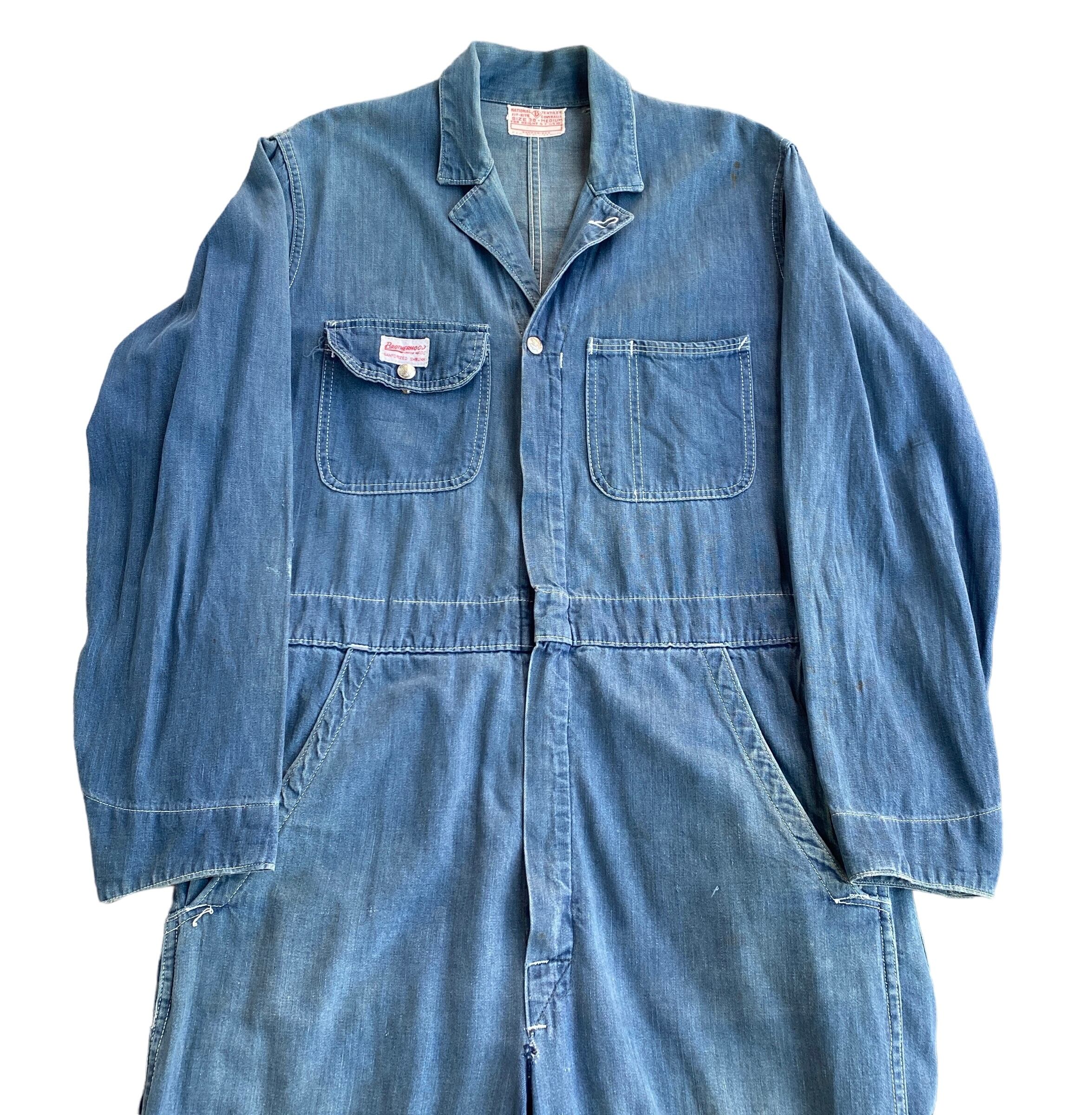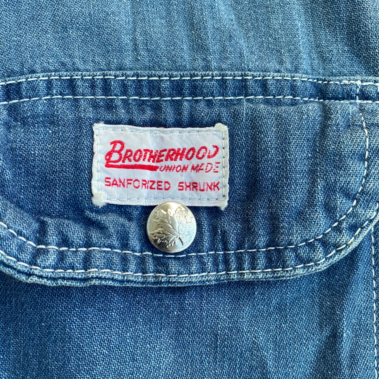 1950-60年代ごろのカナダ製(UNION MADEなのアメリカの労働組合)「ブラザーフッド」デニムオールインワンになります。