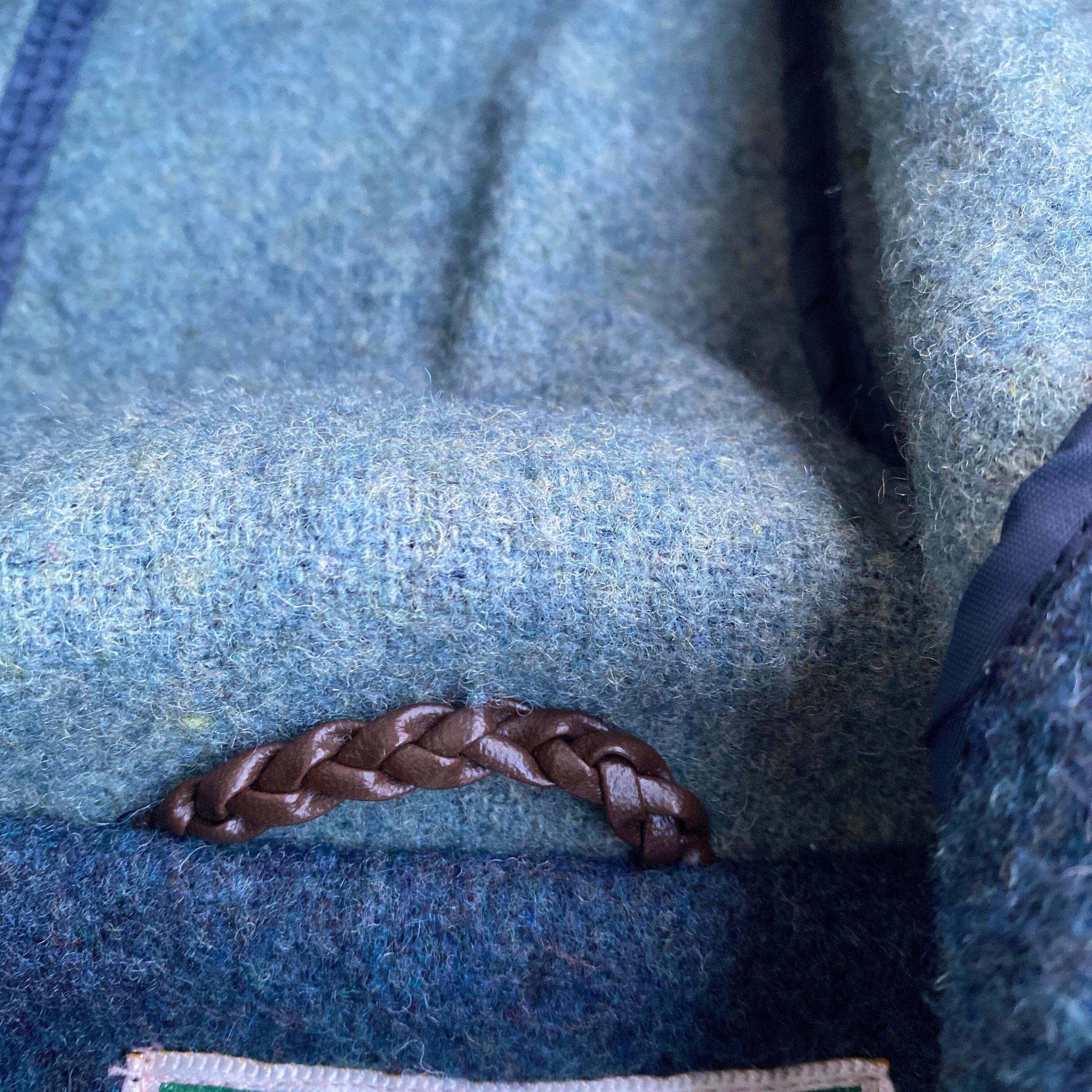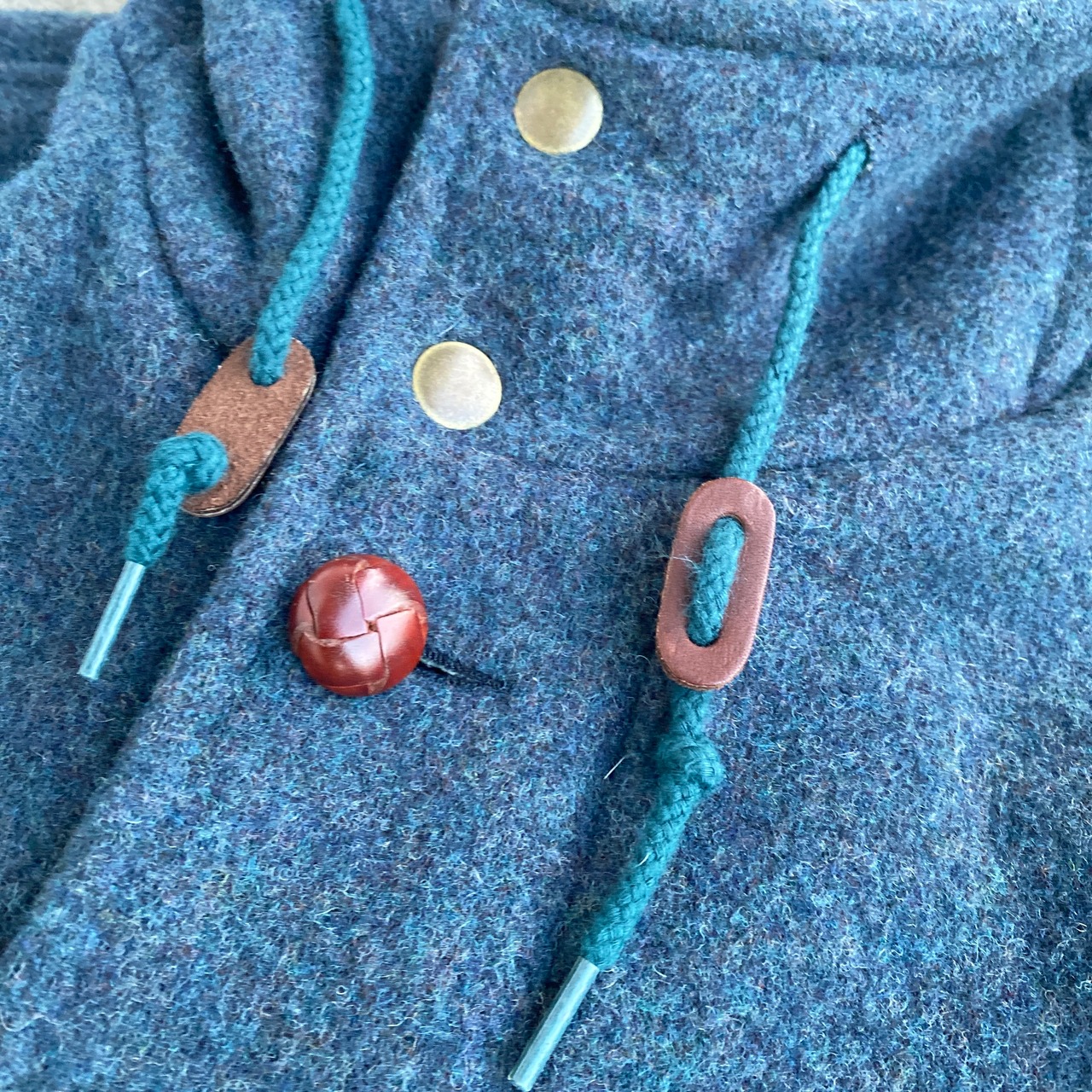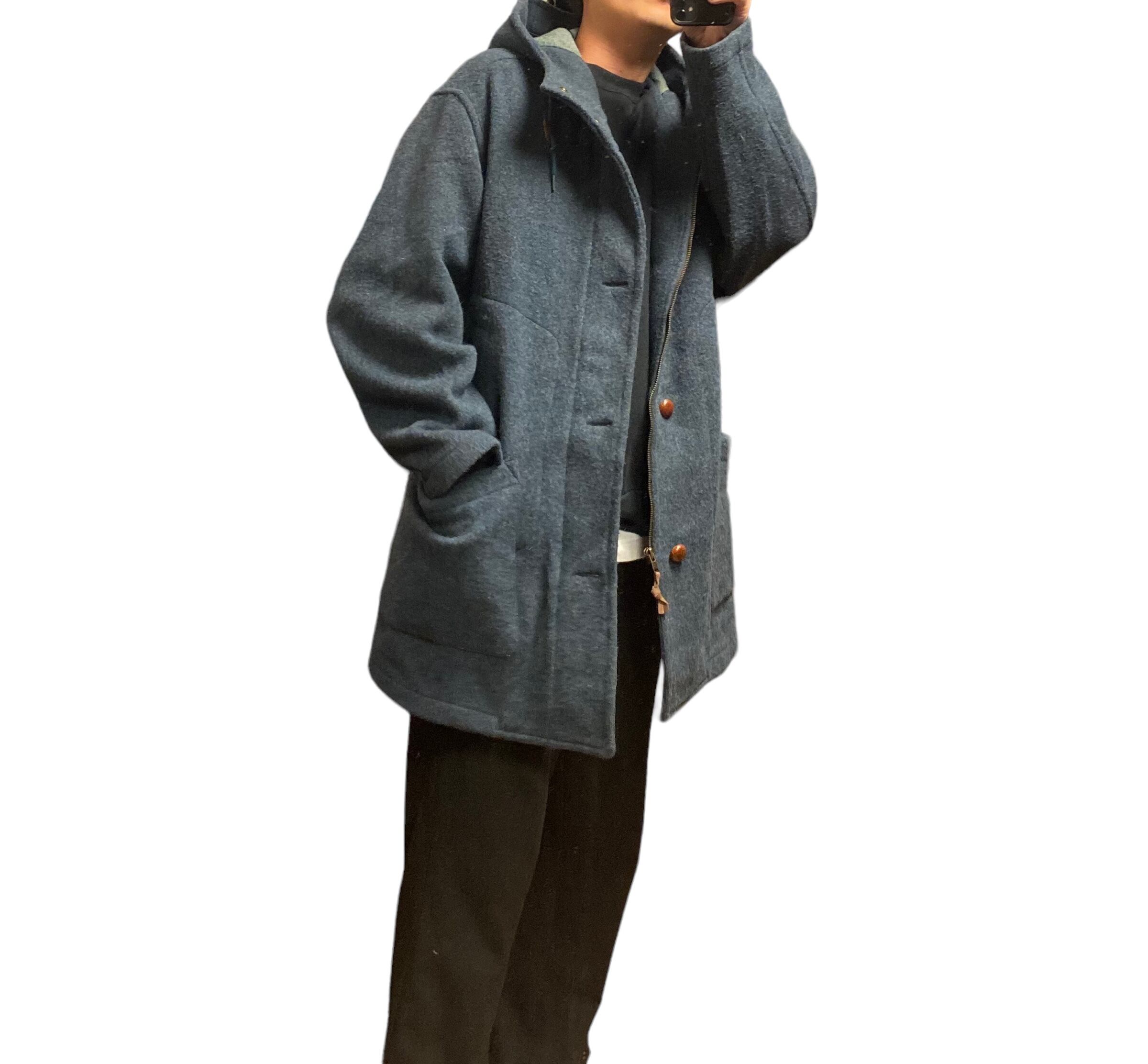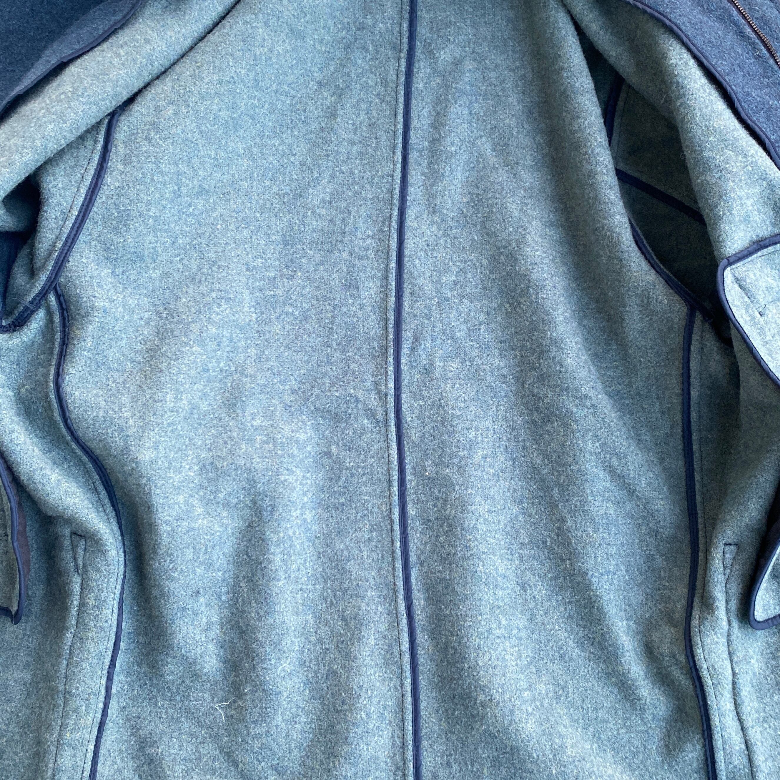 ブルーとグレーを混ぜたような絶妙な色目(画像11が近いです)の、フカっとした肉厚なウールメルトン素材が上品で素敵な一着。