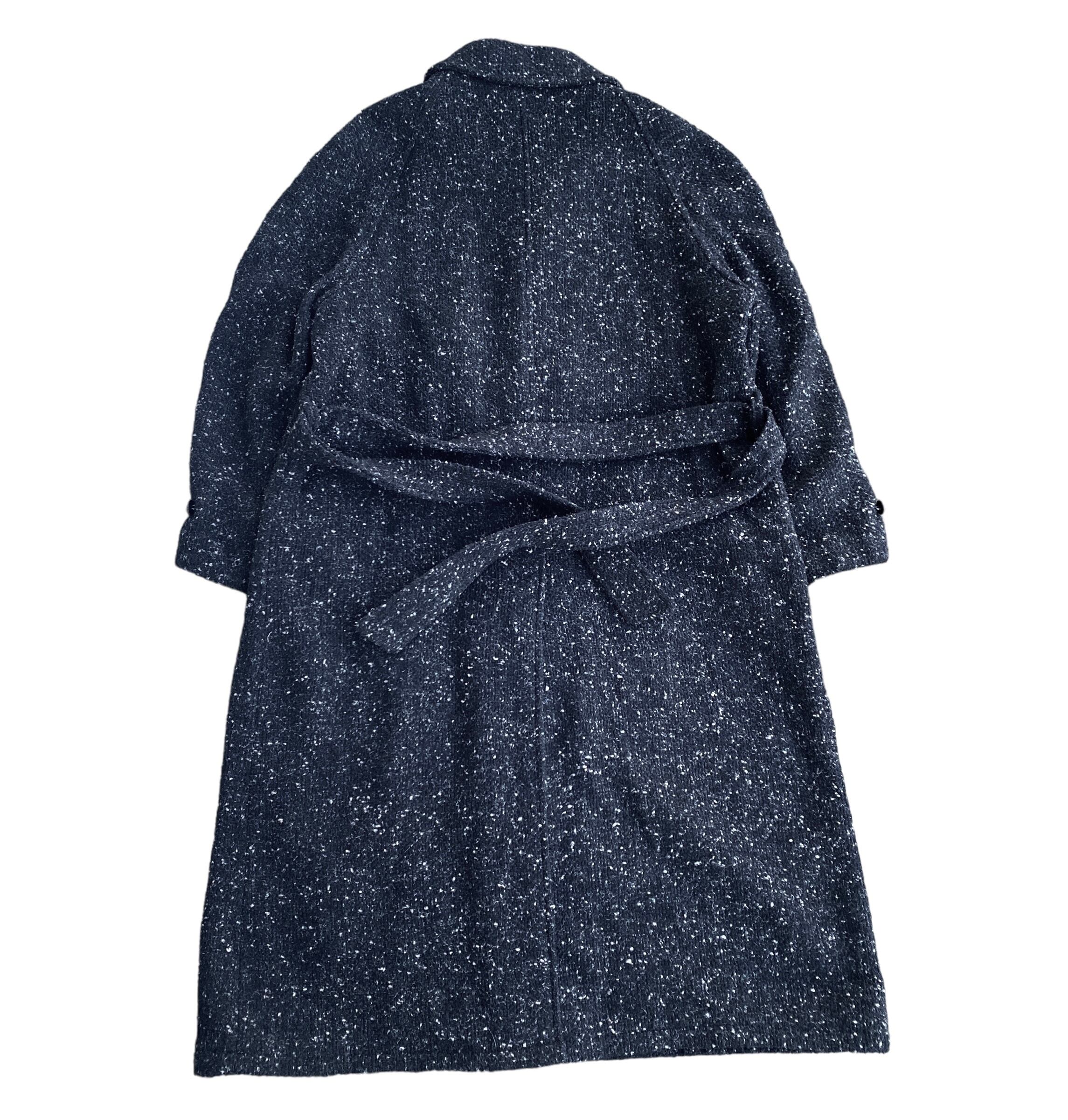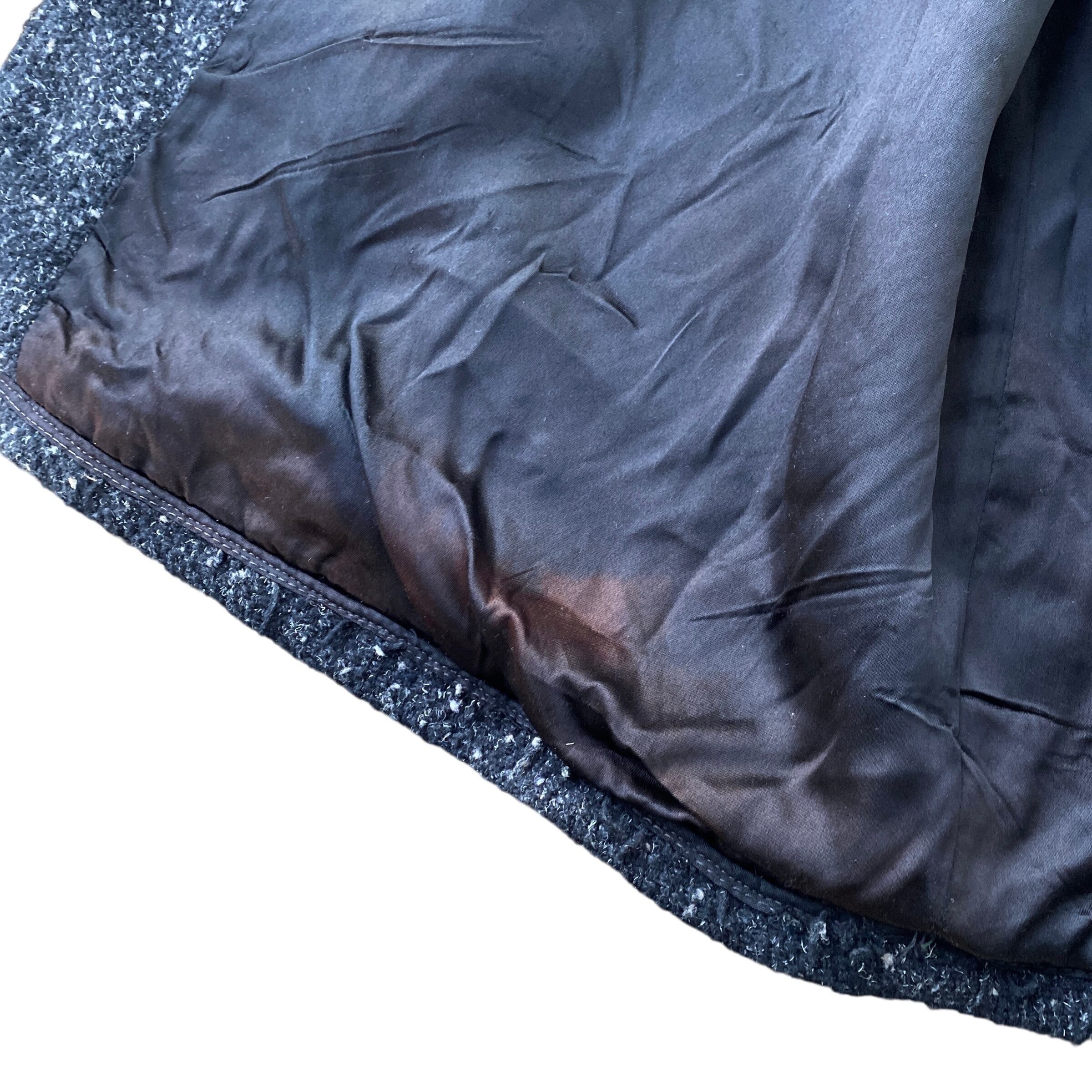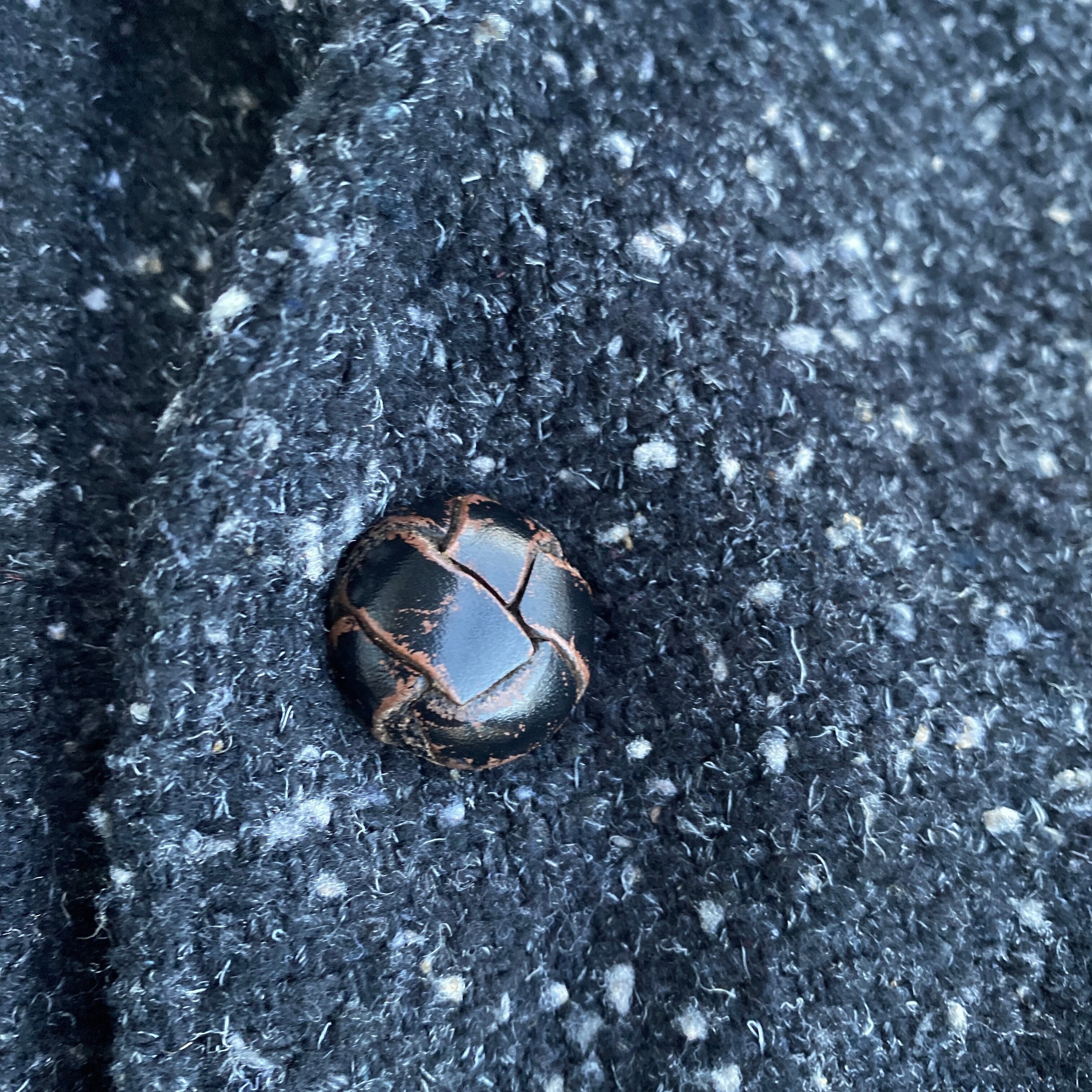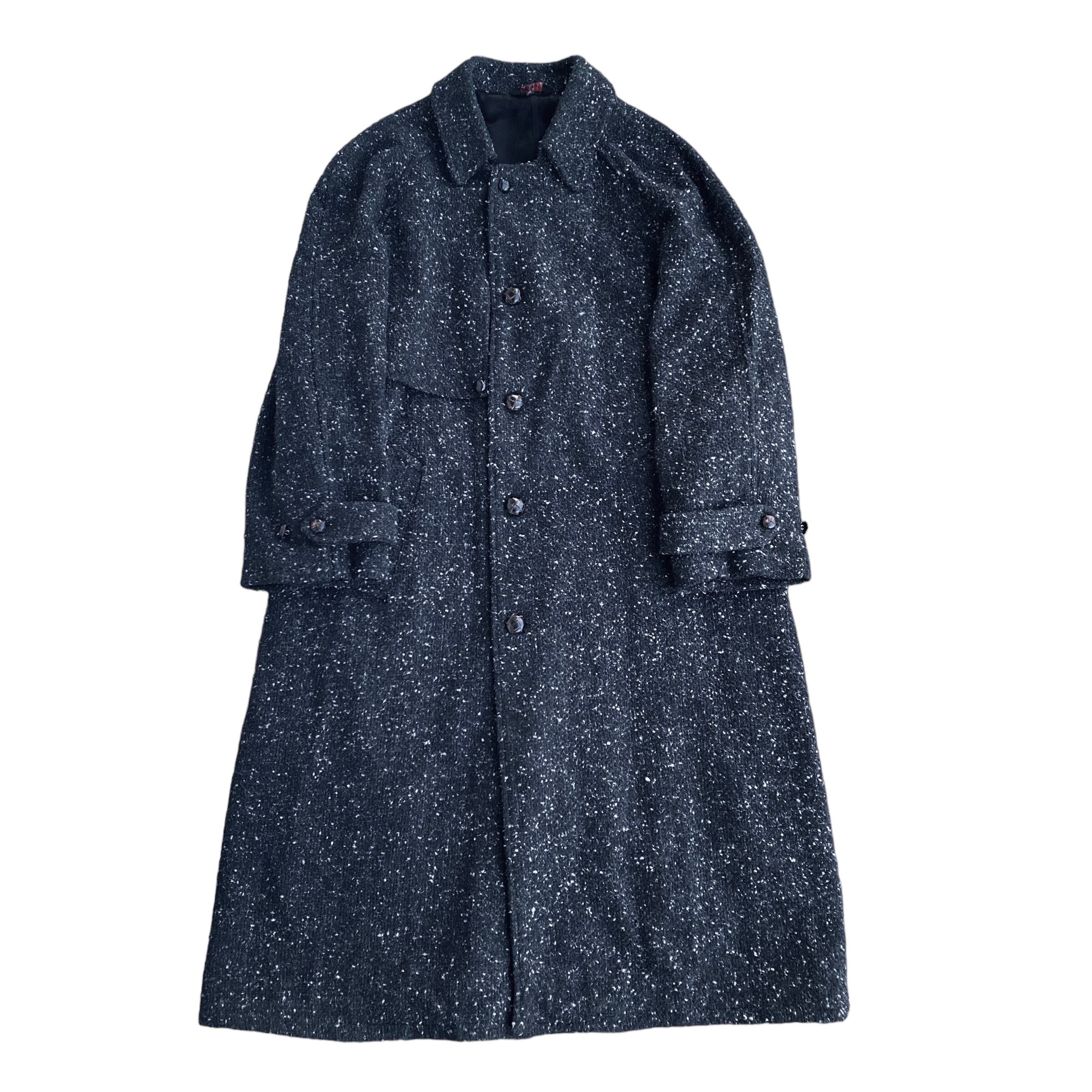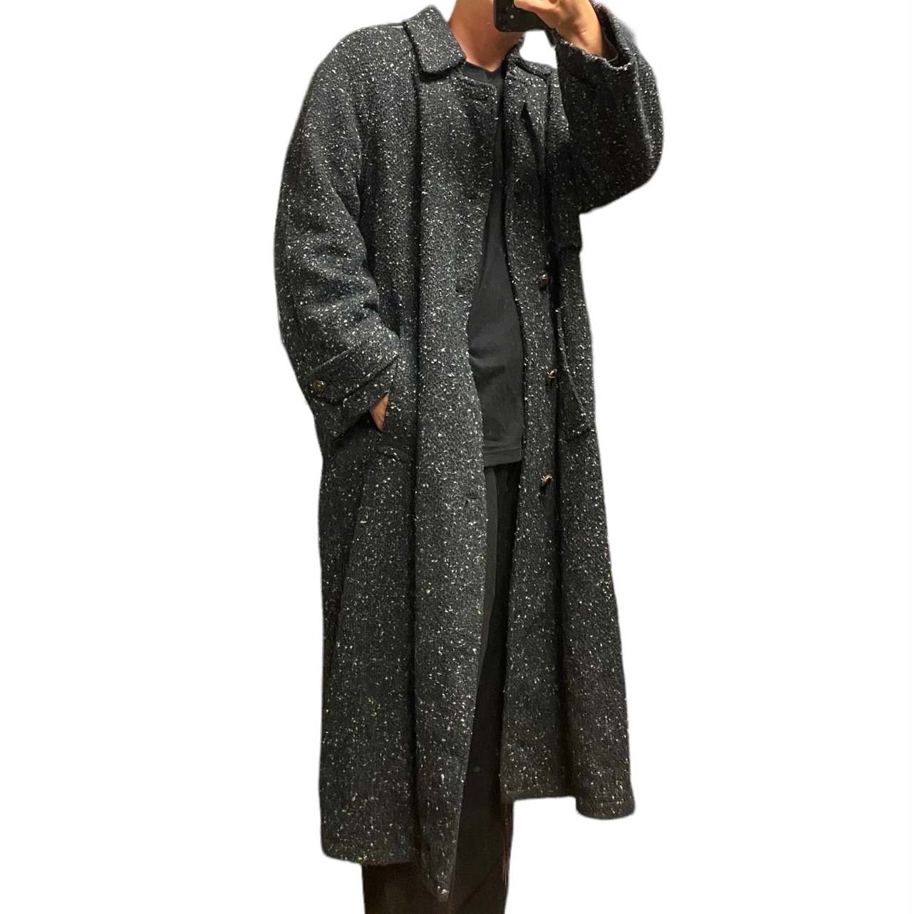 ブラックに近いダークグレー(画像14参照)をベースとした、イタリア製の風合いの良いループツイード生地を使用し、アメリカでコートとして仕立てられた雰囲気抜群な一着。