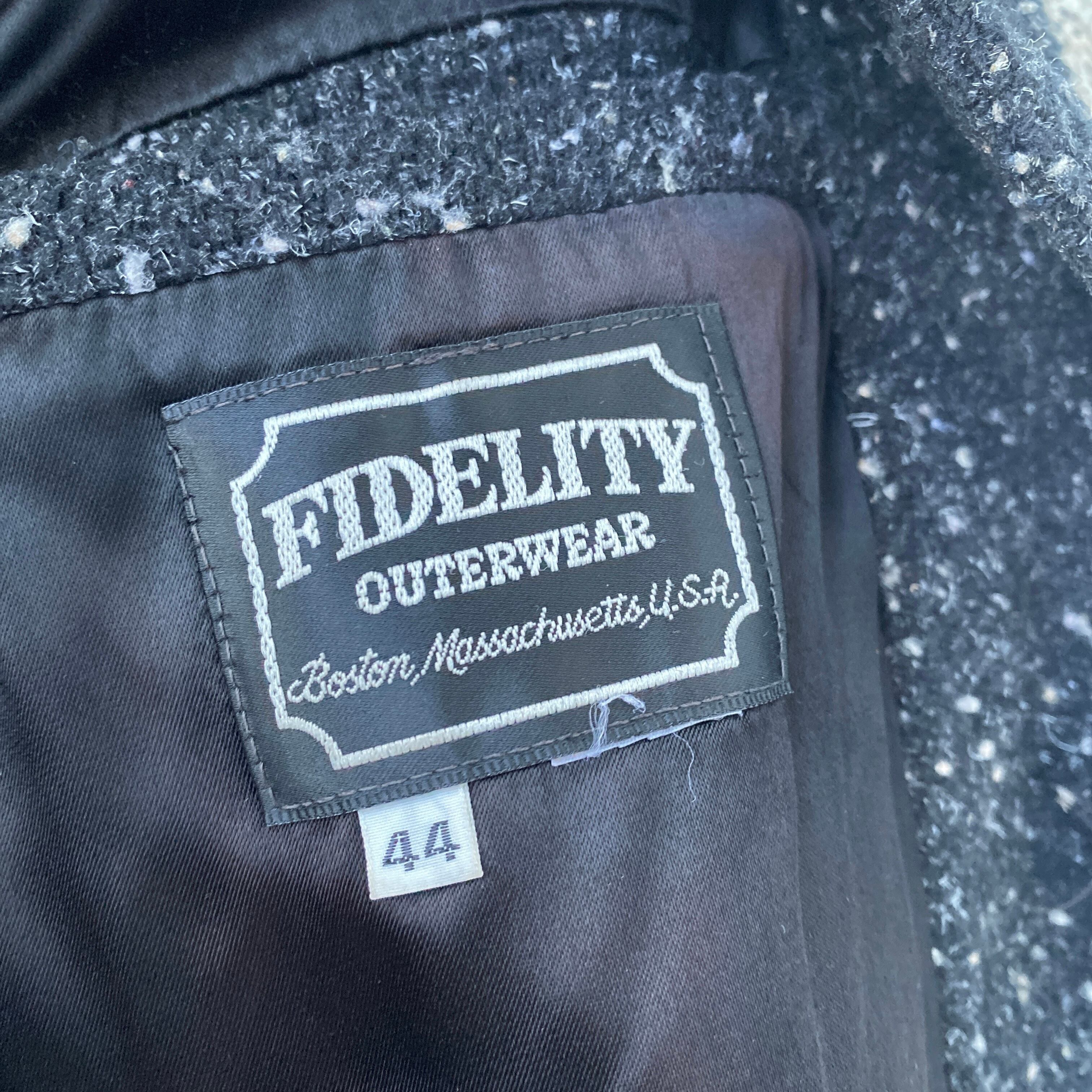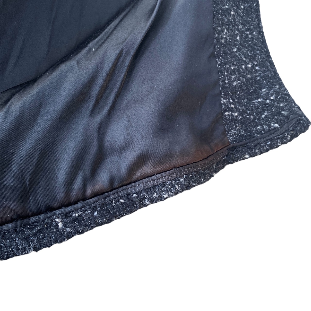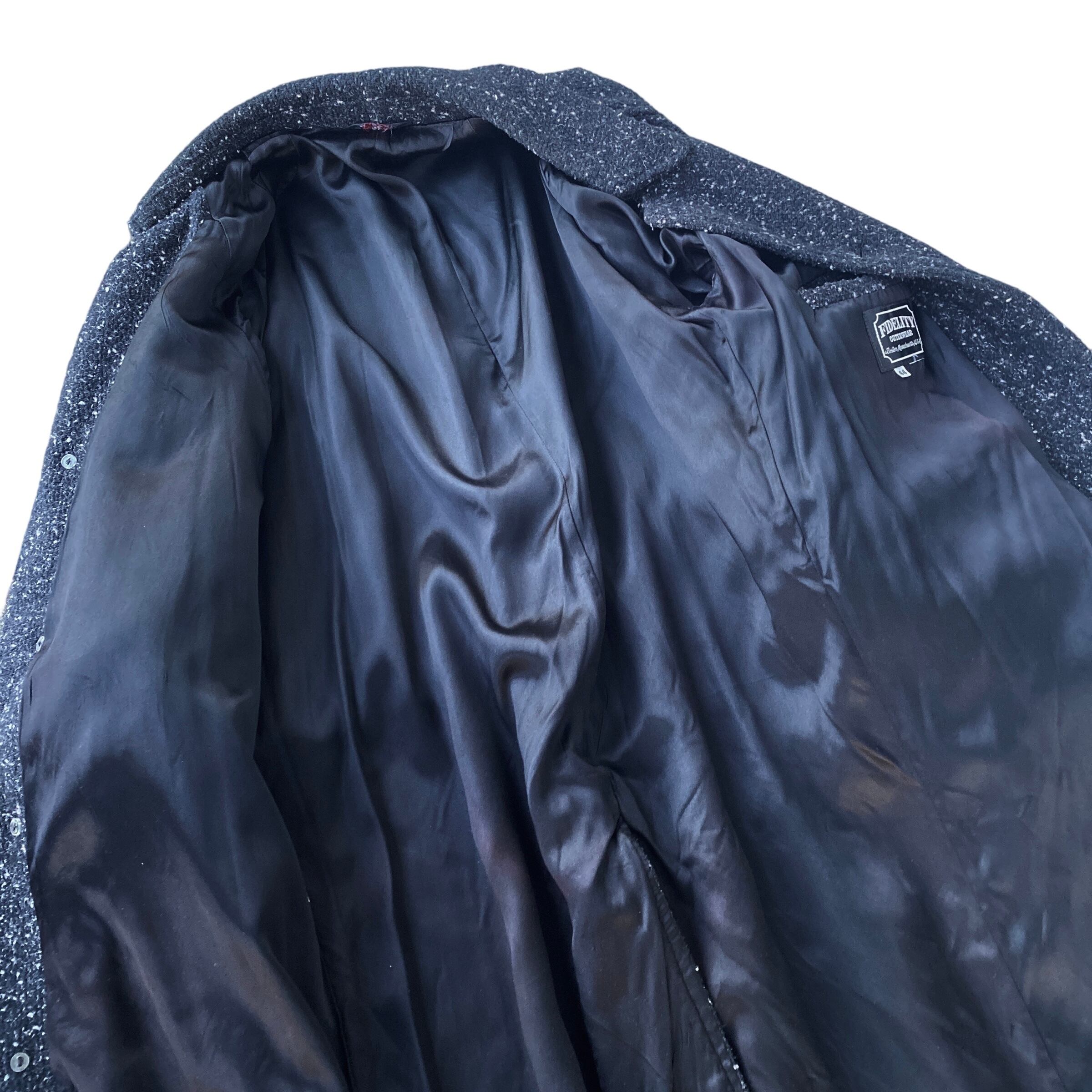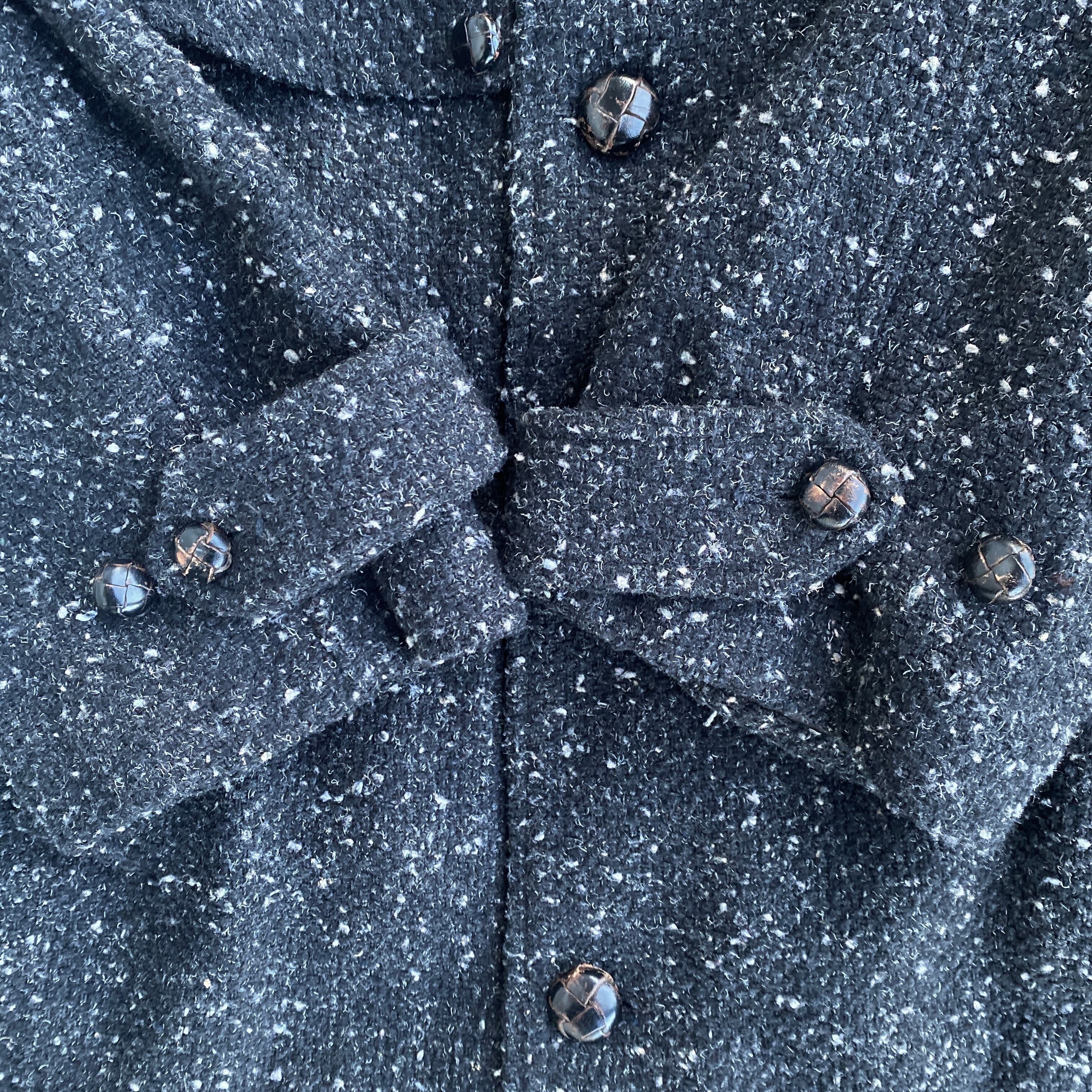 ブラックに近いダークグレー(画像14参照)をベースとした、イタリア製の風合いの良いループツイード生地を使用し、アメリカでコートとして仕立てられた雰囲気抜群な一着。
