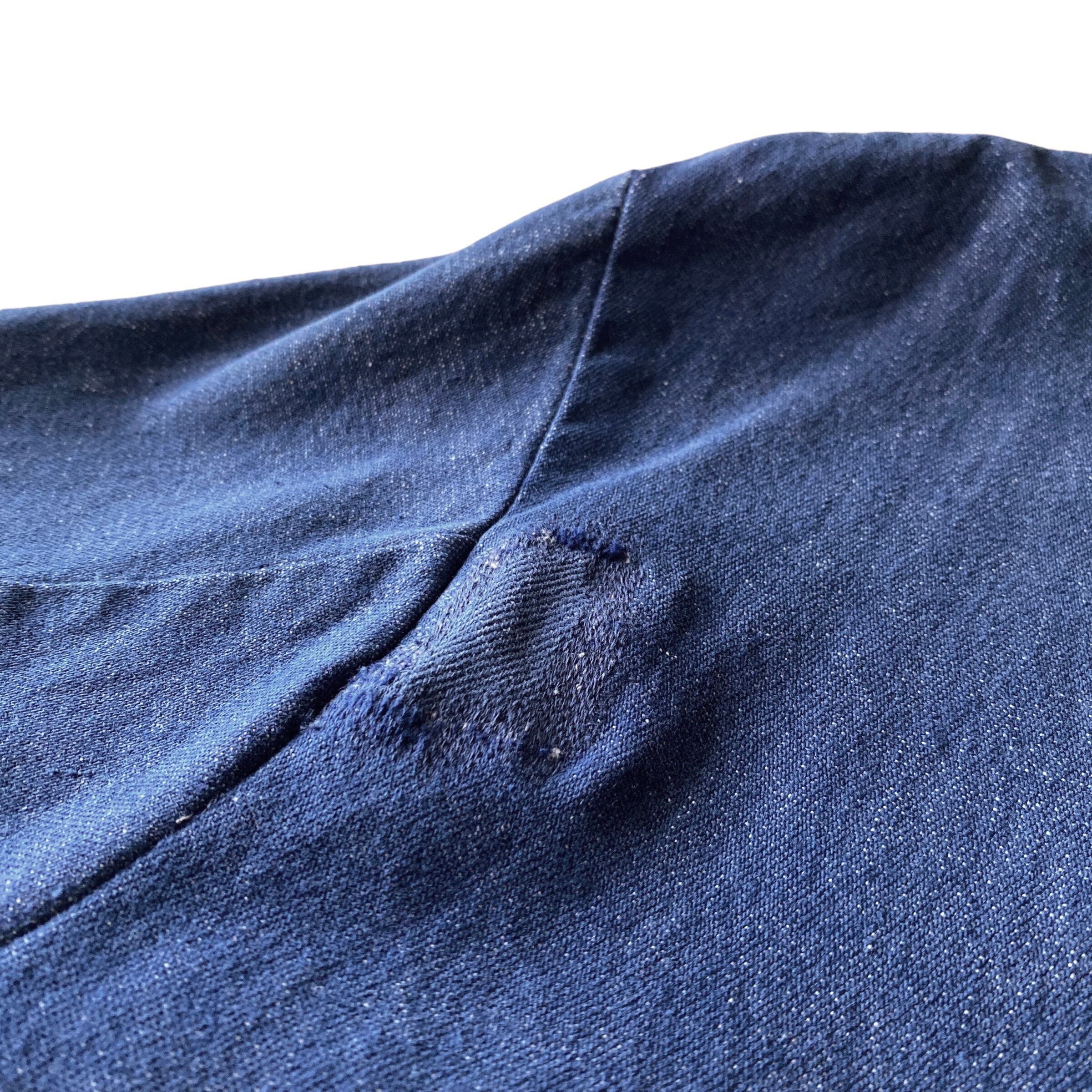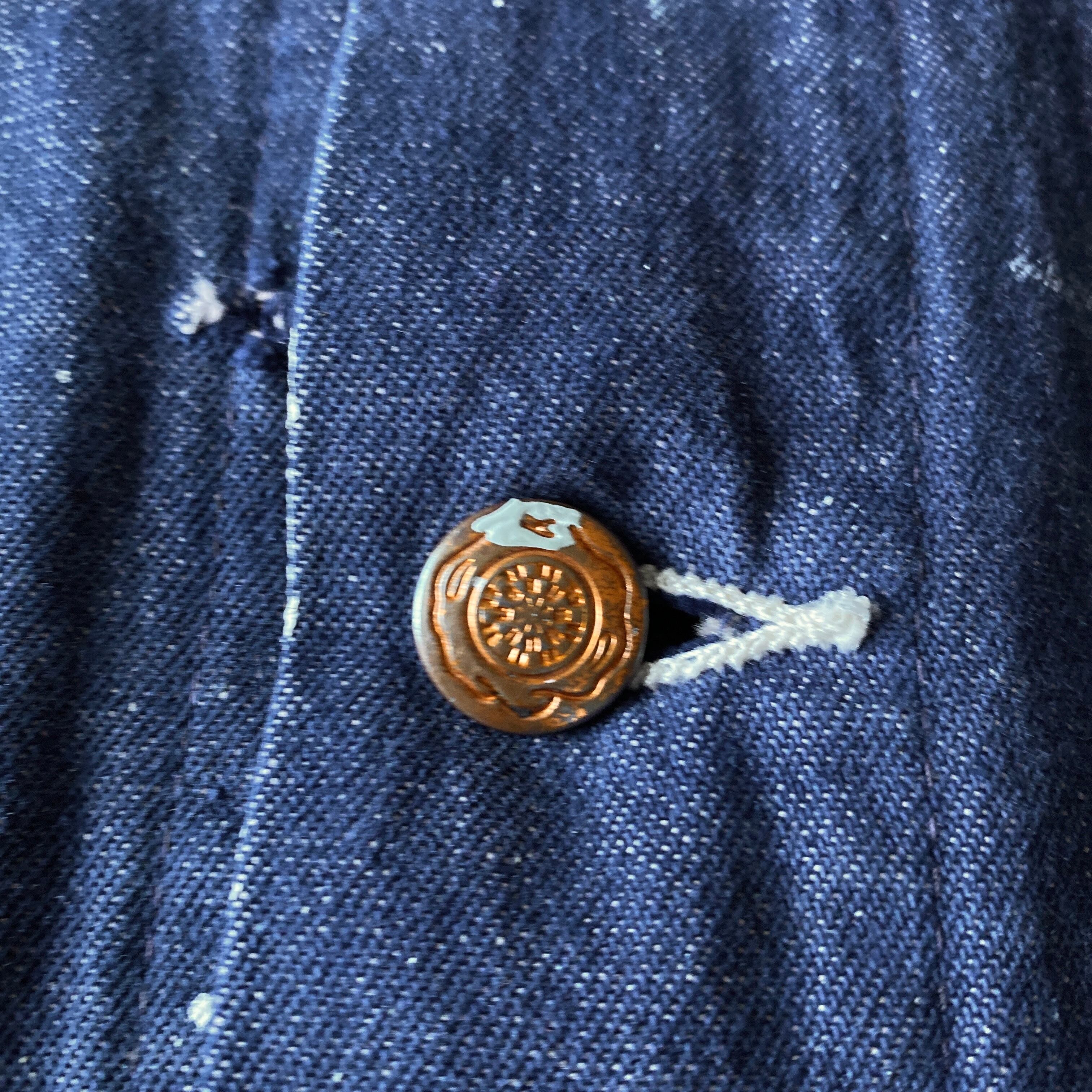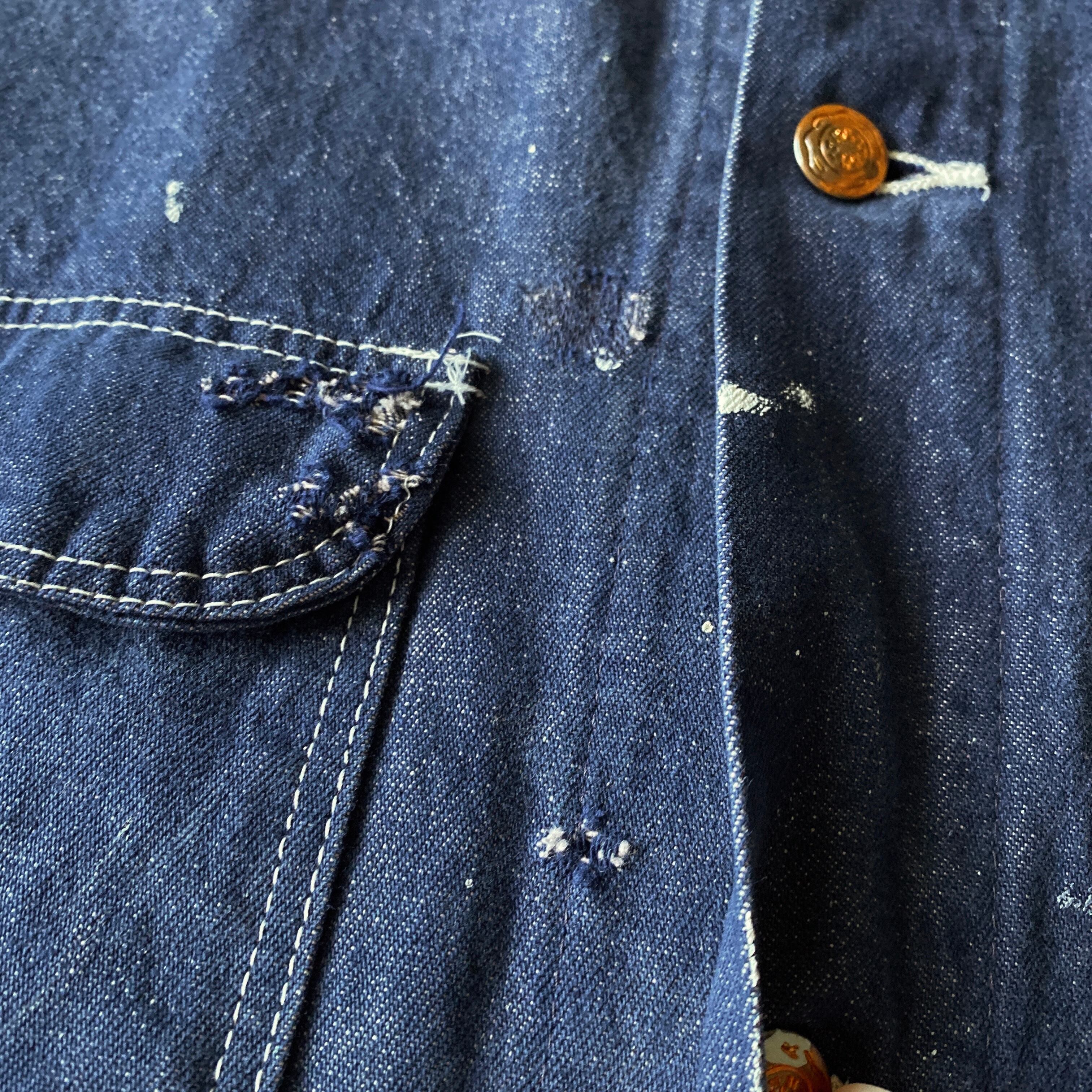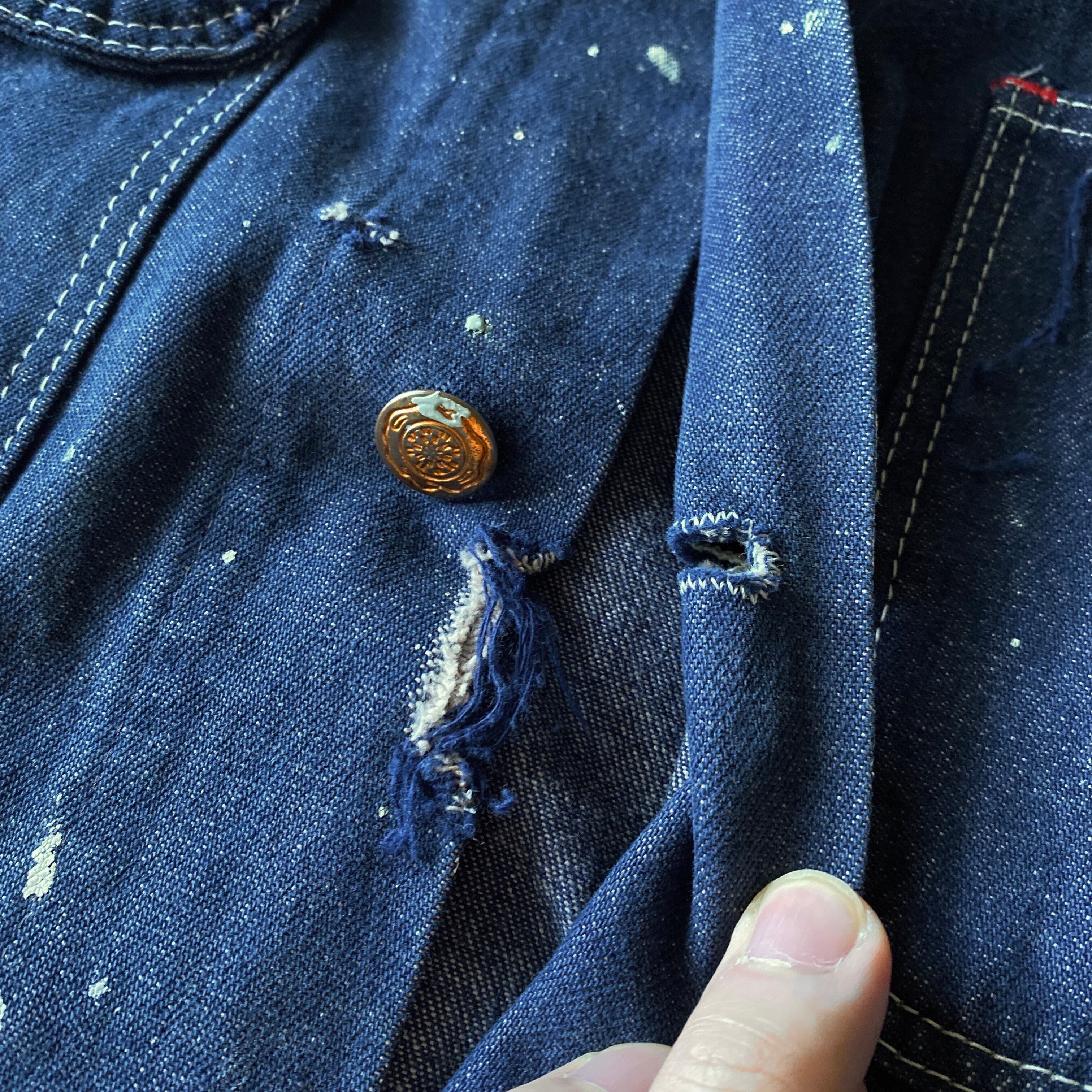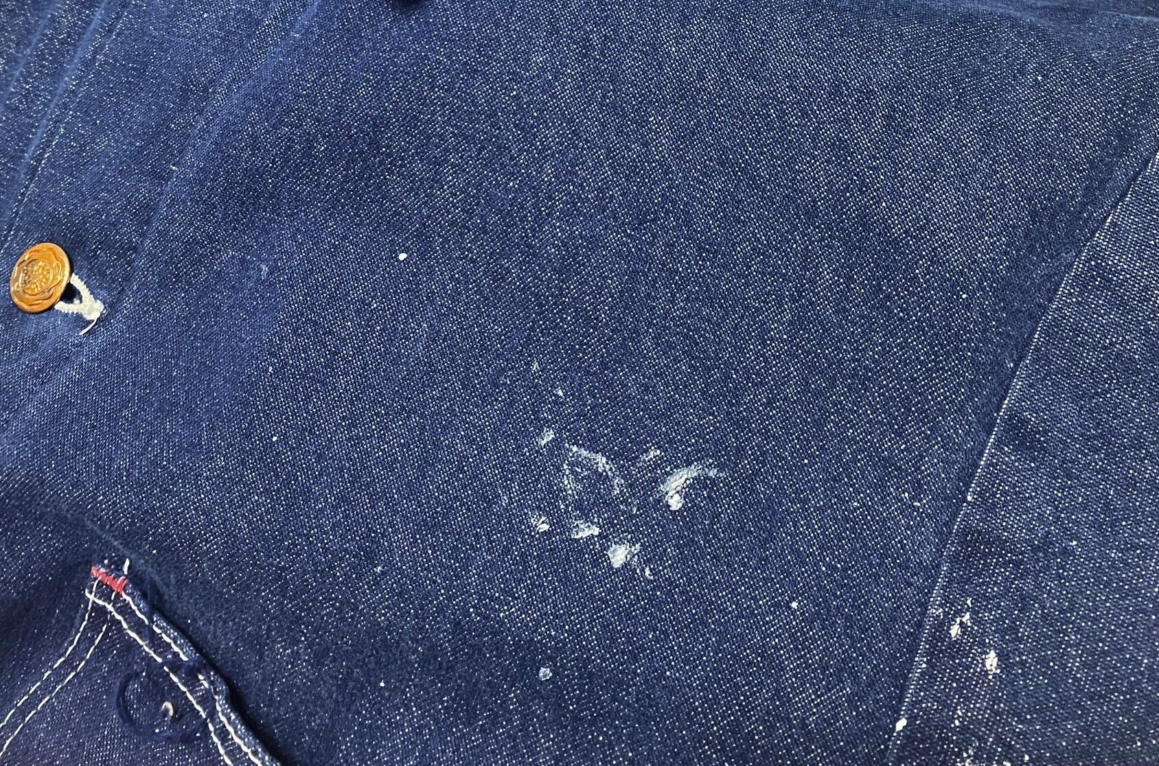 ほとんど褪色のないボディに、がっつりとついたペンキやダメージ&リペアの雰囲気が素晴らしい一着。