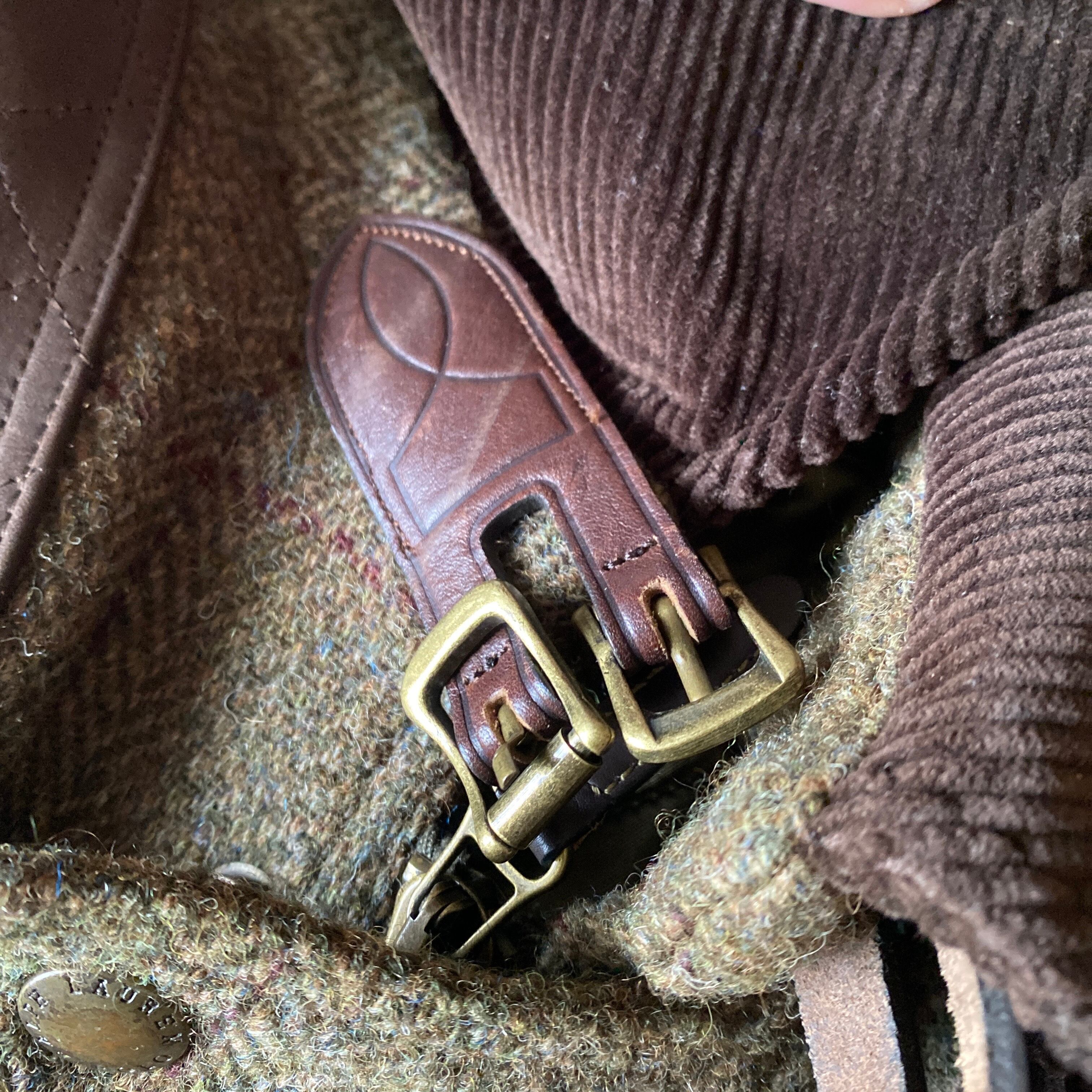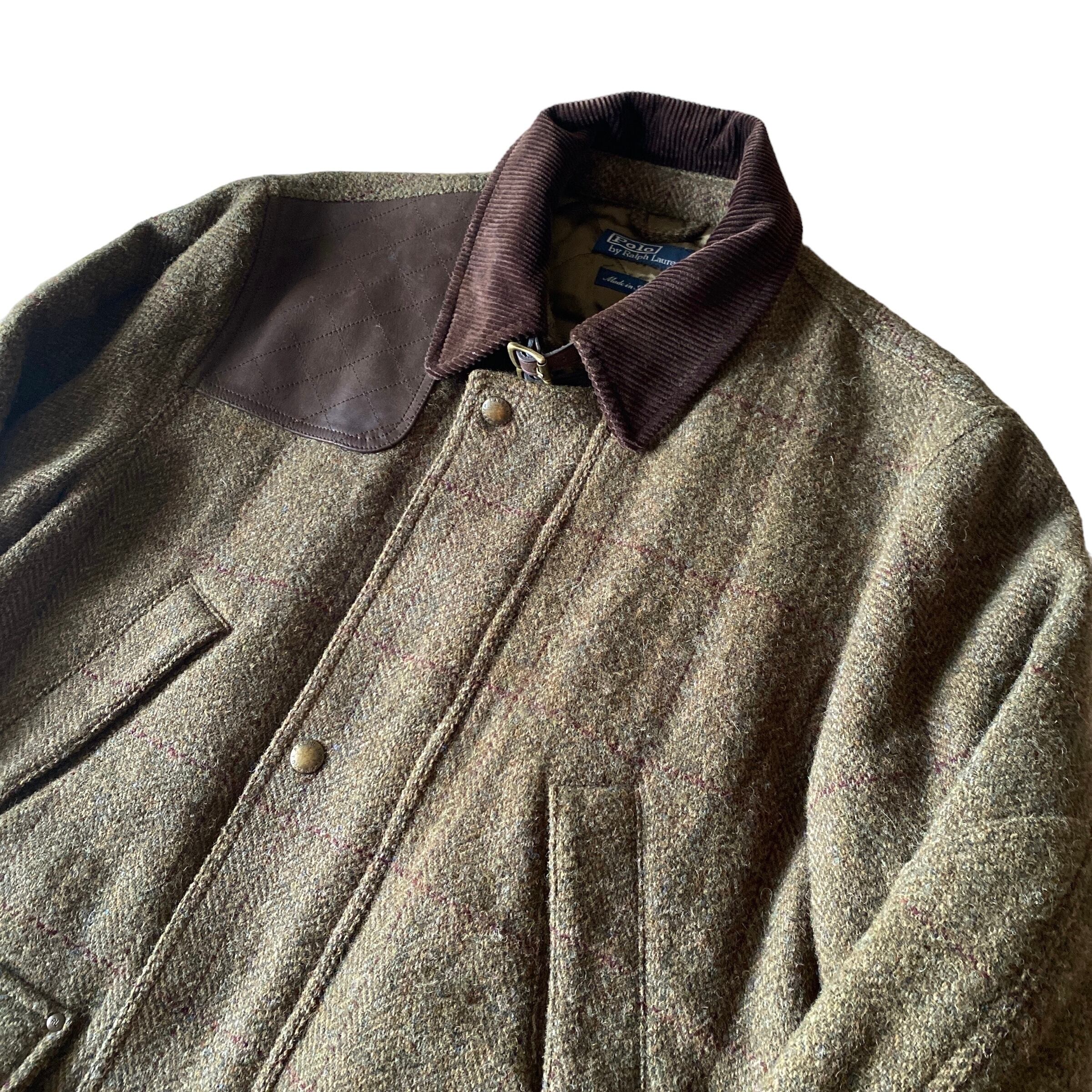 90年代頃のイタリア製「ポロバイラルフローレン」ツイード×レザーハンティングジャケットになります。