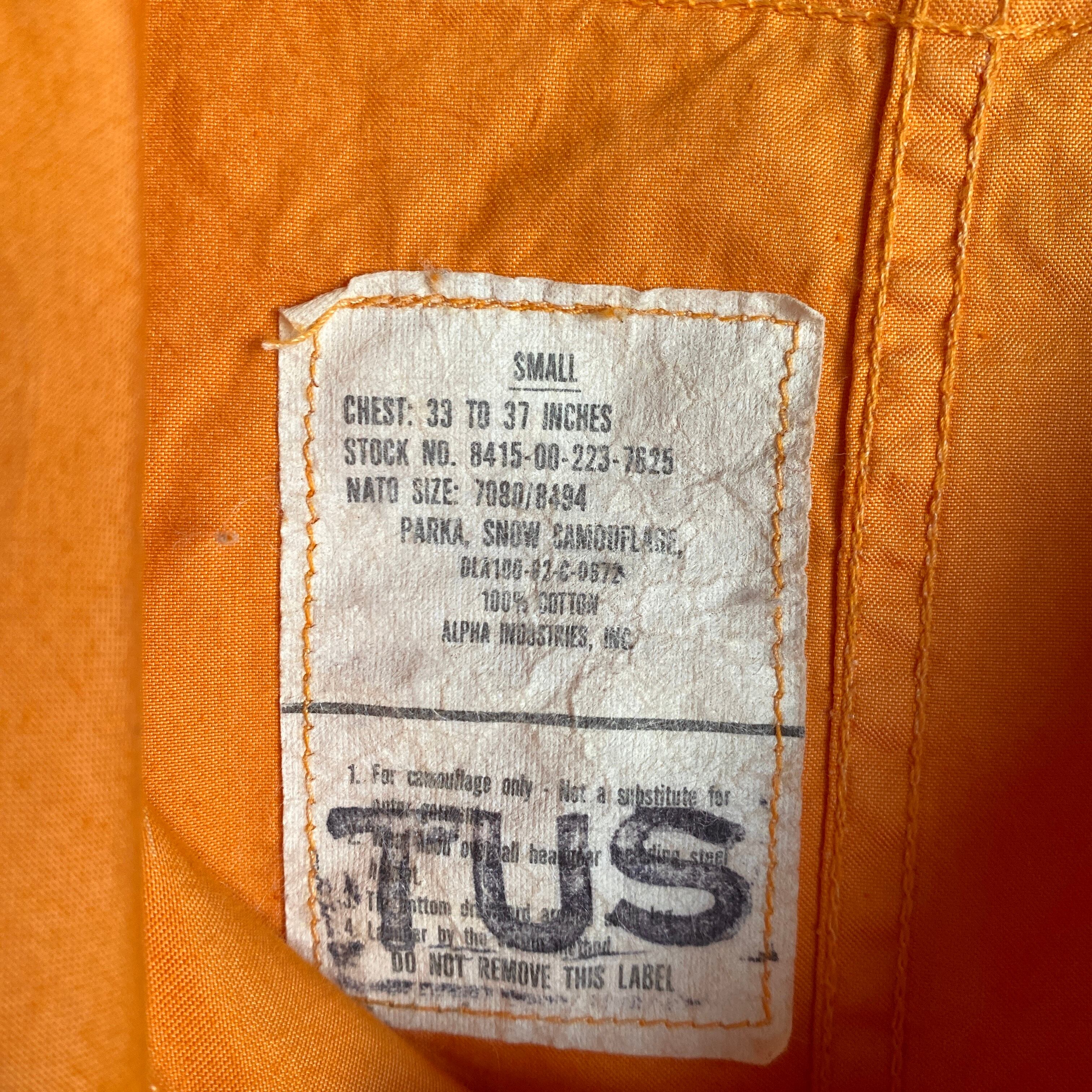 1982年会計アメリカ軍のスノーカモパーカー後染めオレンジになります。