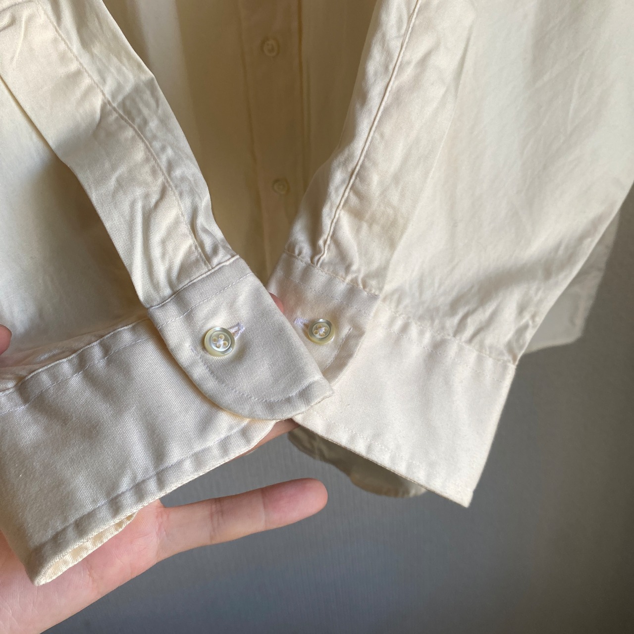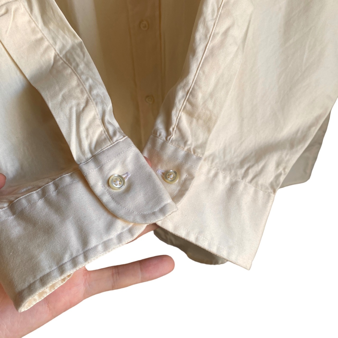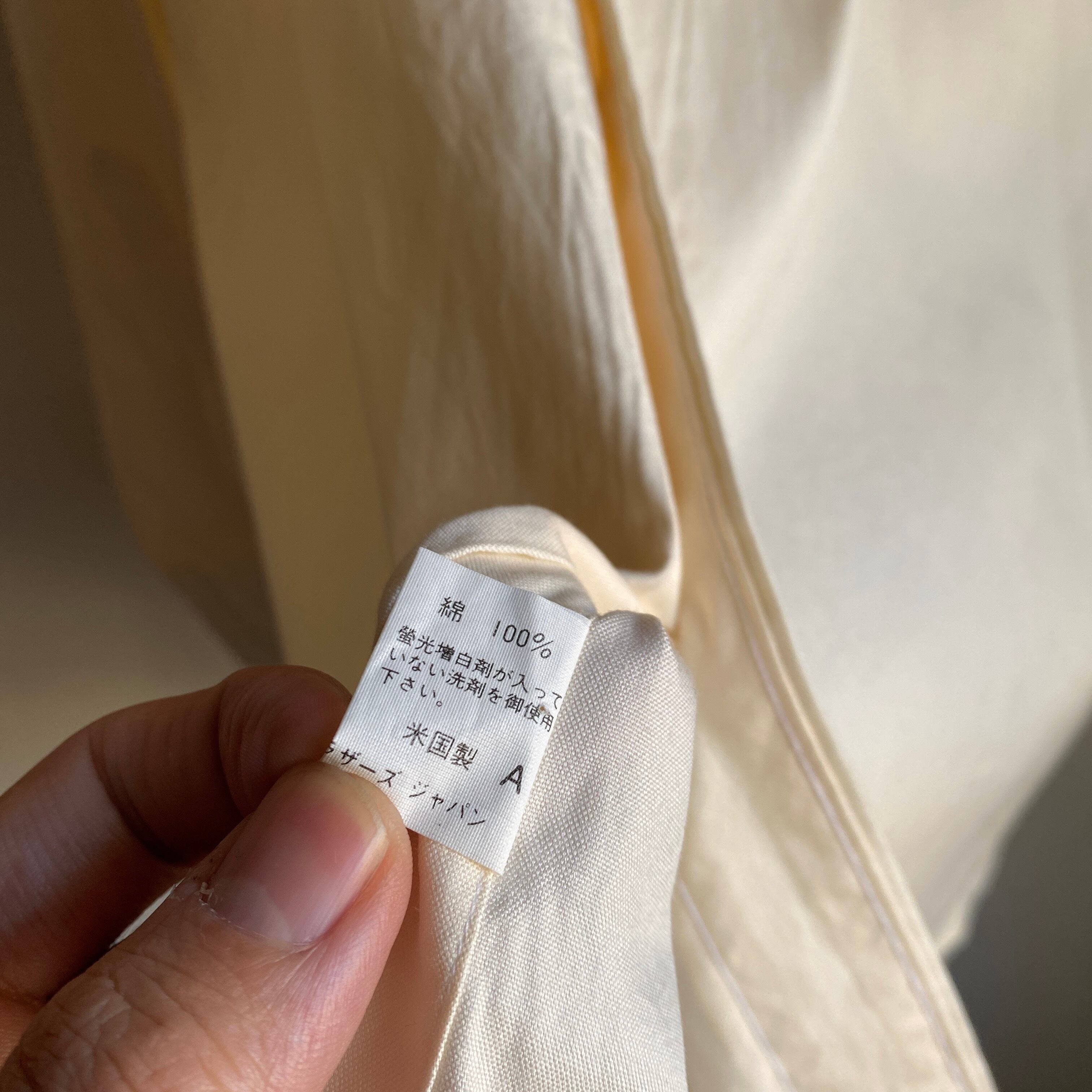コットン100の上質なピンオックスフォード生地に、淡いイエローの色目が上品で非常に格好良い一着。