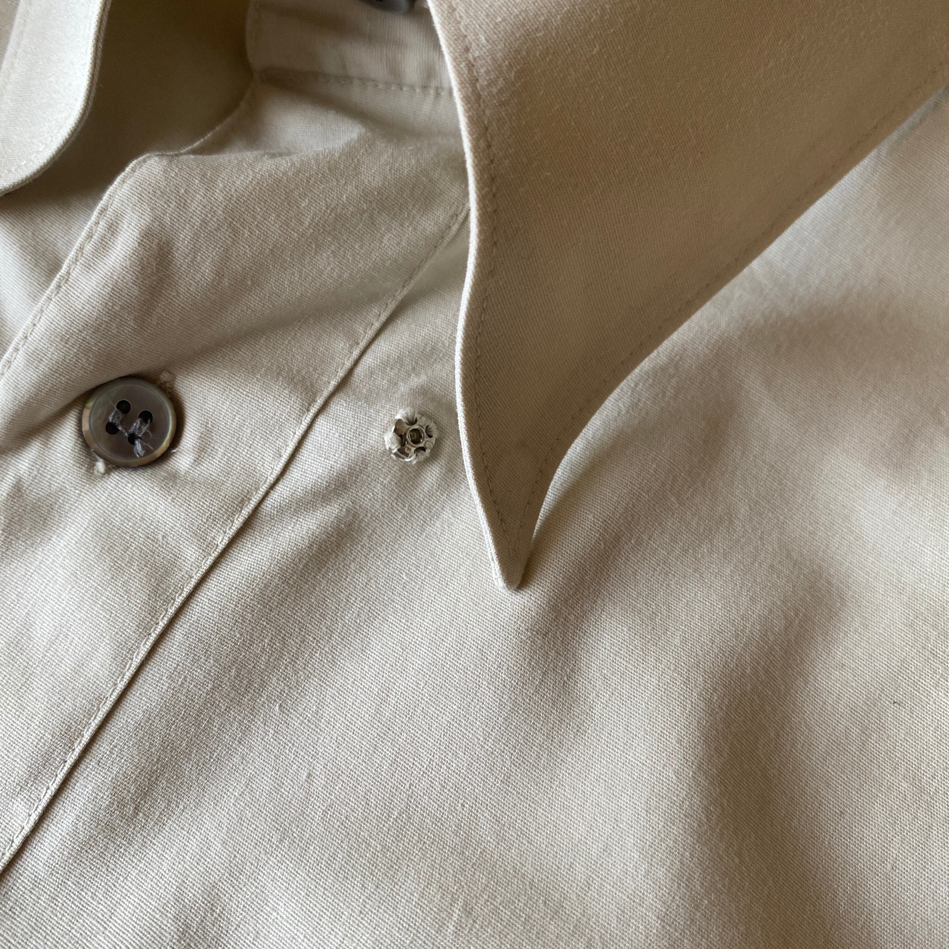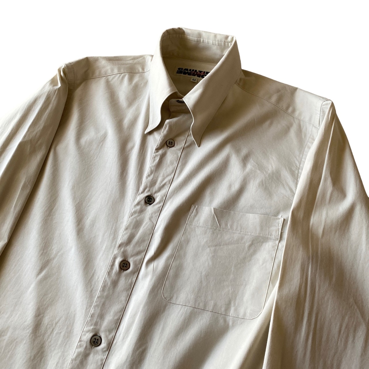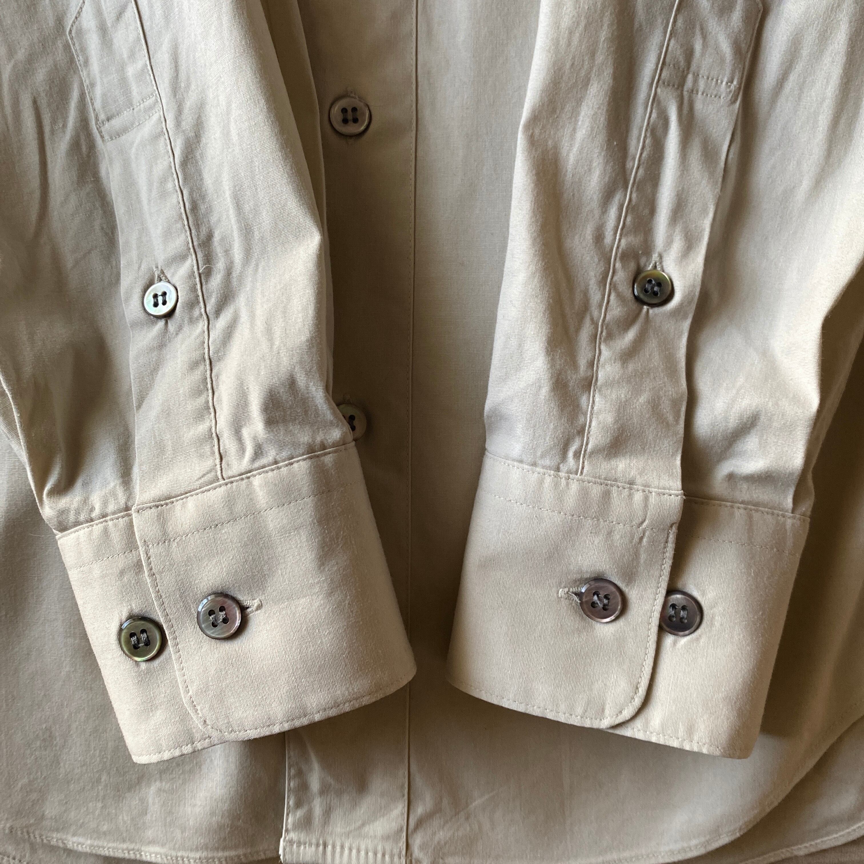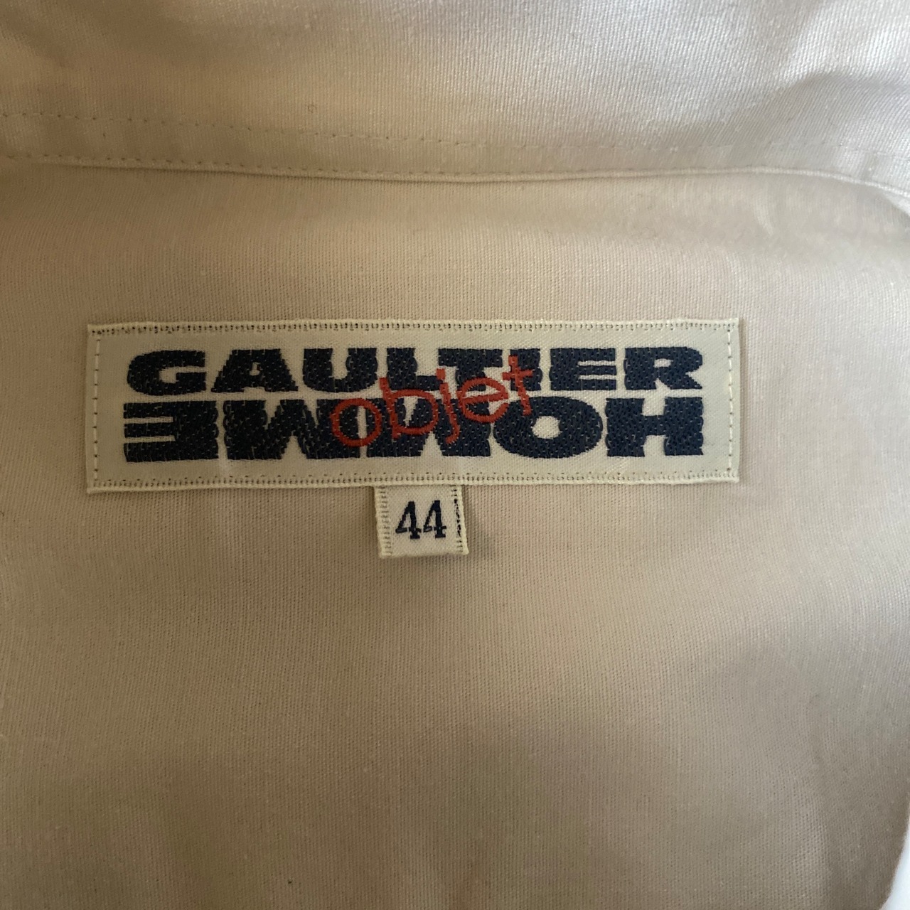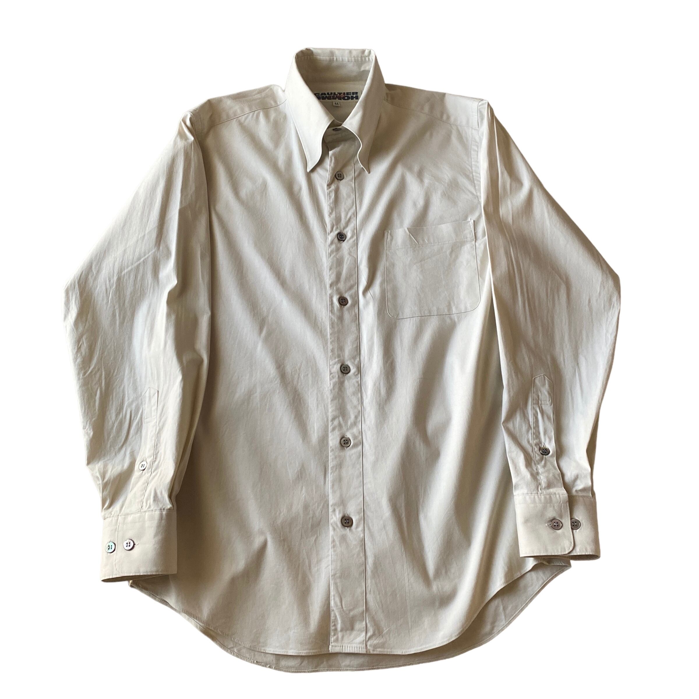 ベーシックですが、柔らかくモチっとした上質なコットン生地にシェルボタン、隠しボタンダウンにストレッチ入りのスリムなシルエットと、当時のゴルチエデザインらしい非常にモードな一着。