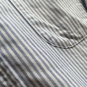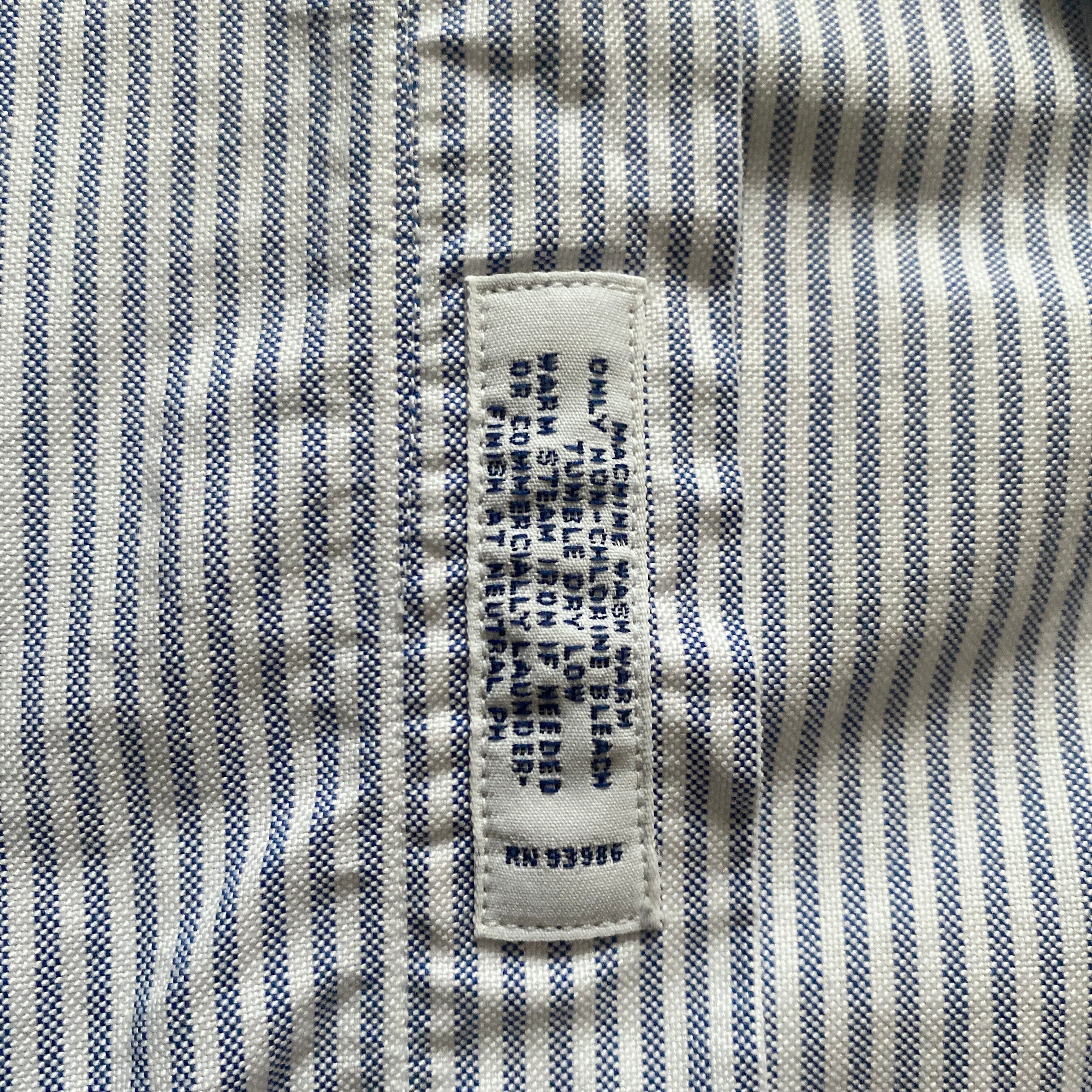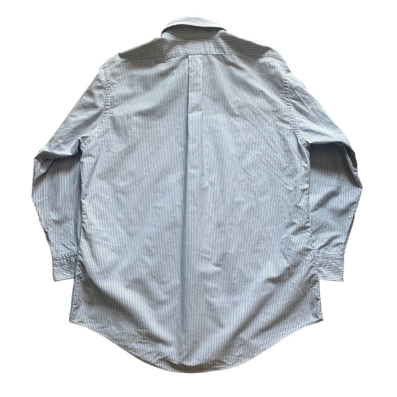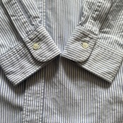 コットン100の上質なオックスフォード生地に、美しいブルーストライプカラー、スリムフィット表記ですが、全く細くない程よくゆったりしたシルエットが非常に格好良い一着。